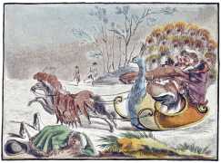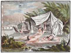 Année galante, ou étrenne à l’amour (The Gallant Year, or A New Time for Love) is one of the earliest known printed erotic portfolios. This copy, from the collection of the French National Library, is hand-coloured, with seasonal scenes of lovemaking including winter-time sledging and summer swimming.