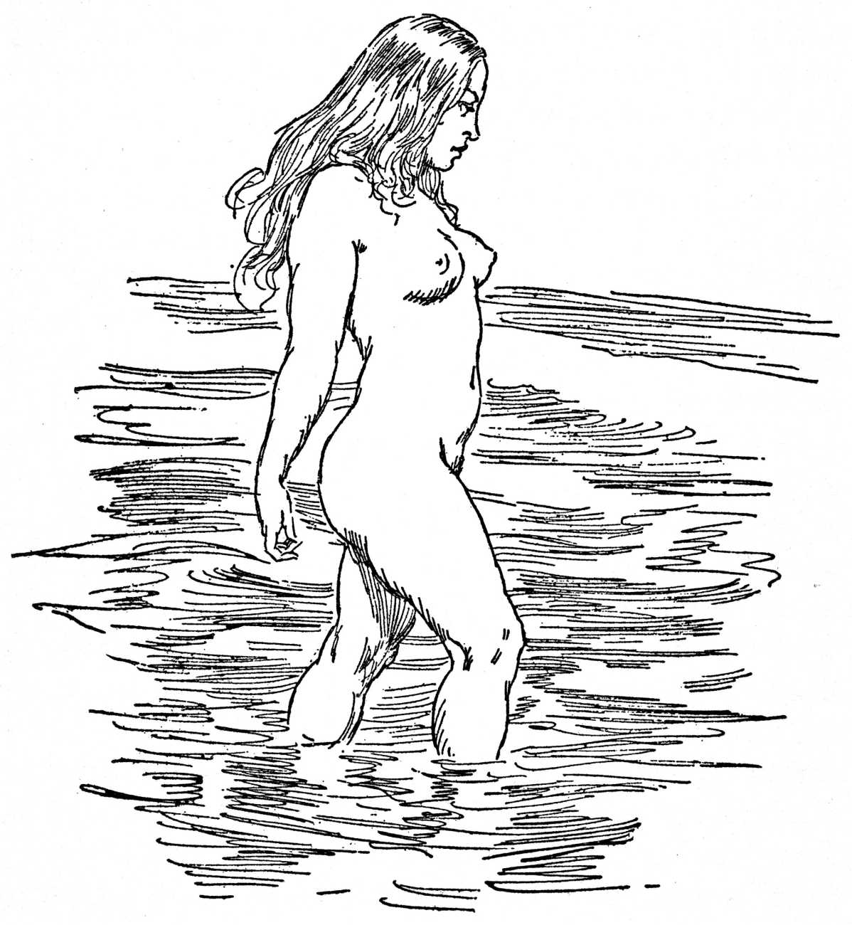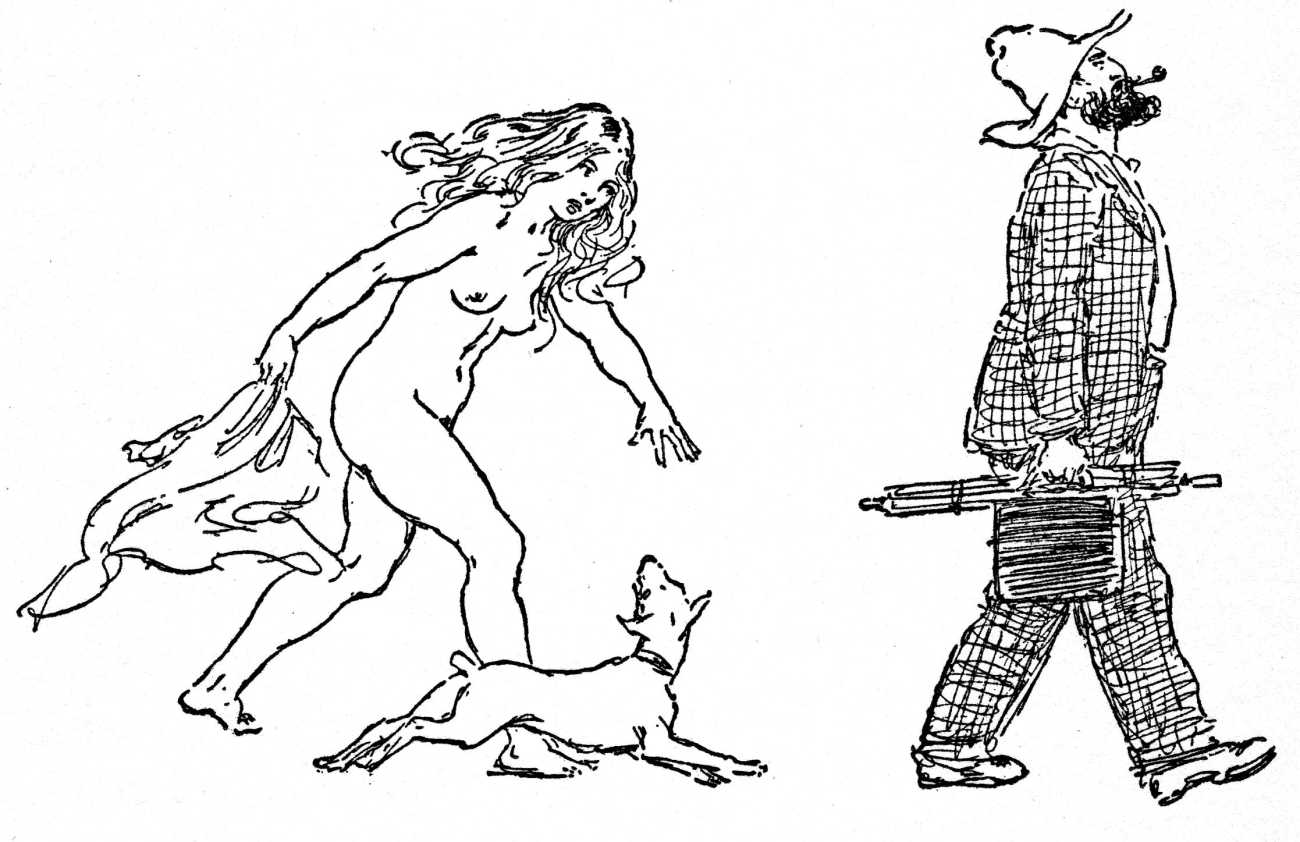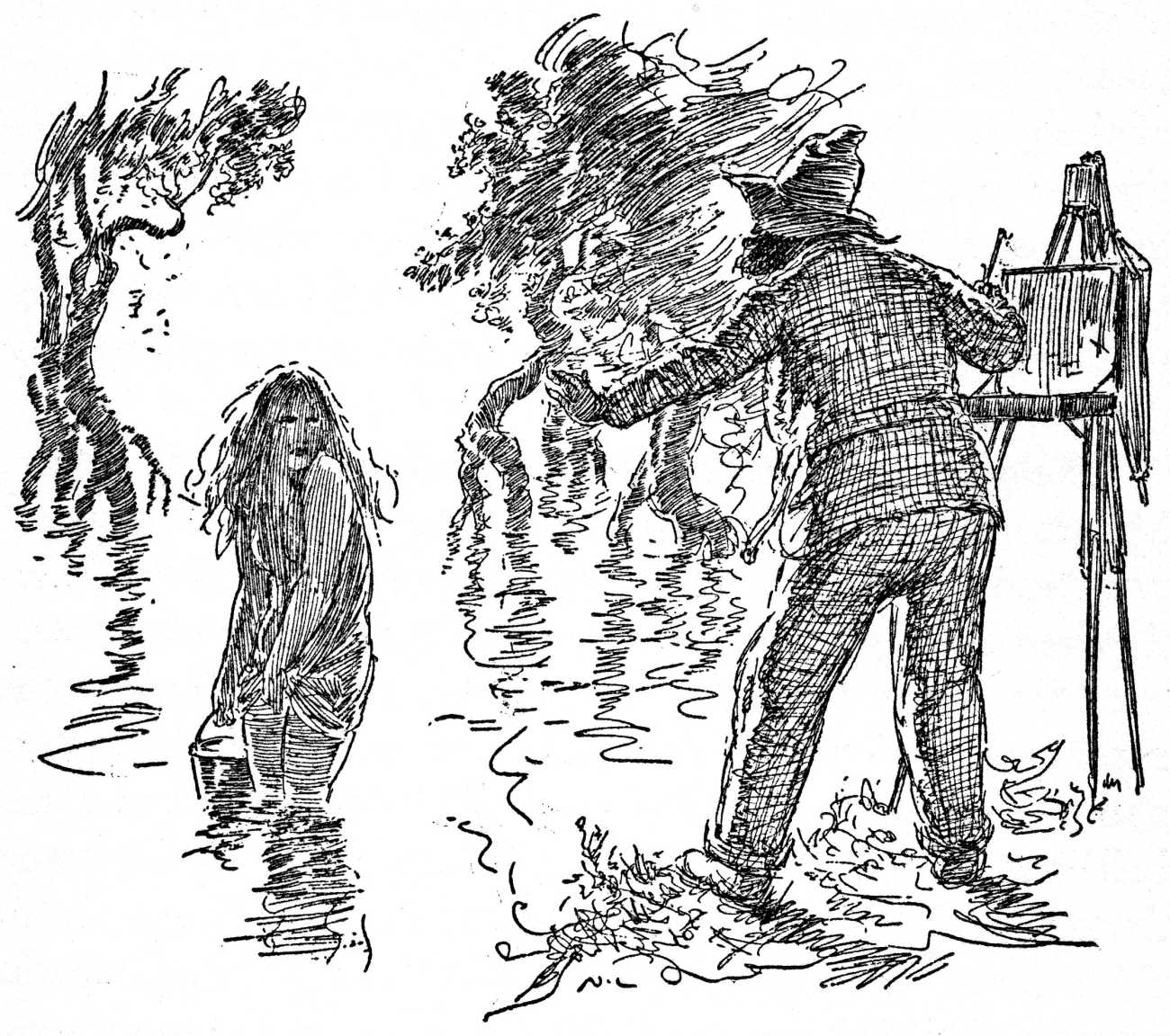 The central character is Bradly Mudgett, a middle-aged painter, who with his fox terrier companion Edmund travels to a rural township of New South Wales in search of scenic inspiration, but who meets instead a wild adolescent girl who serves as his model and muse. Cora Ryan, who is just seventeen, is described as a ‘child of nature’, and Mudgett encounters her selling shellfish on a wild strip of Margoola Beach. Though he initially wants nothing to do with her either socially or sexually, her body strikes him as very paintable, and she becomes his model and muse. The nature of their relationship is regularly questioned by the locals, and the novel paints a believable picture of artist and model working out what they mean to one another. Lindsay’s illustrations match the text well, with several demonstrating why Cora’s young curves are such an attraction.