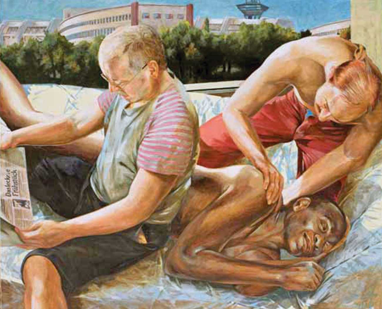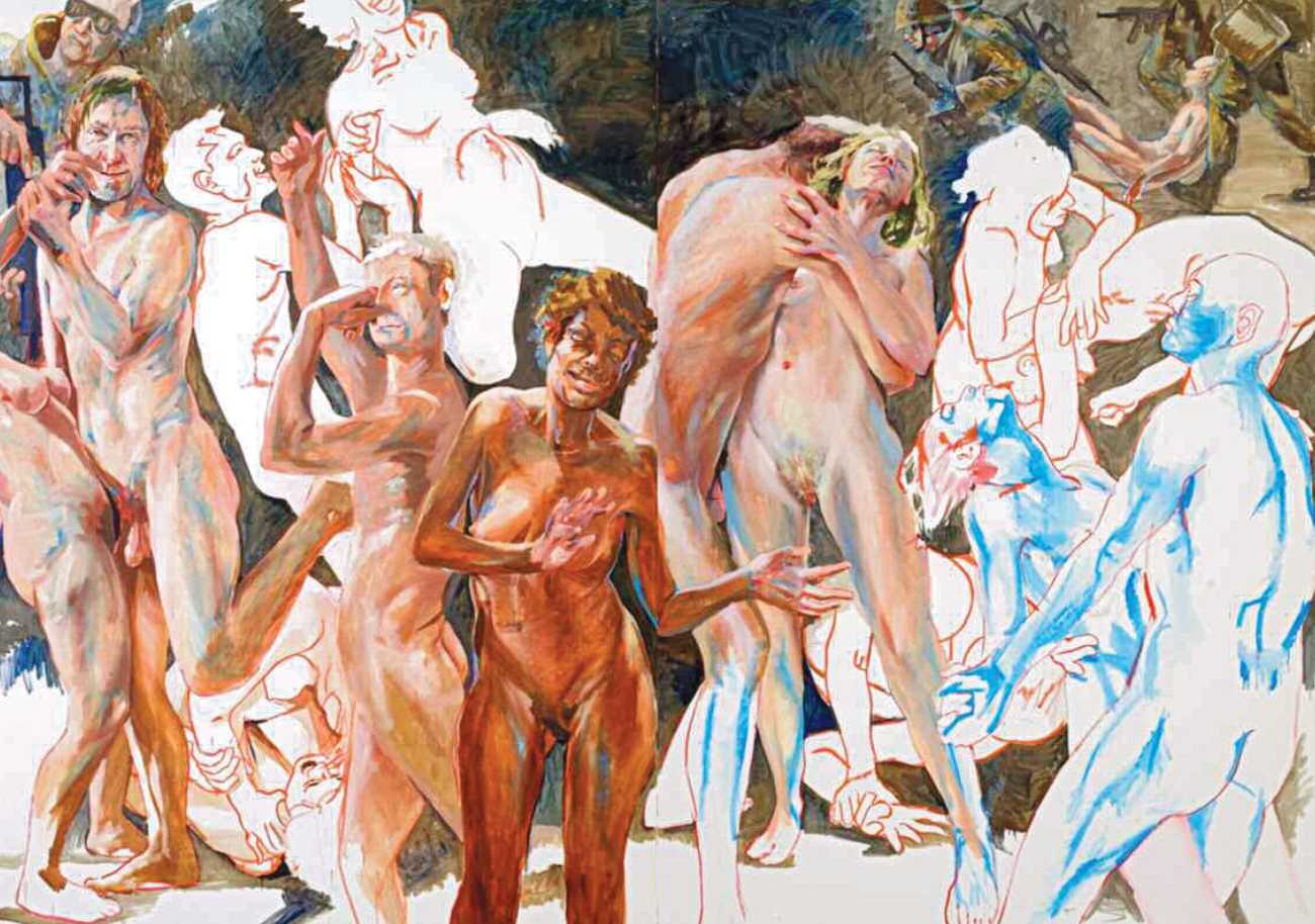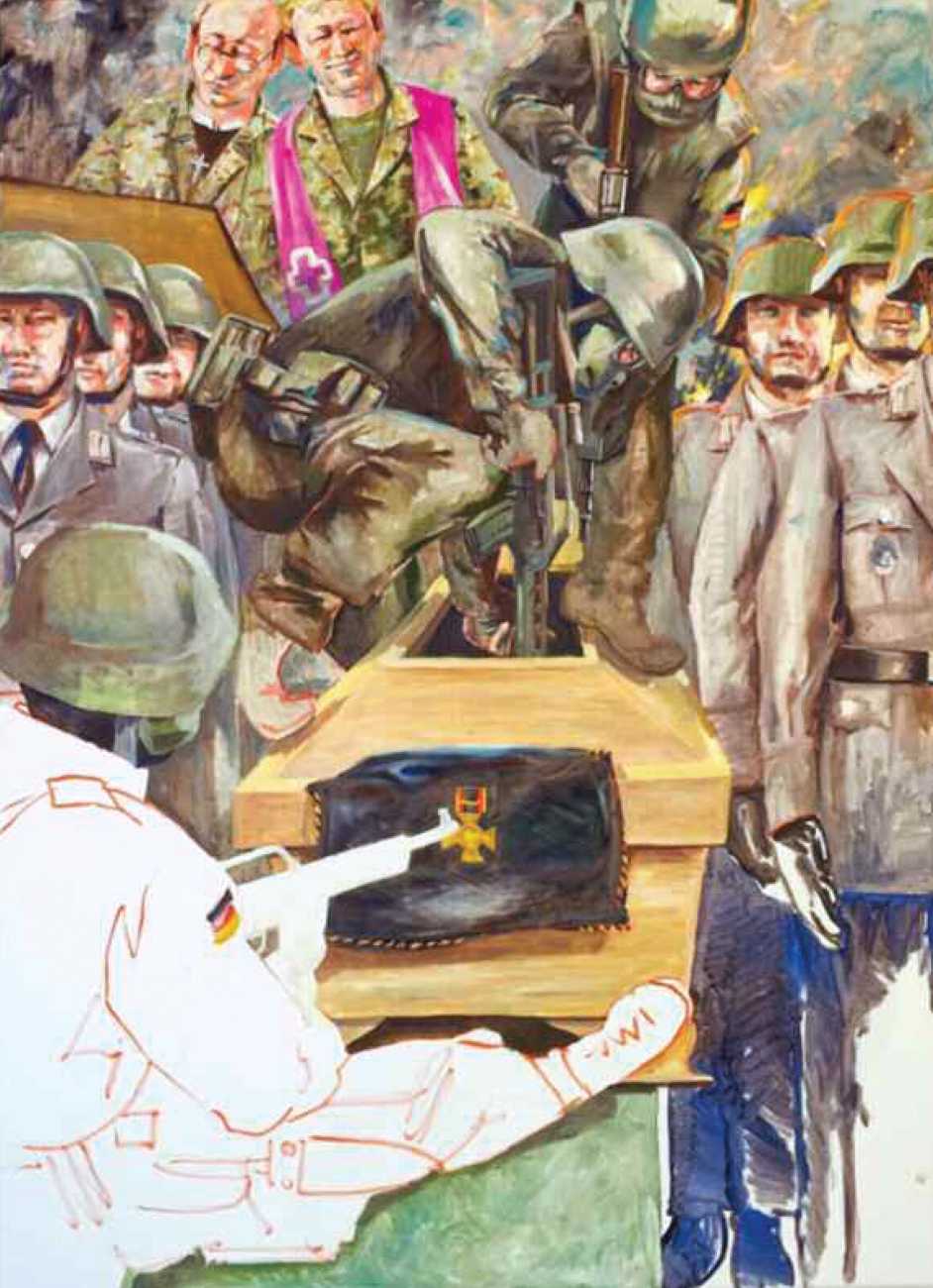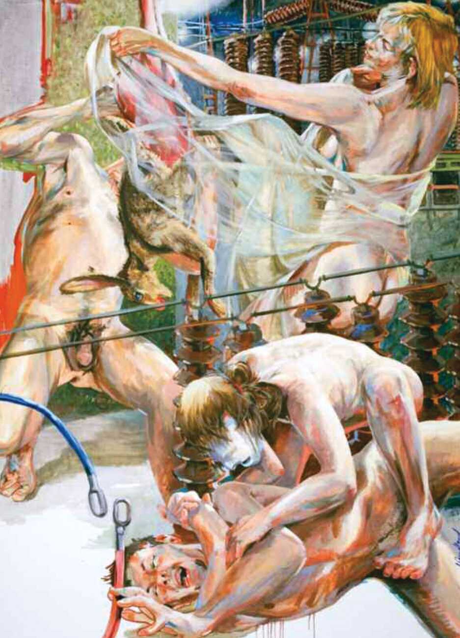 Nackte Gewalt (Naked Violence) is the title of a 2010 publication to accompany an exhibition of the same title in Berlin, but it can also stand as an overarching theme for much of Sigurd Wendland’s work from the 1990s onwards. As Wolfgang Schorlau writes in the introduction to Nackte Gewalt, ‘There is no doubt that Sigurd Wendland is a political painter. He is not an easy preacher, but is someone who clearly takes a position and shows real attitude. In doing so, he is taking a big risk in today's art world.’