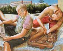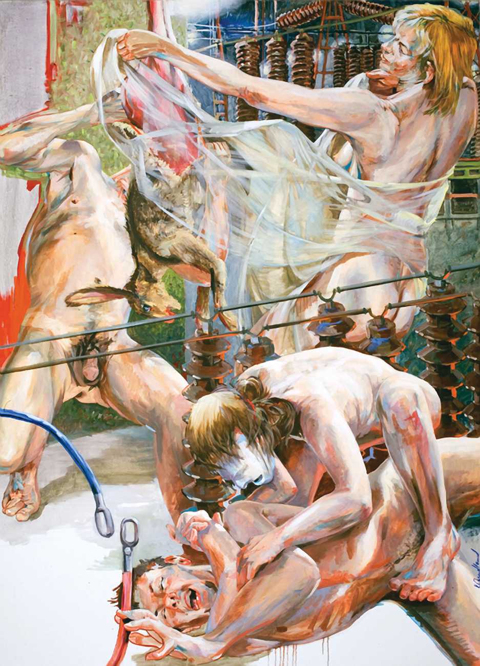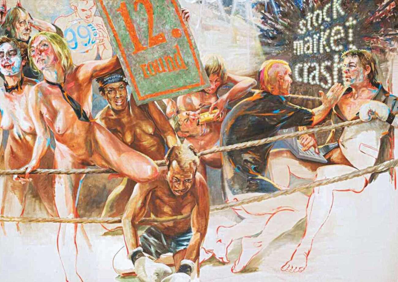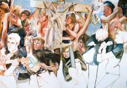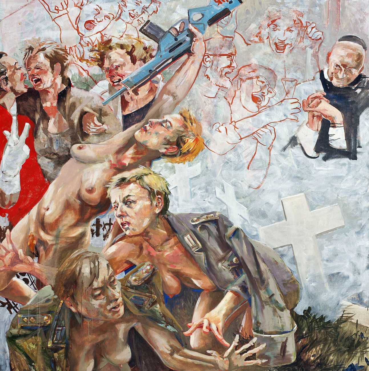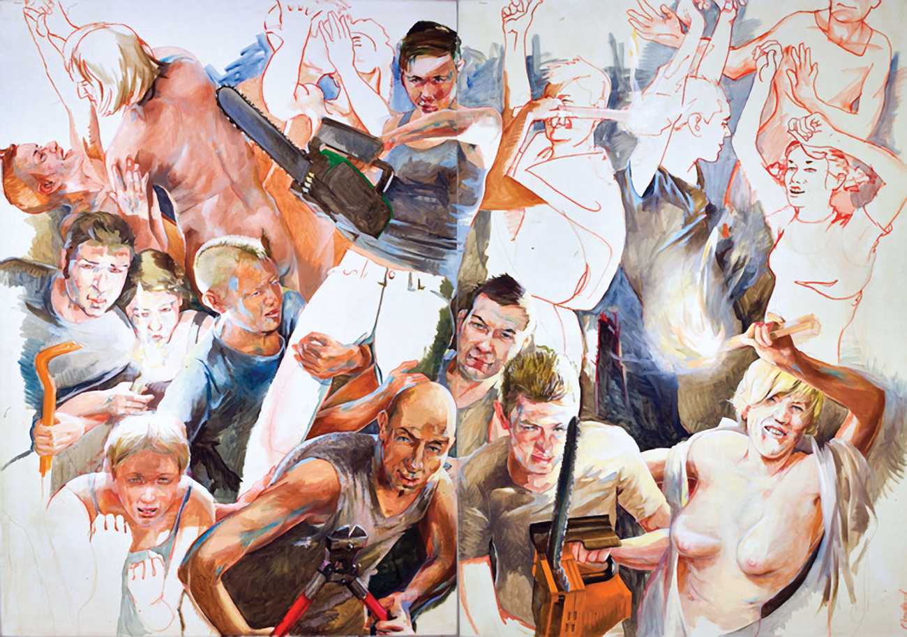 Nackte Gewalt (Naked Violence) is the title of a 2010 publication to accompany an exhibition of the same title in Berlin, but it can also stand as an overarching theme for much of Sigurd Wendland’s work from the 1990s onwards. As Wolfgang Schorlau writes in the introduction to Nackte Gewalt, ‘There is no doubt that Sigurd Wendland is a political painter. He is not an easy preacher, but is someone who clearly takes a position and shows real attitude. In doing so, he is taking a big risk in today's art world.’