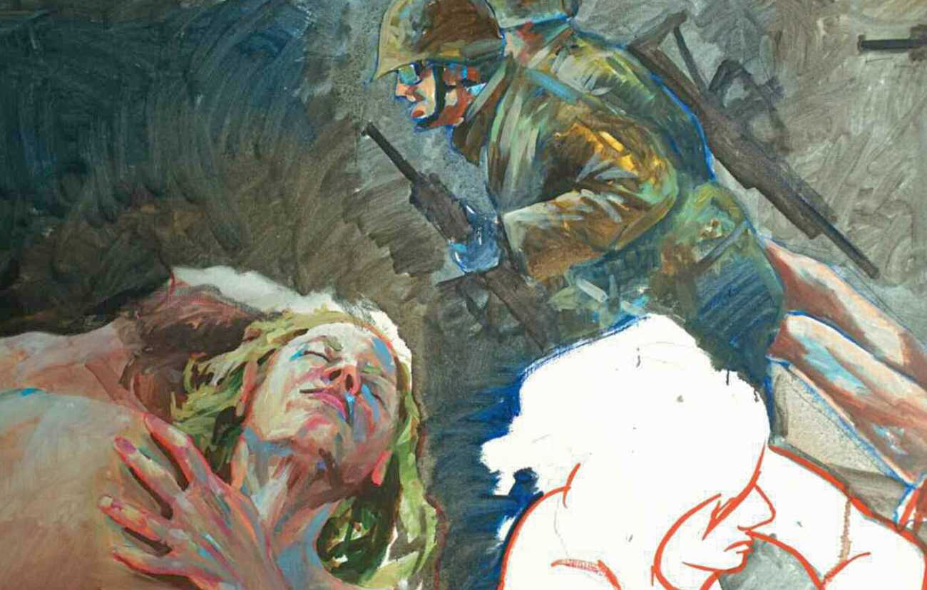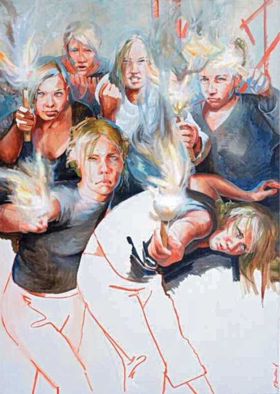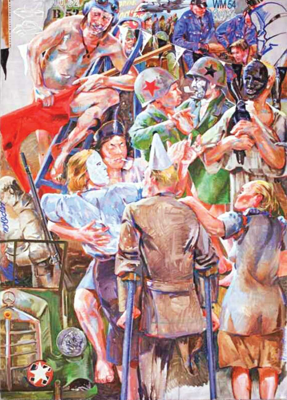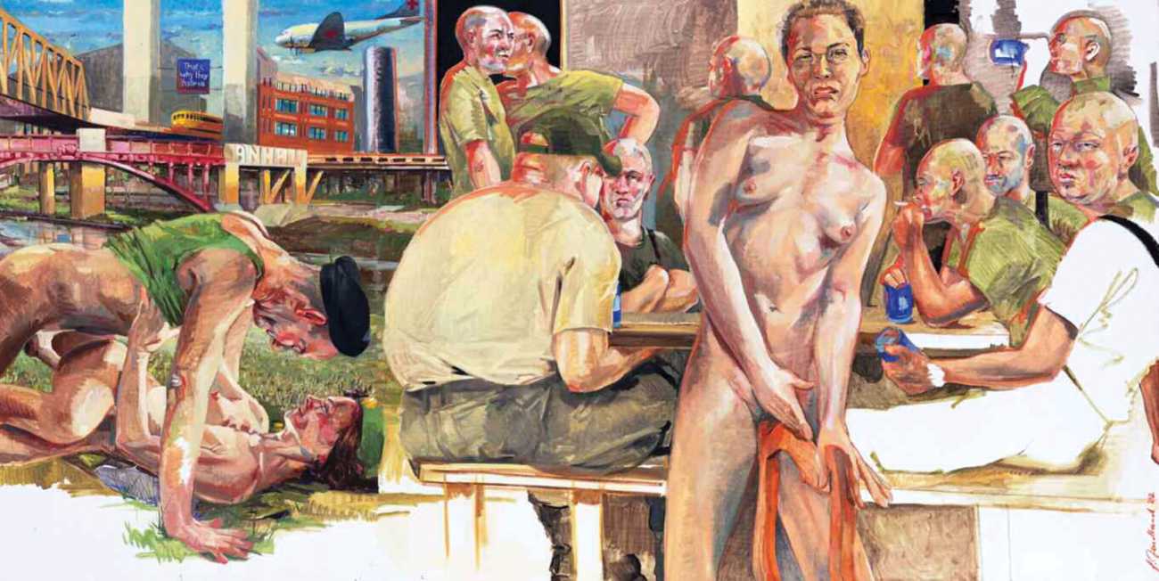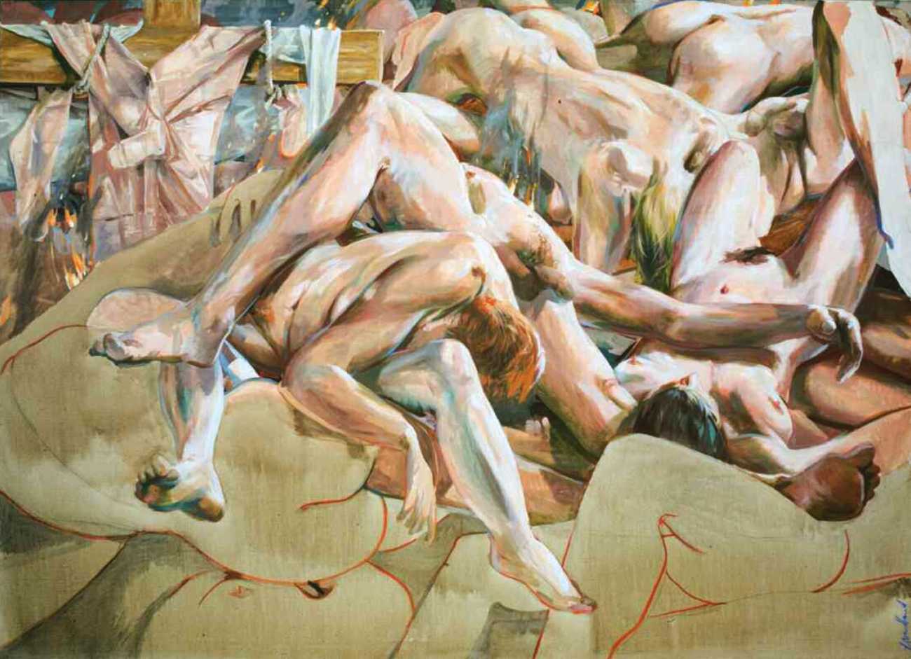 Nackte Gewalt (Naked Violence) is the title of a 2010 publication to accompany an exhibition of the same title in Berlin, but it can also stand as an overarching theme for much of Sigurd Wendland’s work from the 1990s onwards. As Wolfgang Schorlau writes in the introduction to Nackte Gewalt, ‘There is no doubt that Sigurd Wendland is a political painter. He is not an easy preacher, but is someone who clearly takes a position and shows real attitude. In doing so, he is taking a big risk in today's art world.’