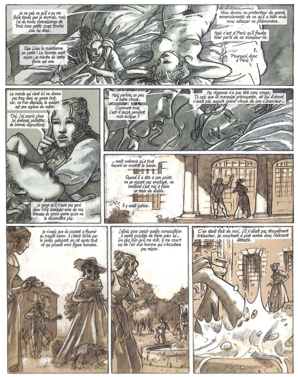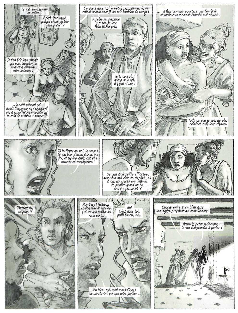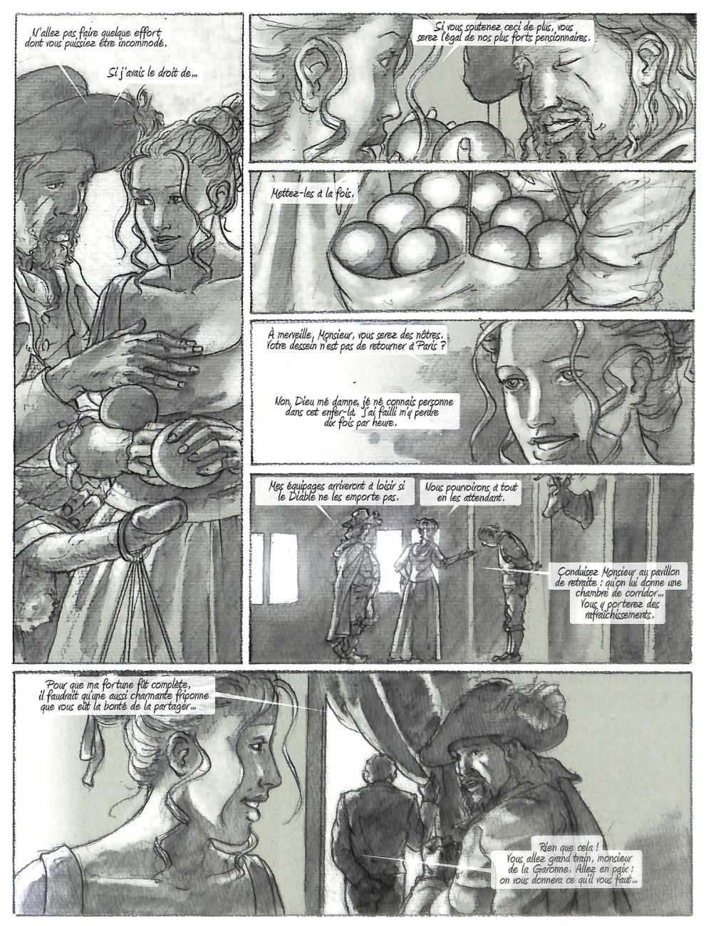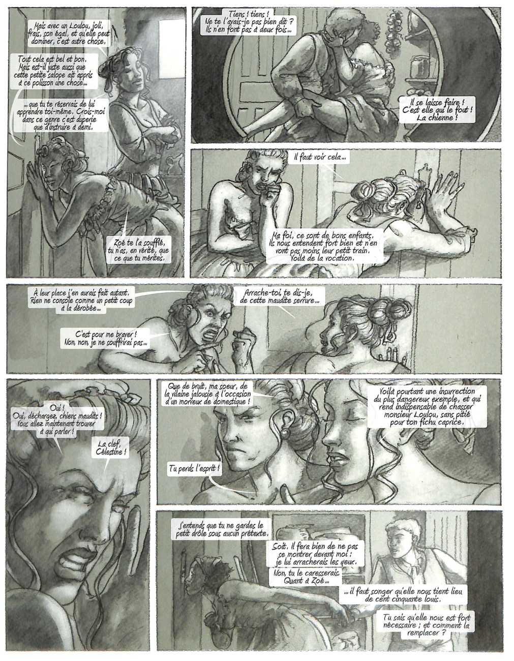 The second volume of Les Aphrodites, Le masque aveugle (The Blind Mask) sees the lovely Célestine continuing to explore the mysteries of Madame Durut’s chateau, finding a prisoner locked in a cage having his manhood measured regularly and a sex-starved nun, and taking part in an erotic masked ball.