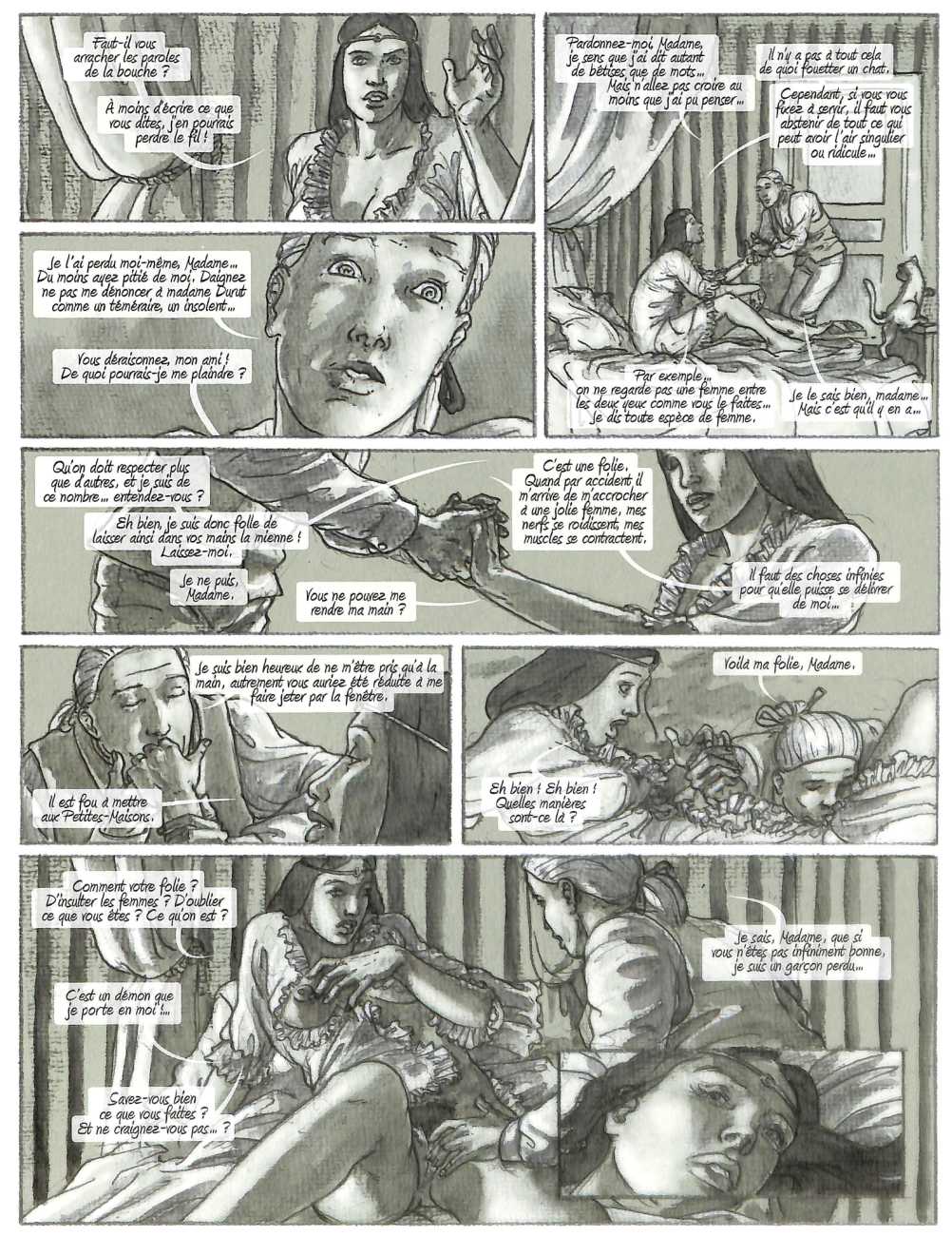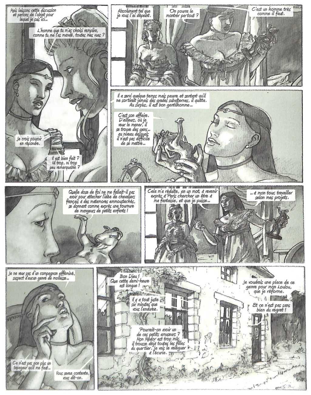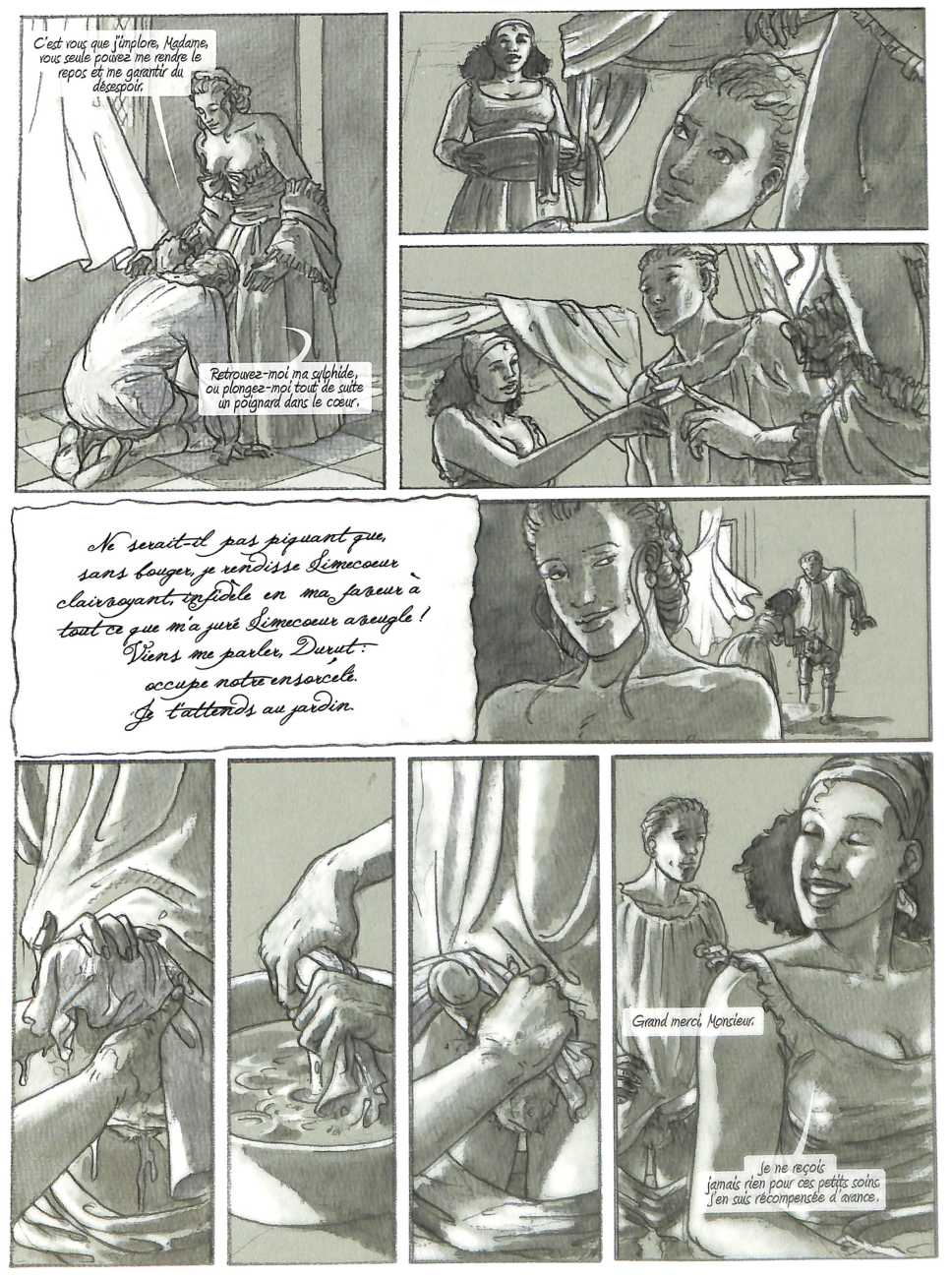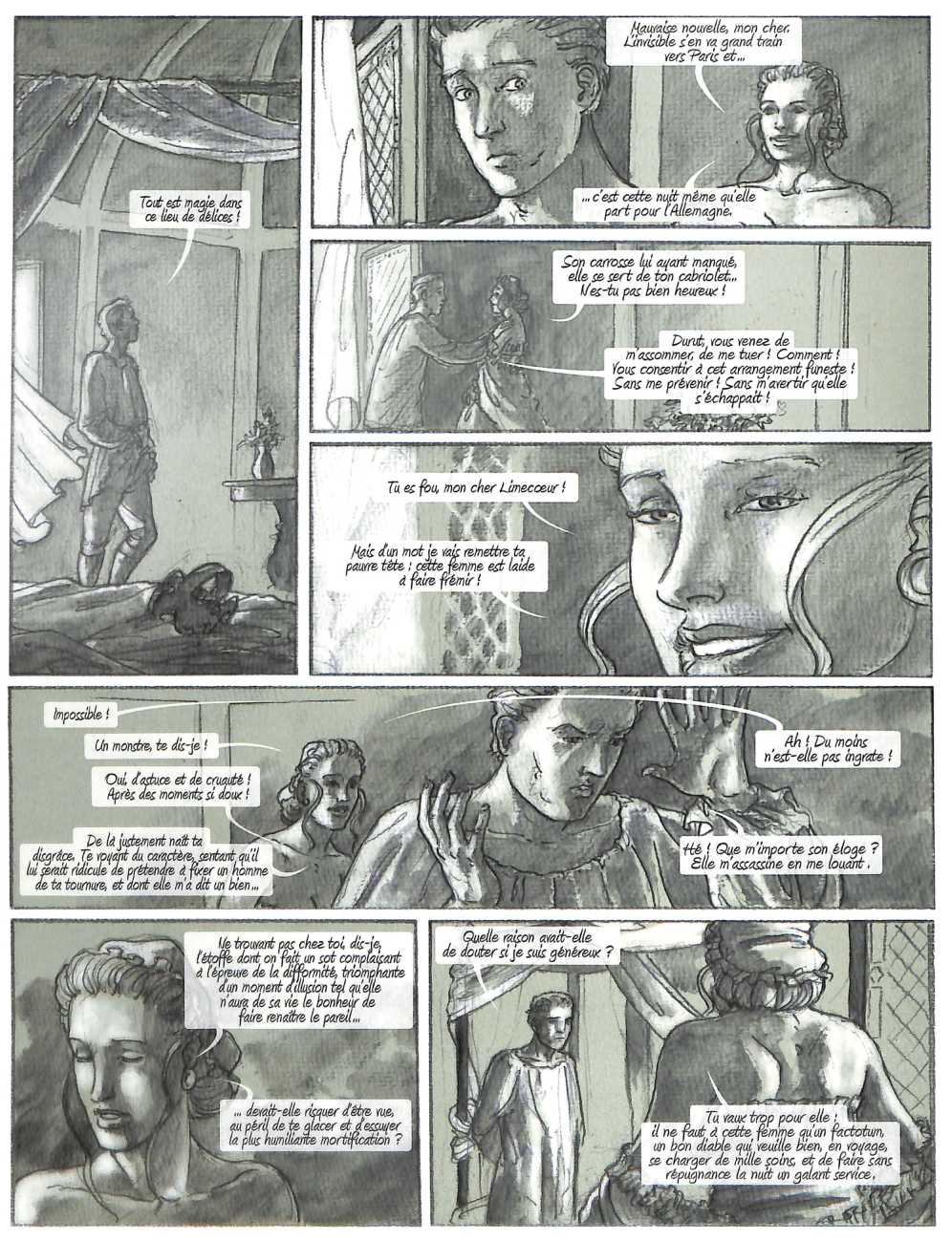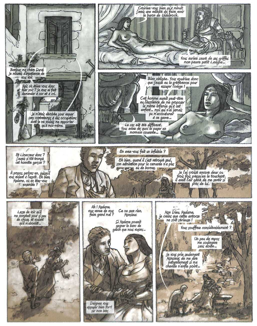The second volume of Les Aphrodites, Le masque aveugle (The Blind Mask) sees the lovely Célestine continuing to explore the mysteries of Madame Durut’s chateau, finding a prisoner locked in a cage having his manhood measured regularly and a sex-starved nun, and taking part in an erotic masked ball.