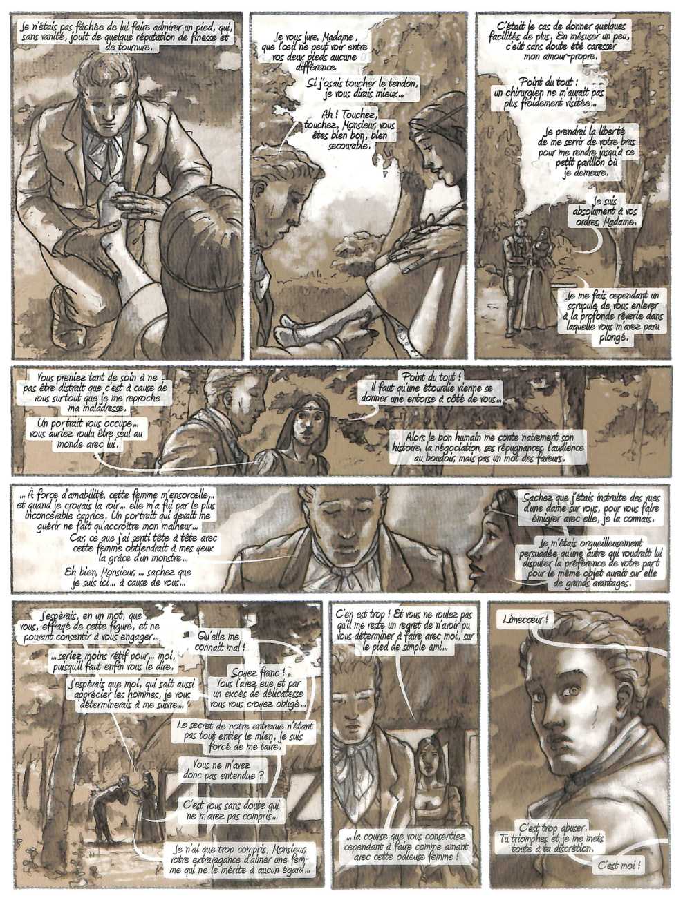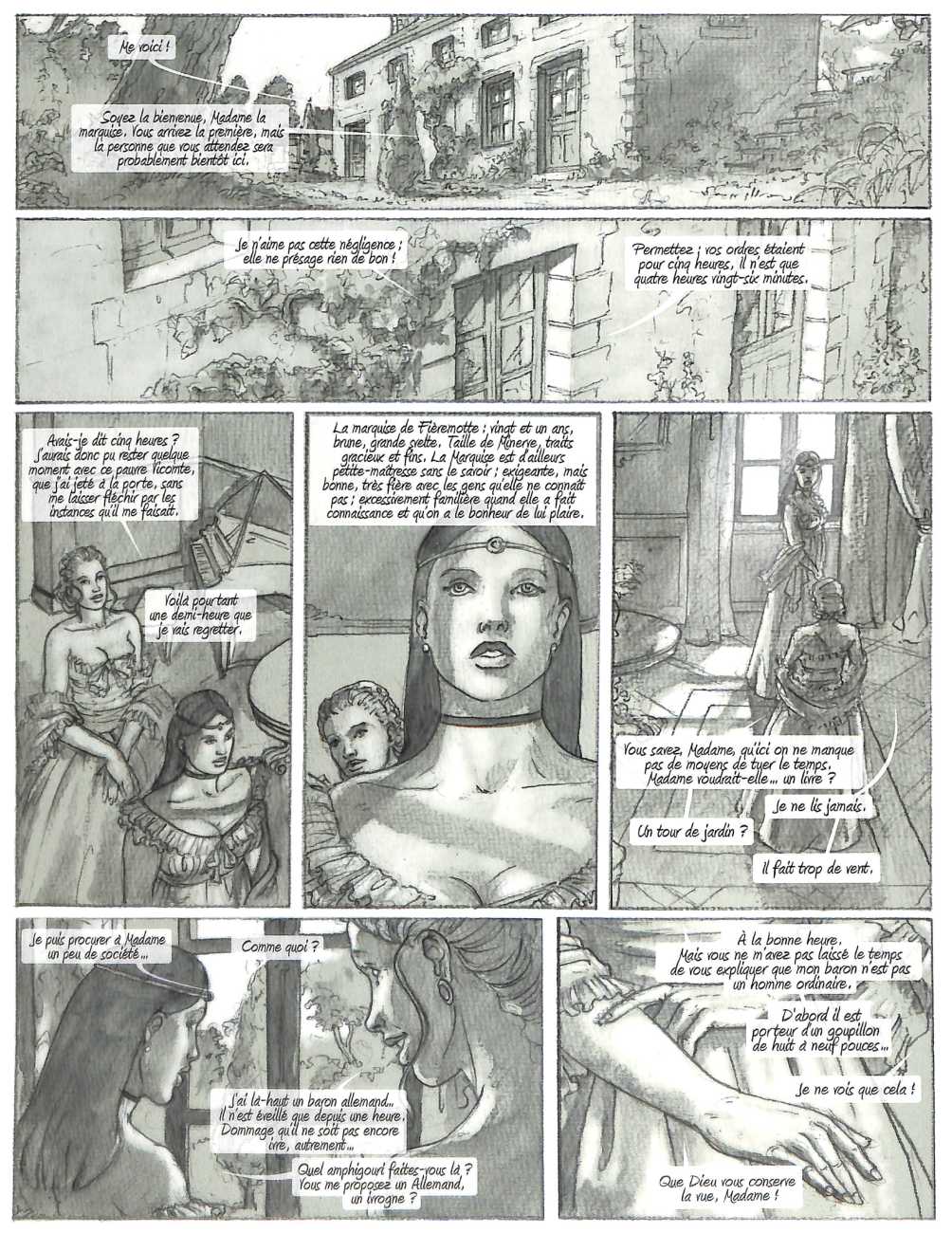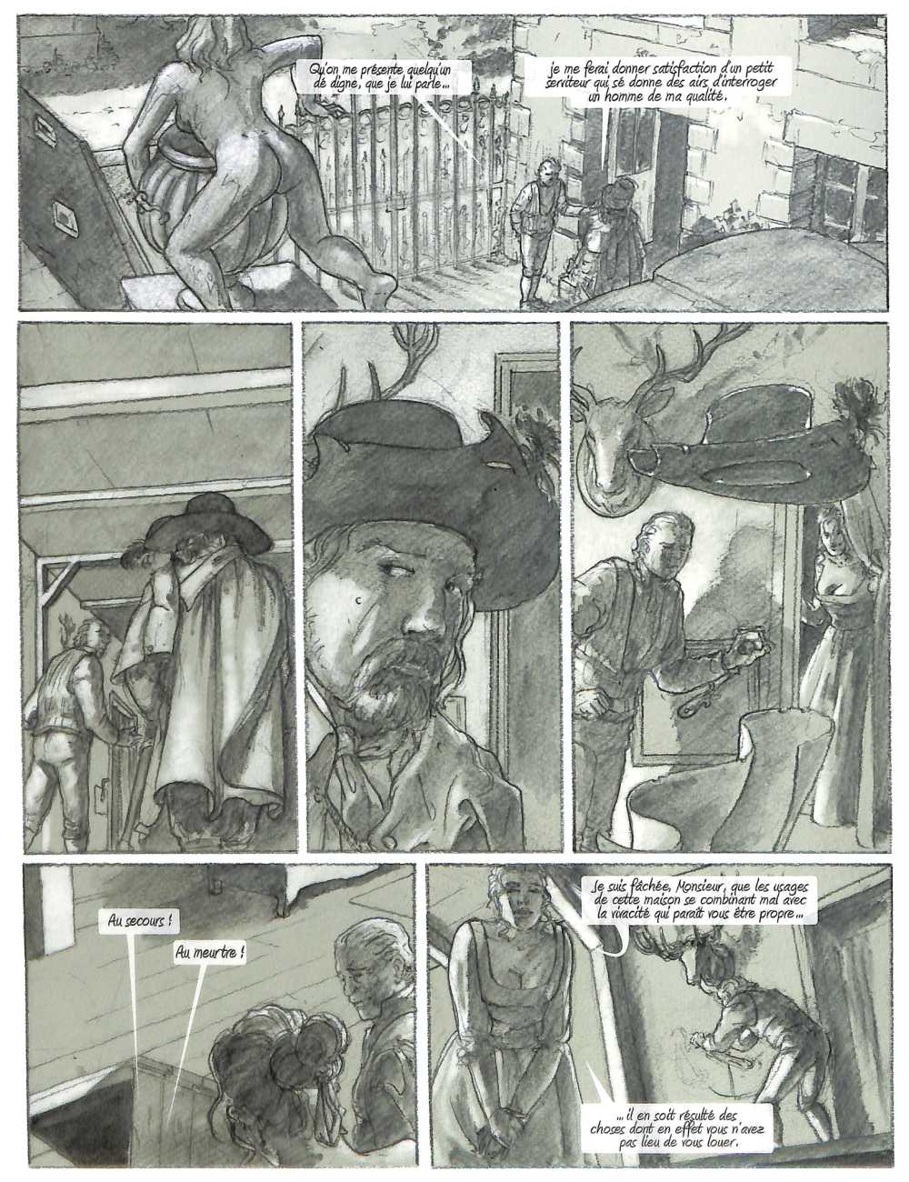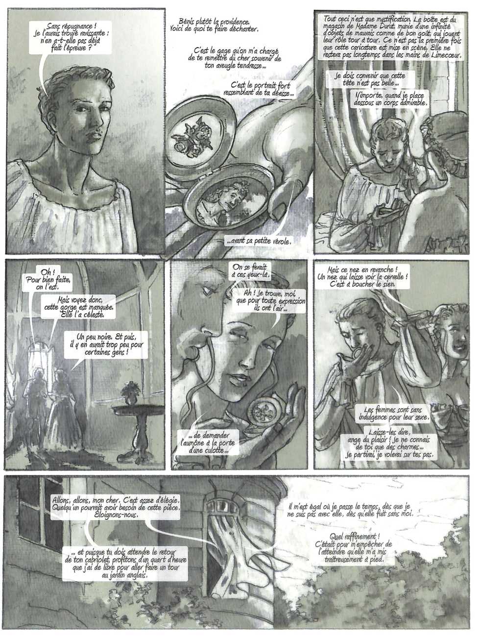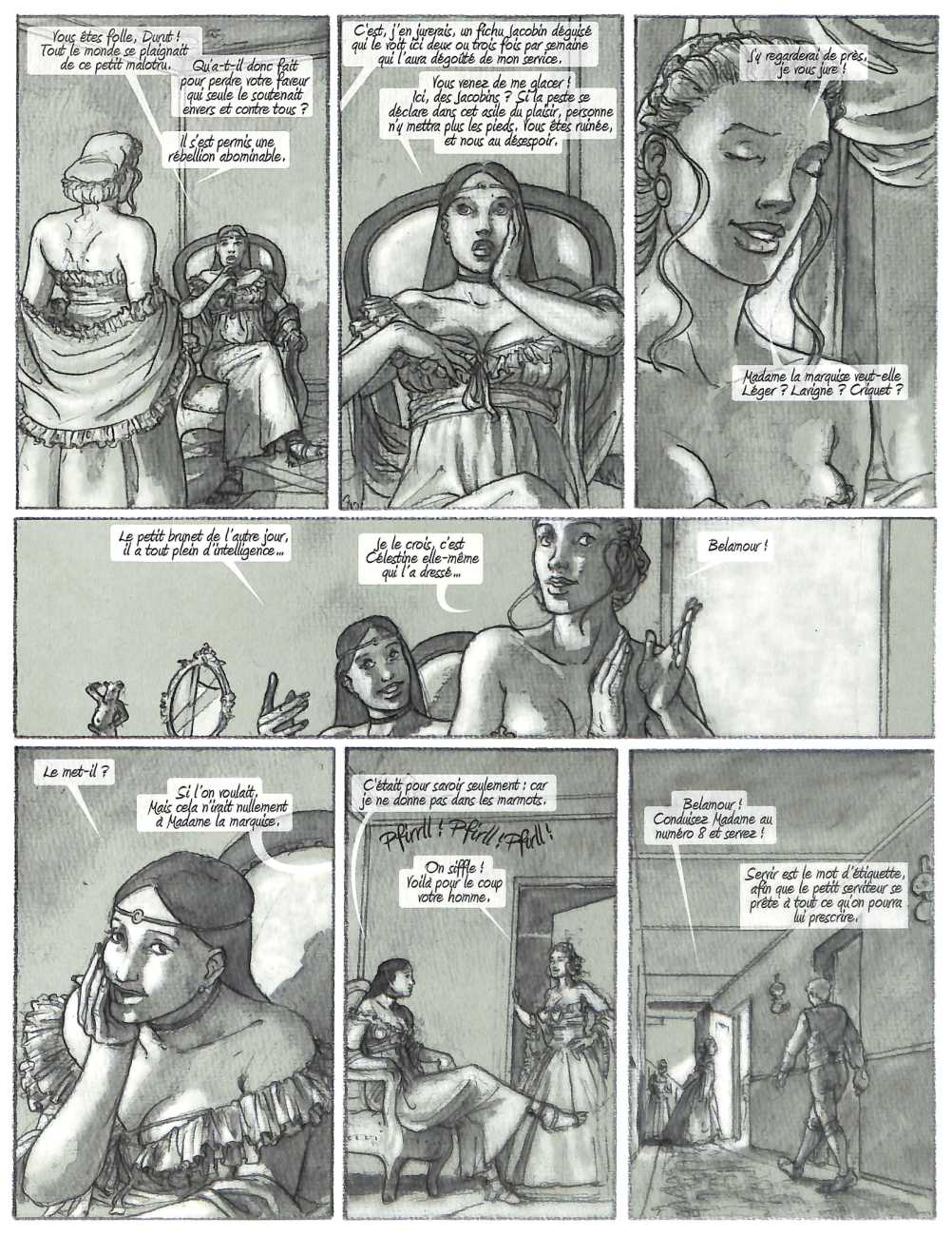 The second volume of Les Aphrodites, Le masque aveugle (The Blind Mask) sees the lovely Célestine continuing to explore the mysteries of Madame Durut’s chateau, finding a prisoner locked in a cage having his manhood measured regularly and a sex-starved nun, and taking part in an erotic masked ball.