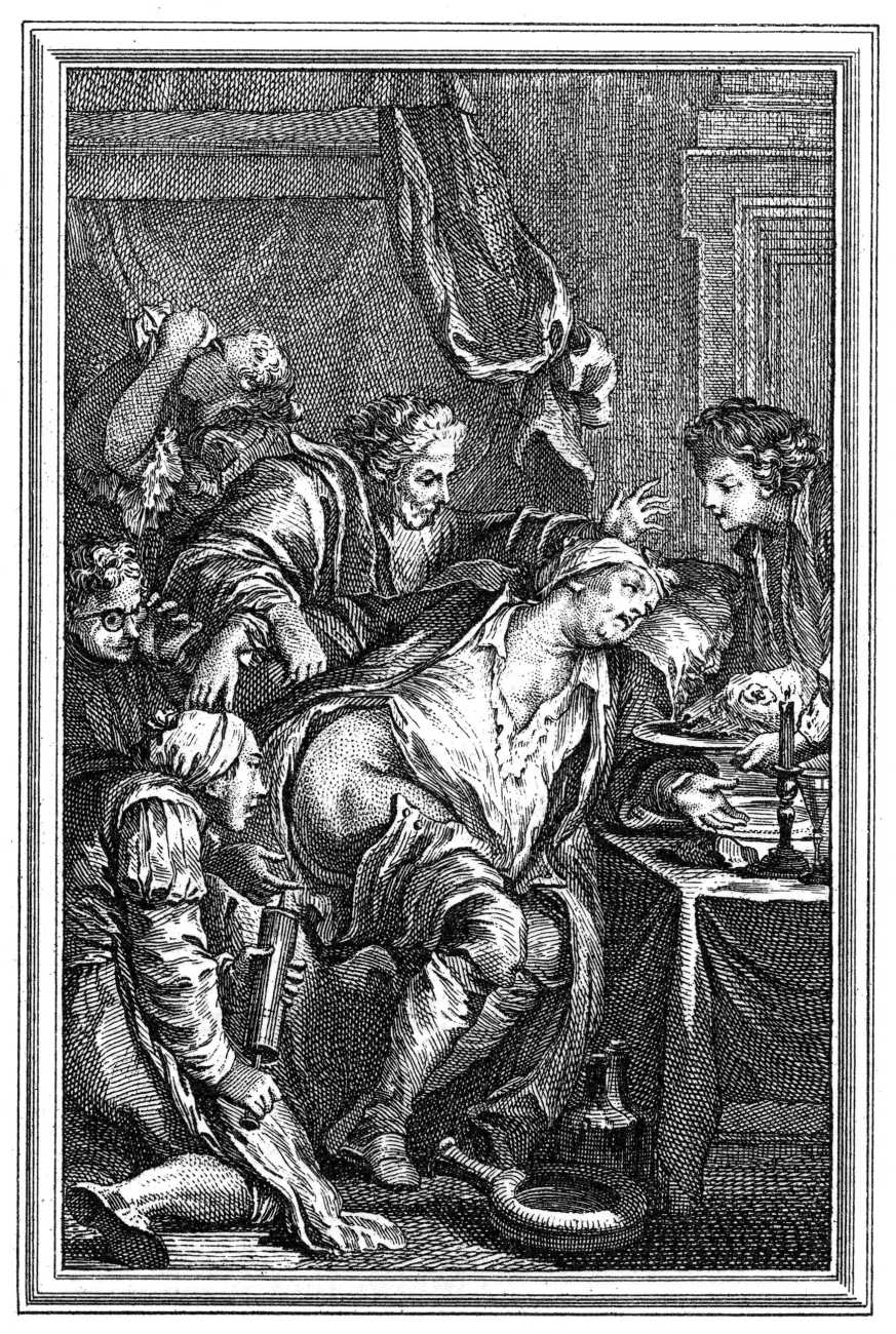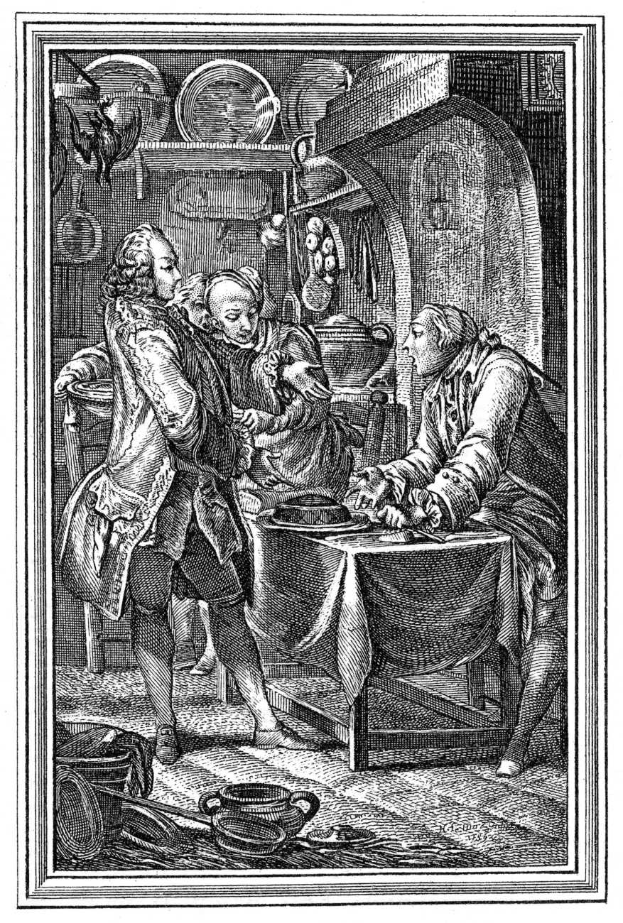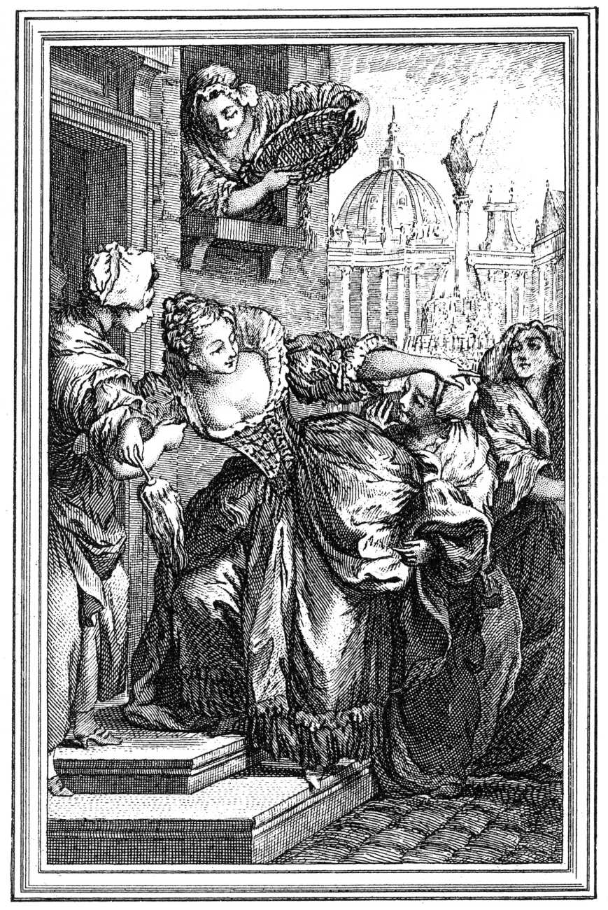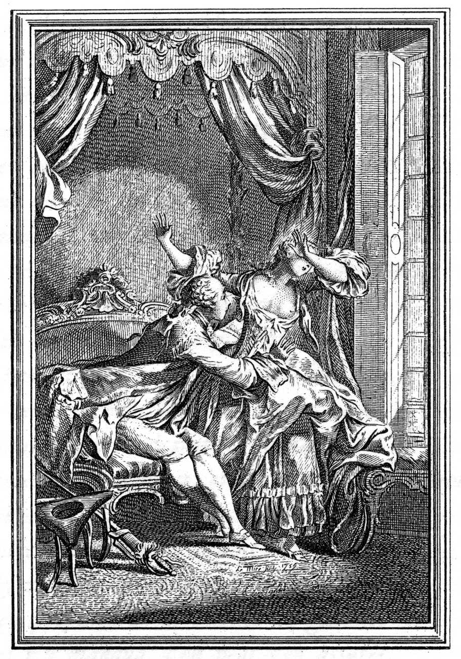 Unlike the Décaméron of five years earlier, all the plates for Fontaine’s Contes et nouvelles en vers were produced by Eisen, and in a bolder and more free-flowing style.