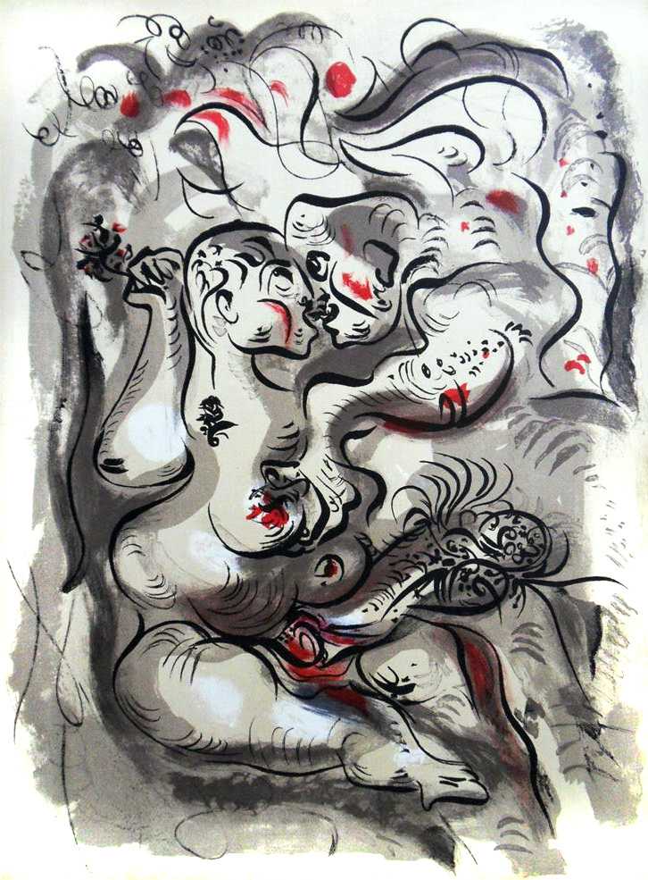 André Masson drew thousands of images during his long artistic career, and many of them, especially in his later years, had an erotic element, some blatantly so. A portfolio of twenty lithographs, Dessins érotiques, was compiled in 1972 in conjunction with the specialist art printer Claude Jobin and presented in a large-format folder, each print signed in crayon by Masson.