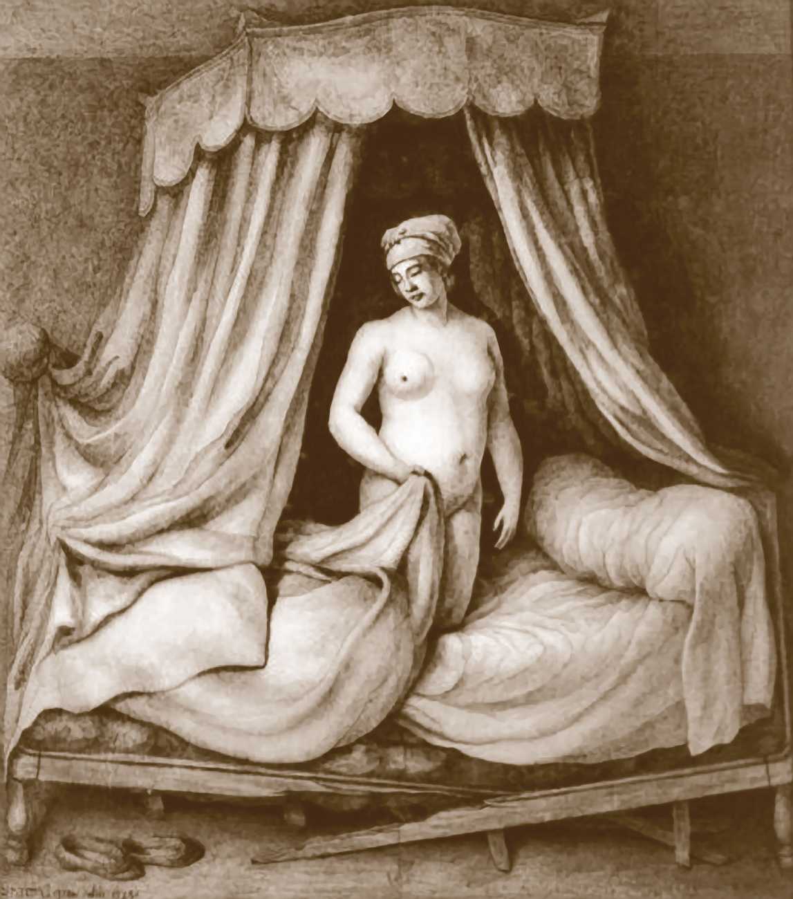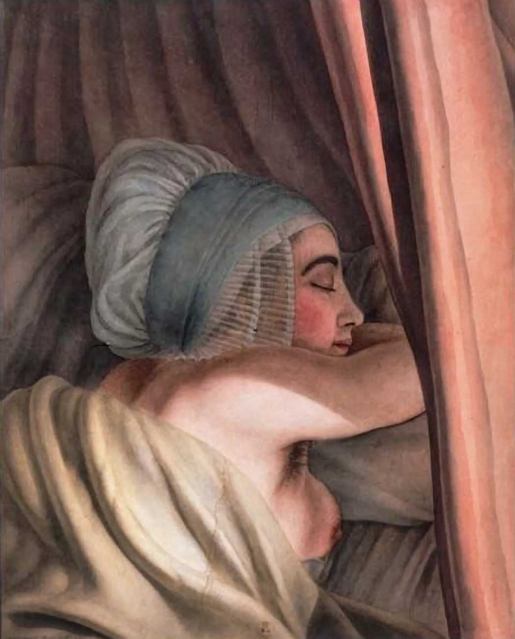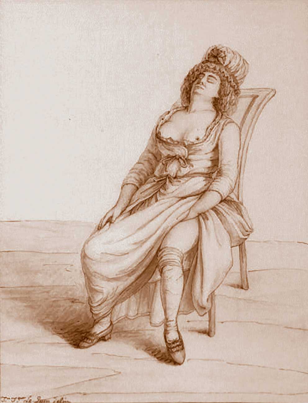 As far as can be ascertained, almost nothing is known of Jean-Jacques Lequeu’s personal life in Paris. He never married or had children, but from this series of detailed drawings, held in the reserved collection of the Bibliothèque Nationale, we know that he was fascinated by sexual anatomy, producing material that would not be out of place in any early sex manual. We can also imagine, from his touching drawings of a sleeping woman, that he knew something of the sweet intimacy of close relationship. He has sometimes been portrayed as a lonely artist living in an attic in Montmartre, but these drawings suggest a more sociable side.