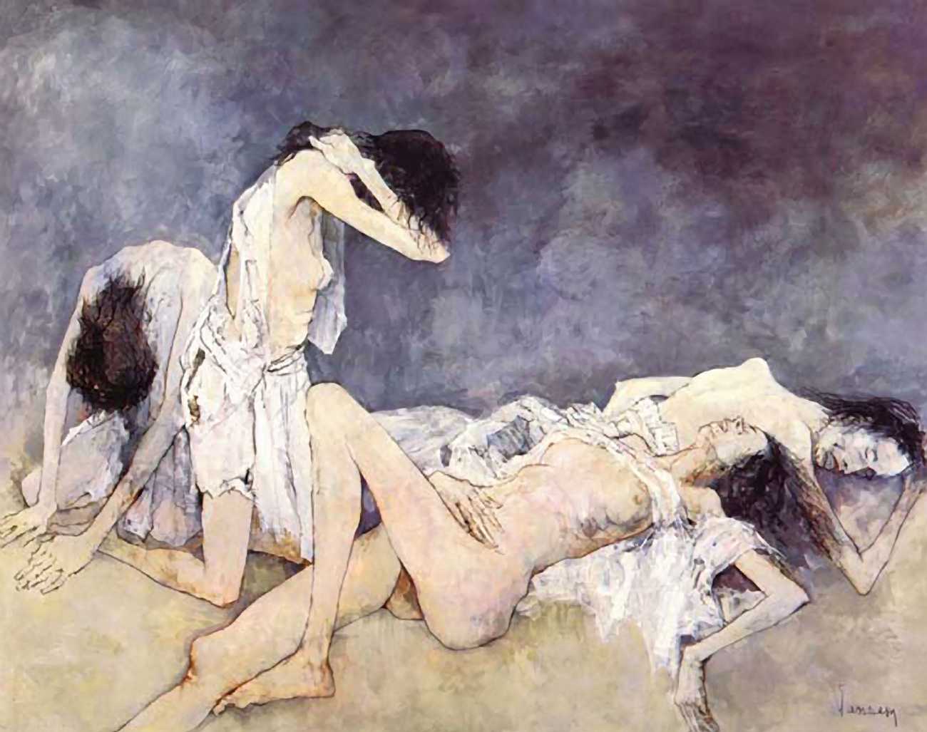 For Jansem painting was a solace, a pleasure, and at least in the early years in no way linked to commercial art. Upon graduating from the École des Arts Decoratifs his poster work, fabric designs and illustrations allowed him to support himself while painting seriously in private. The public was not long in viewing and appreciating his work. He exhibited in the Salon des Indépéndants in 1941, and then in the Salon d’Automne, the Salon des Tuileries, Peintres Temoins de leur Temps, Comparaisons, Jeunes Peintres, and other salons. Jansem’s first solo exhibition was held in 1950 at the Galerie Doucet in Paris.
