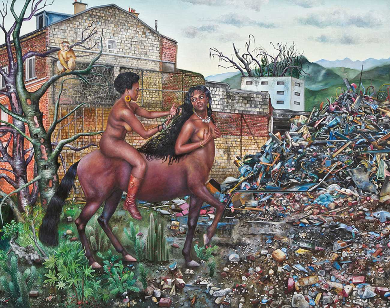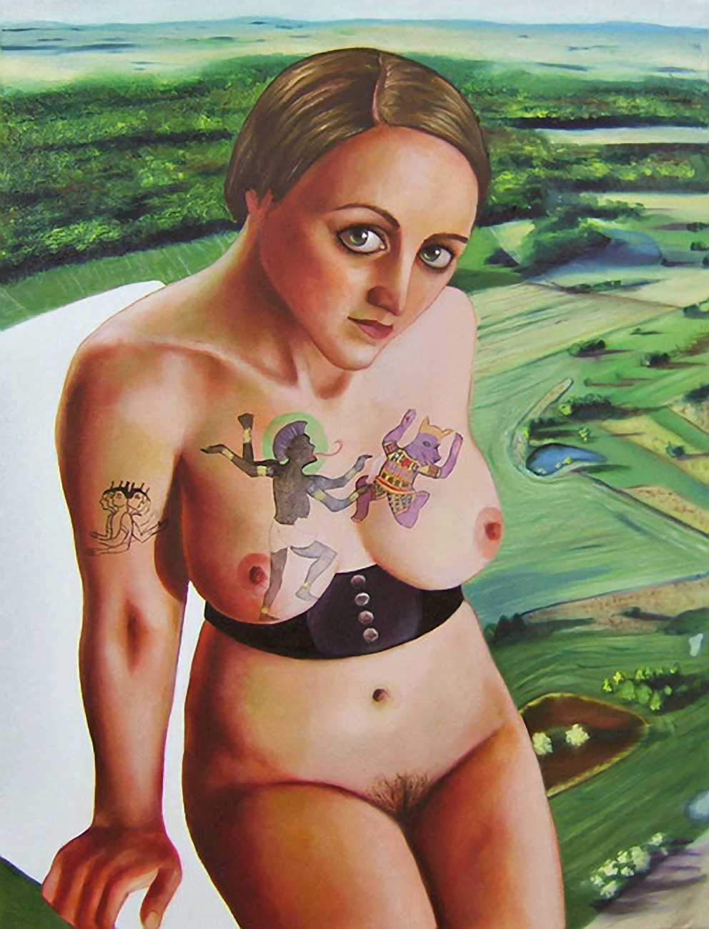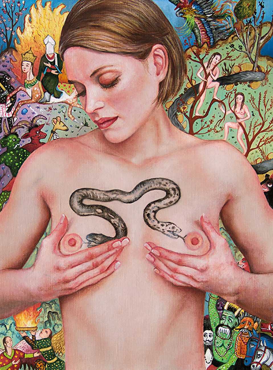 In one very colourful and semi-autobiographical drawing, you show a standing woman, made up of two halves, one half shows your body, the other half is populated by many scenes from human history. Is this sort of split a key element in understanding your work?