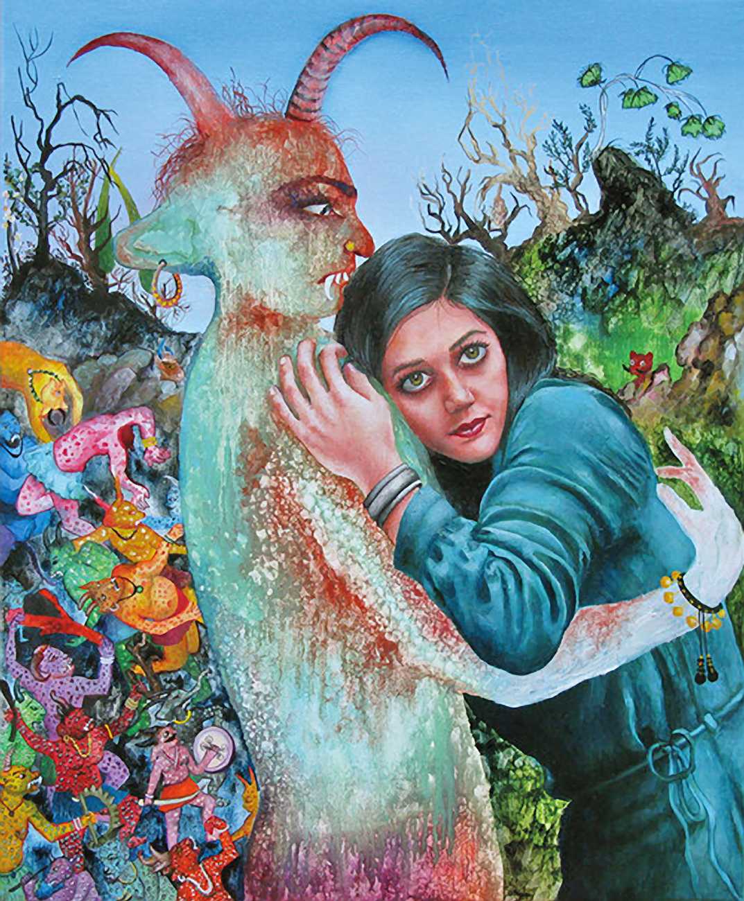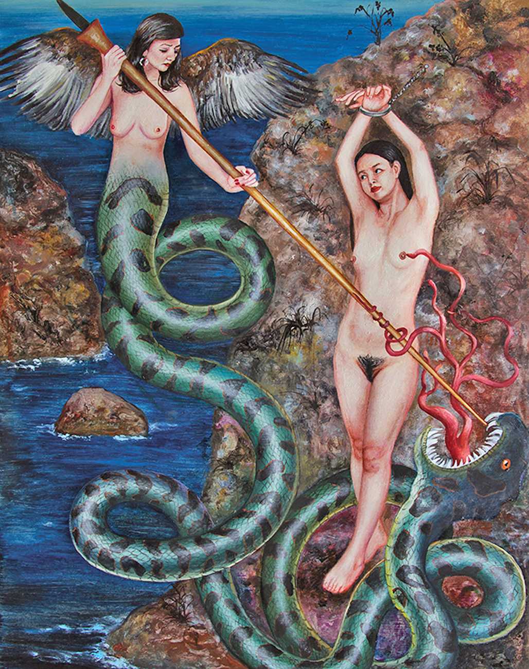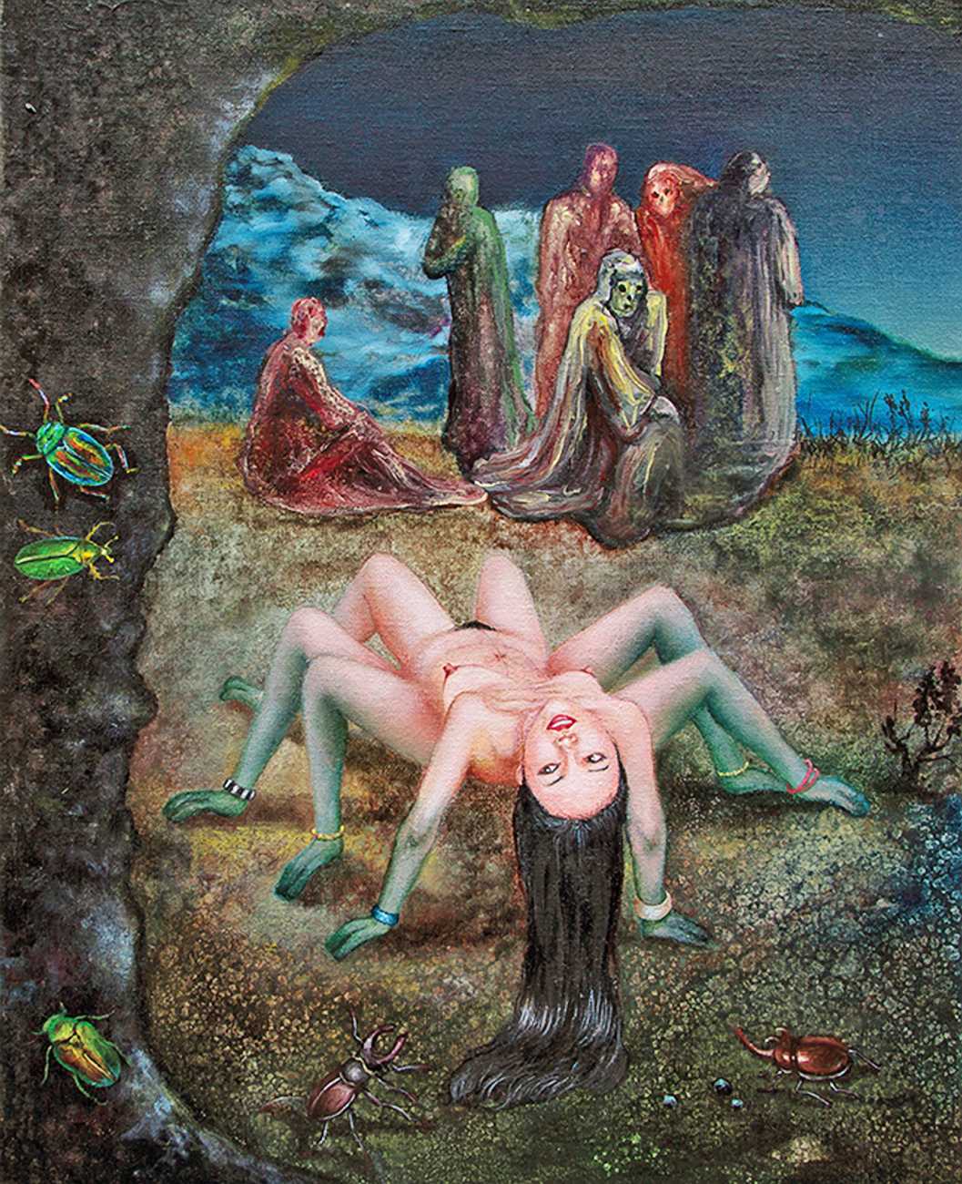 In one very colourful and semi-autobiographical drawing, you show a standing woman, made up of two halves, one half shows your body, the other half is populated by many scenes from human history. Is this sort of split a key element in understanding your work?