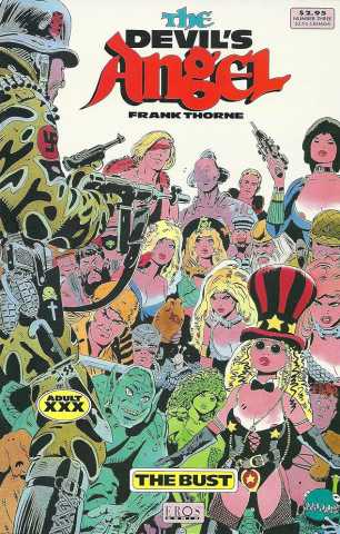 Frank Thorne’s last major work, The Devil’s Angel, is a remarkable eroto-satirical tale in which a porn bust brings many of Thorne’s characters to line up and engage in a no-holds-barred battle with the forces of intolerance and obscurantism, including hilarious, thinly-disguised parodies of some of the major political figures of the time.