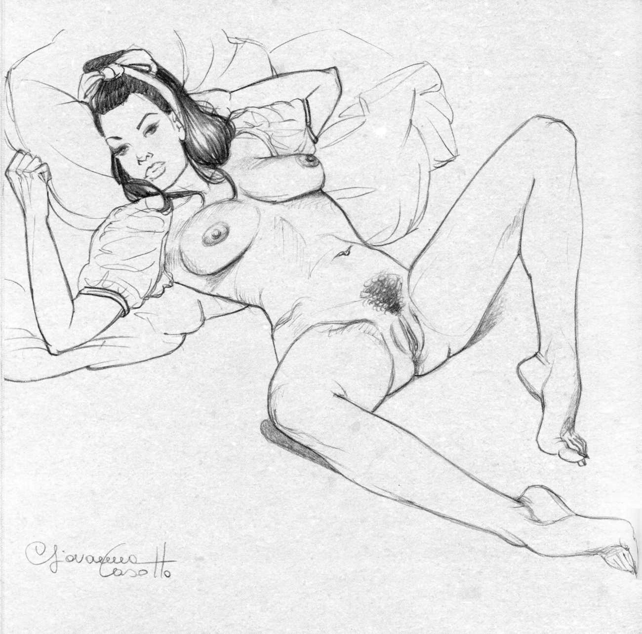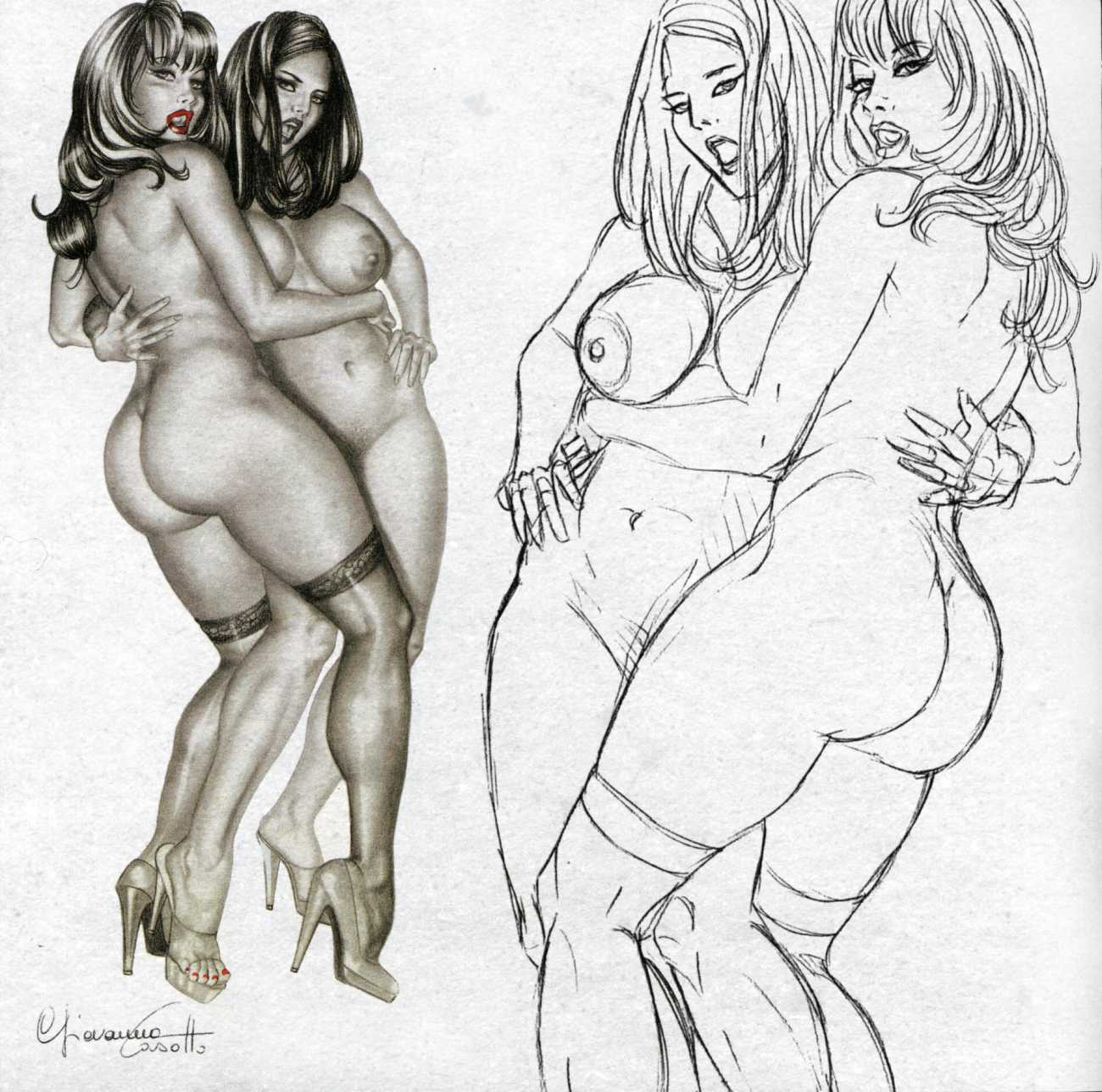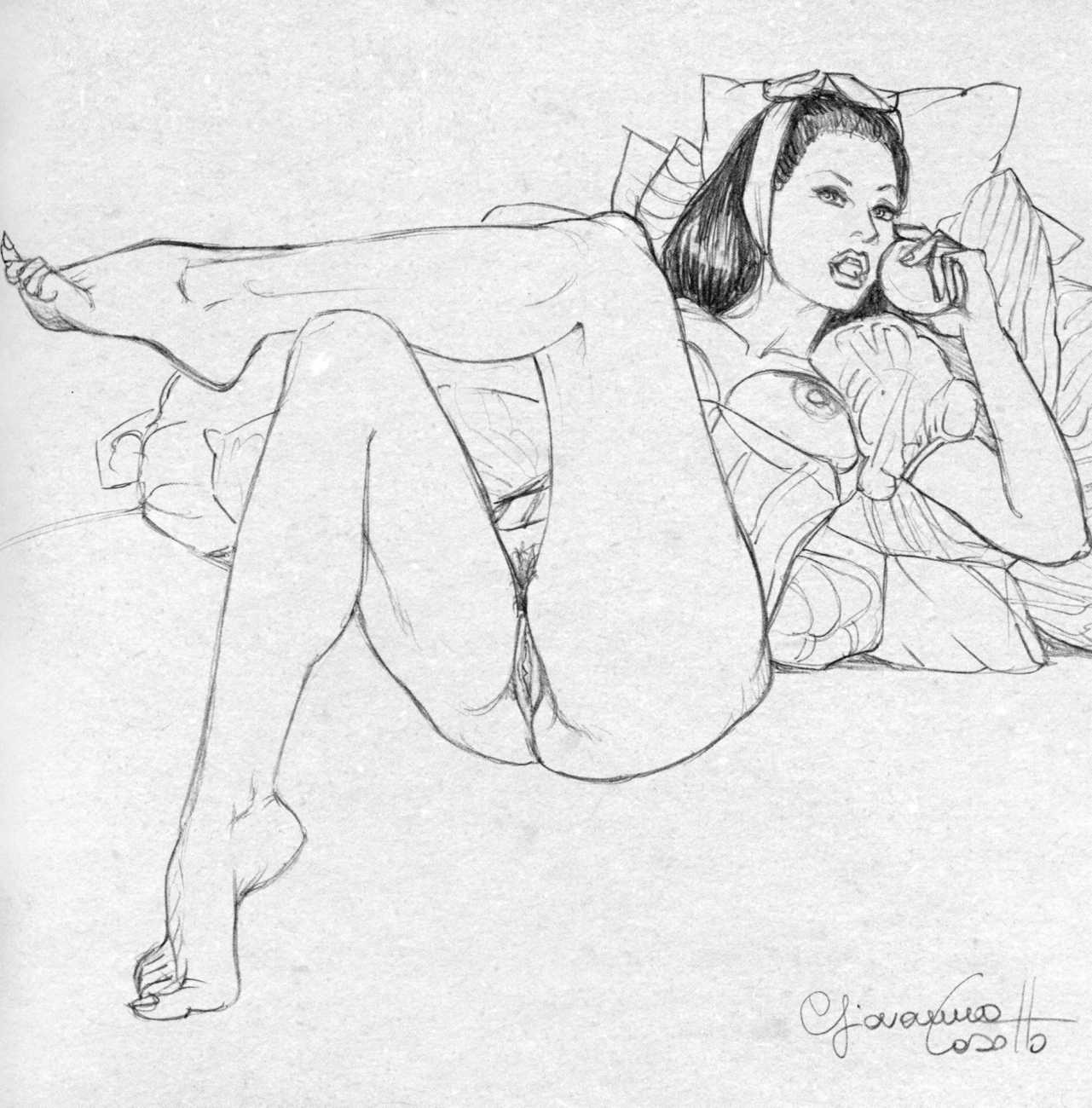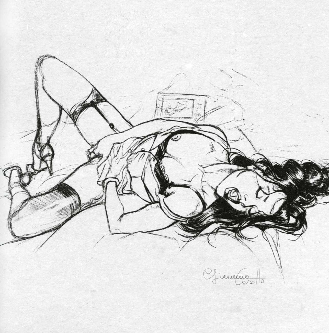 ‘Eroticism attracts me in all its forms, whether art, writing, real experiences or dreams. It is my only real interest, everything else is secondary, because more than anything else eros is the driving force of my existence, nothing else knows how to set the rhythm of my time and mark my space quite as well.’ Sketchbook, produced as part of a series on illustrators by the Italian publisher BM Edizioni, offers 128 pages of Casotto sketches, mostly in mono but a few in colour, together with some random snippets of text, and an introduction in English and Italian by her friend Roberto Baldazzini.