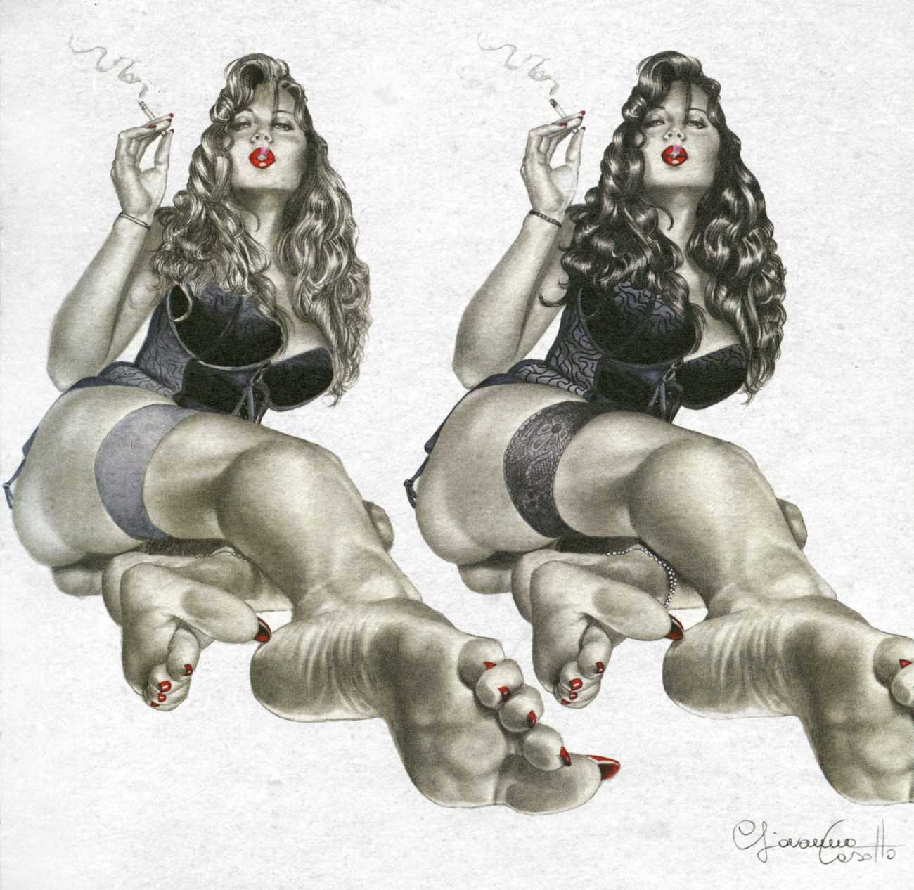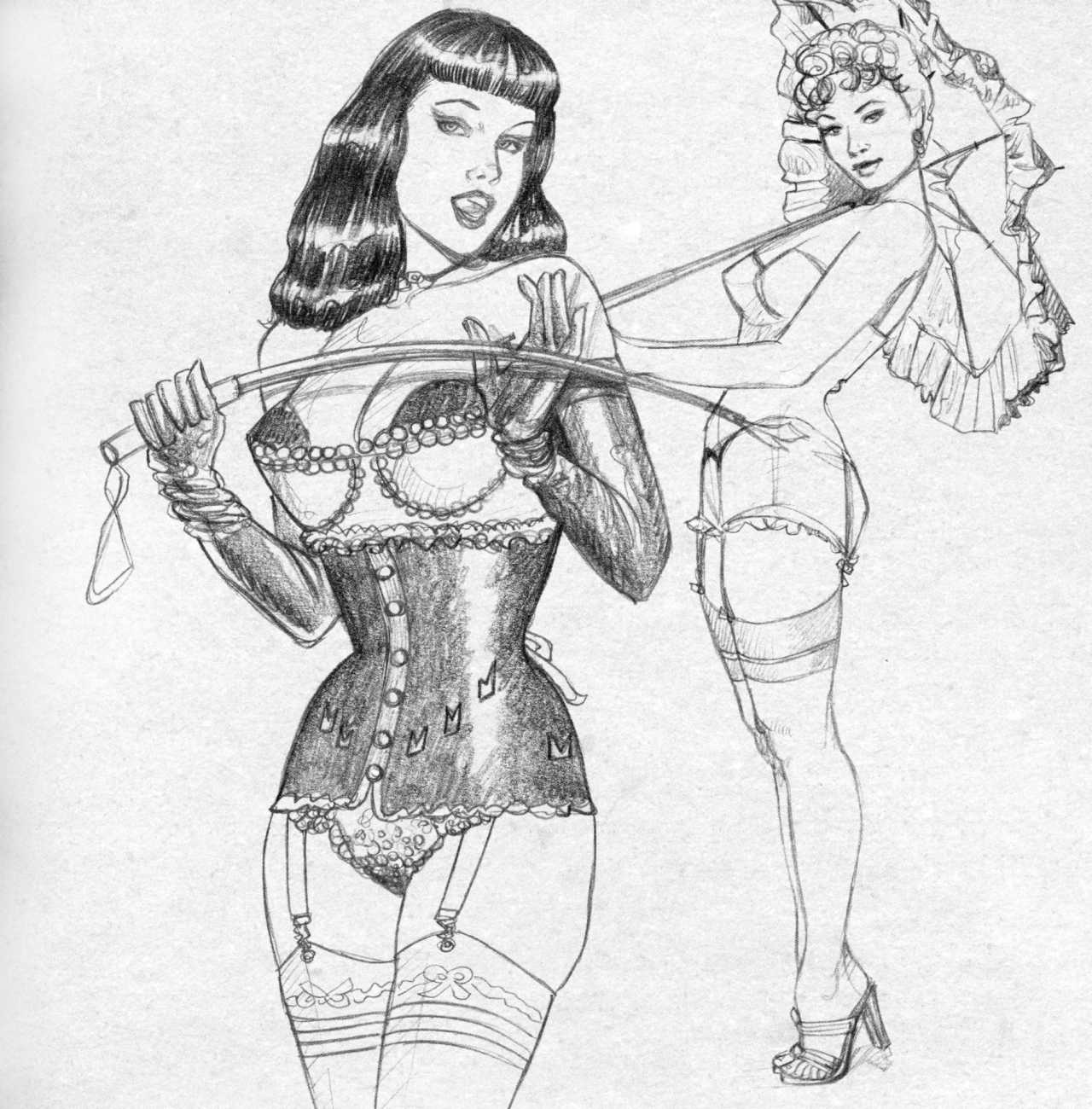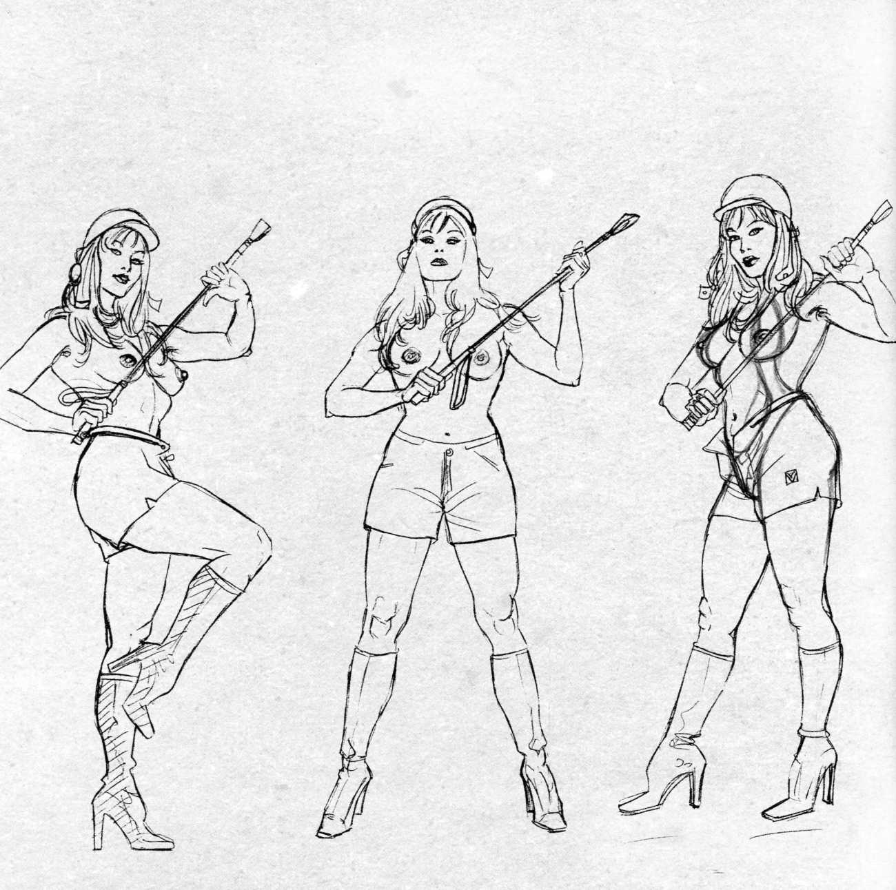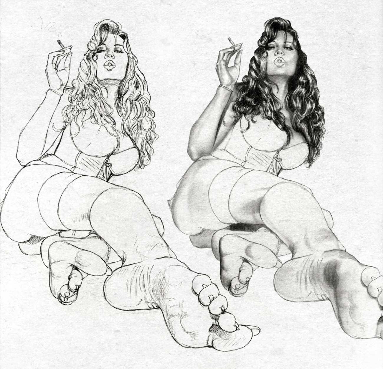 ‘Eroticism attracts me in all its forms, whether art, writing, real experiences or dreams. It is my only real interest, everything else is secondary, because more than anything else eros is the driving force of my existence, nothing else knows how to set the rhythm of my time and mark my space quite as well.’ Sketchbook, produced as part of a series on illustrators by the Italian publisher BM Edizioni, offers 128 pages of Casotto sketches, mostly in mono but a few in colour, together with some random snippets of text, and an introduction in English and Italian by her friend Roberto Baldazzini.