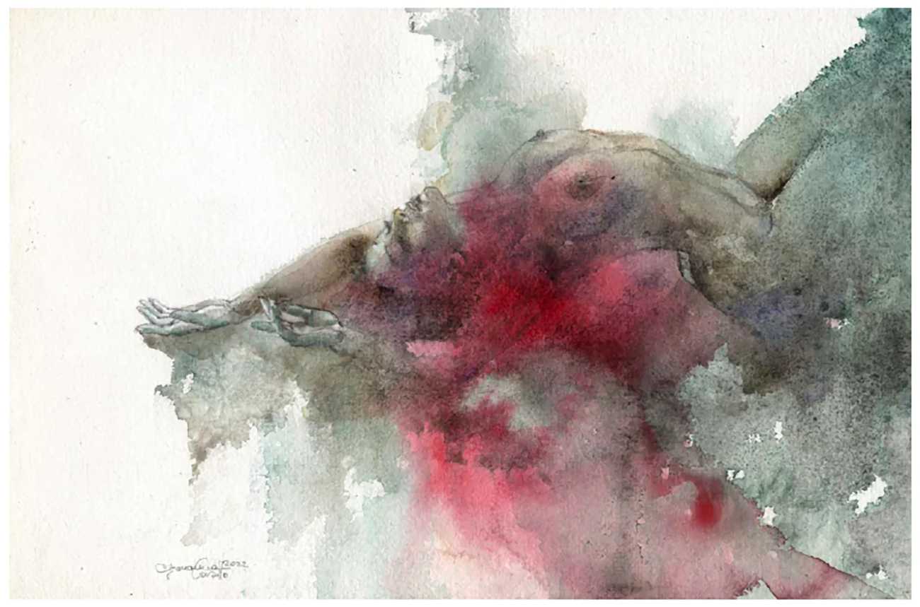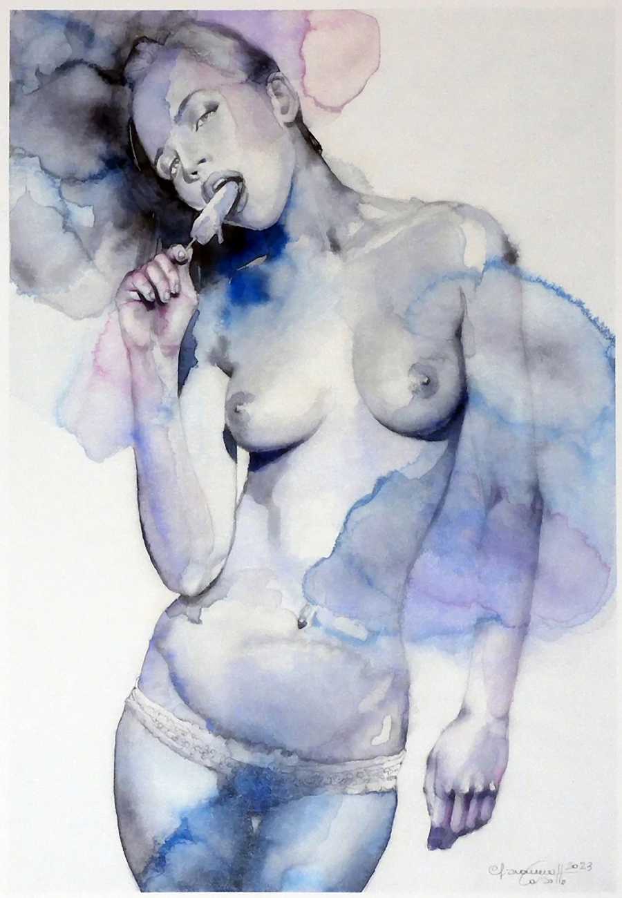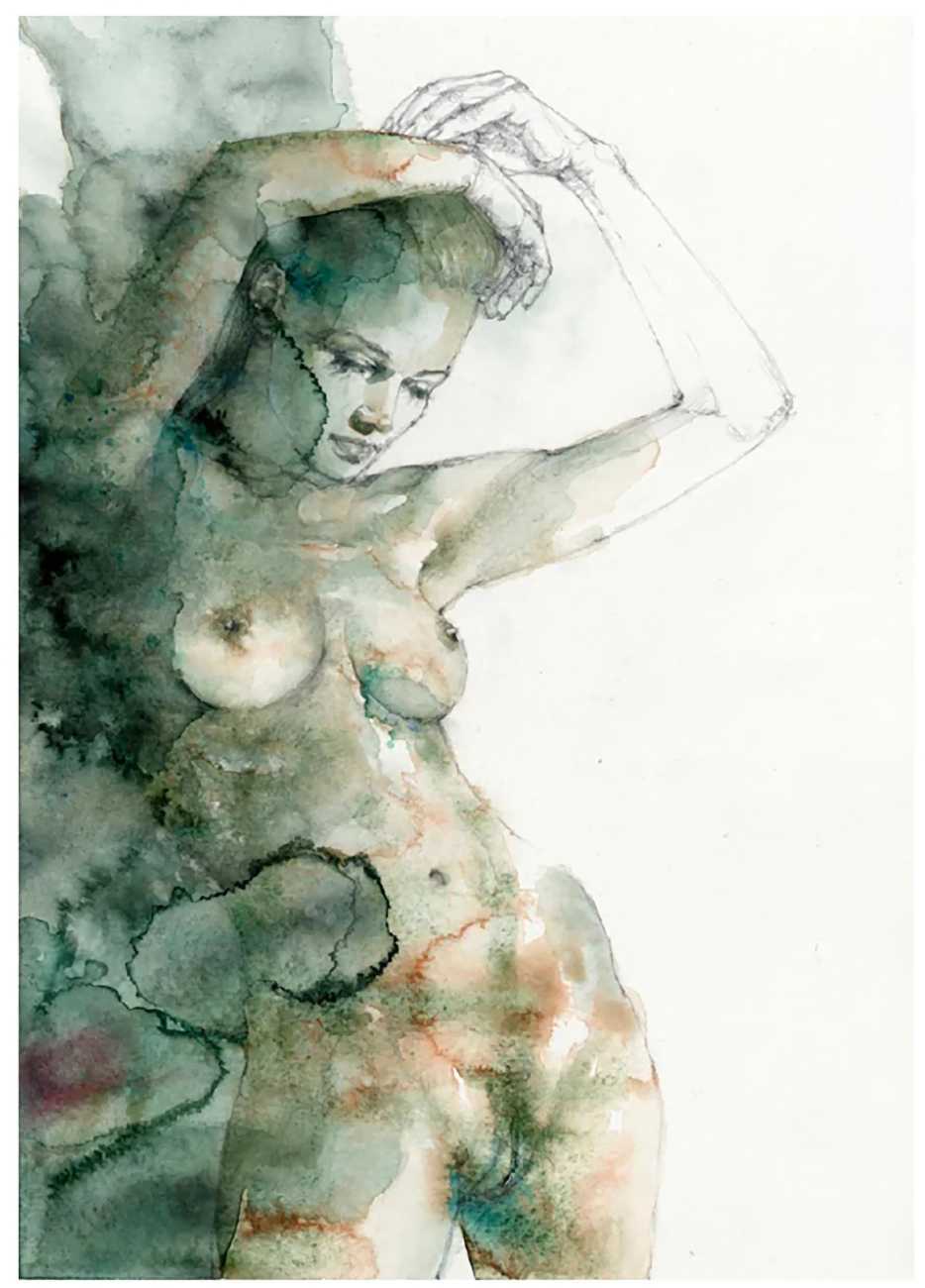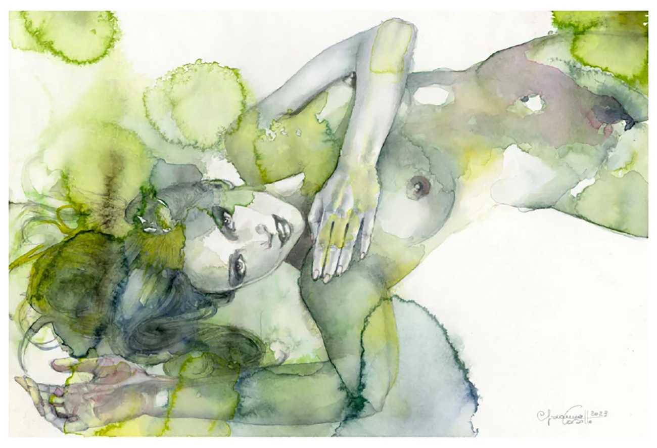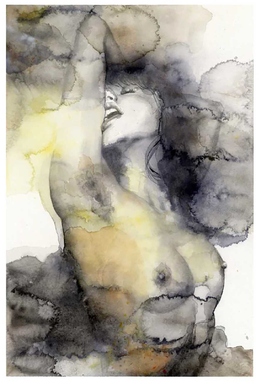 Around 2020 Giovanna Casotto left erotic comics behind, and started to concentrate entirely on developing her watercolours. She had made and sold individual prints before, but the publication of Liquide, an edition of 100 signed portfolios of 15 prints, produced by Grifo Edizioni in 2021, saw her sensitive, colourful paintings marketed to a new audience.