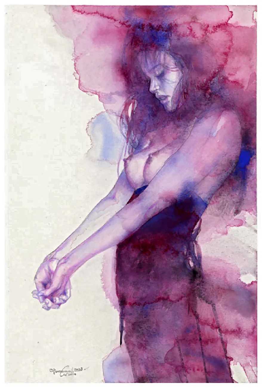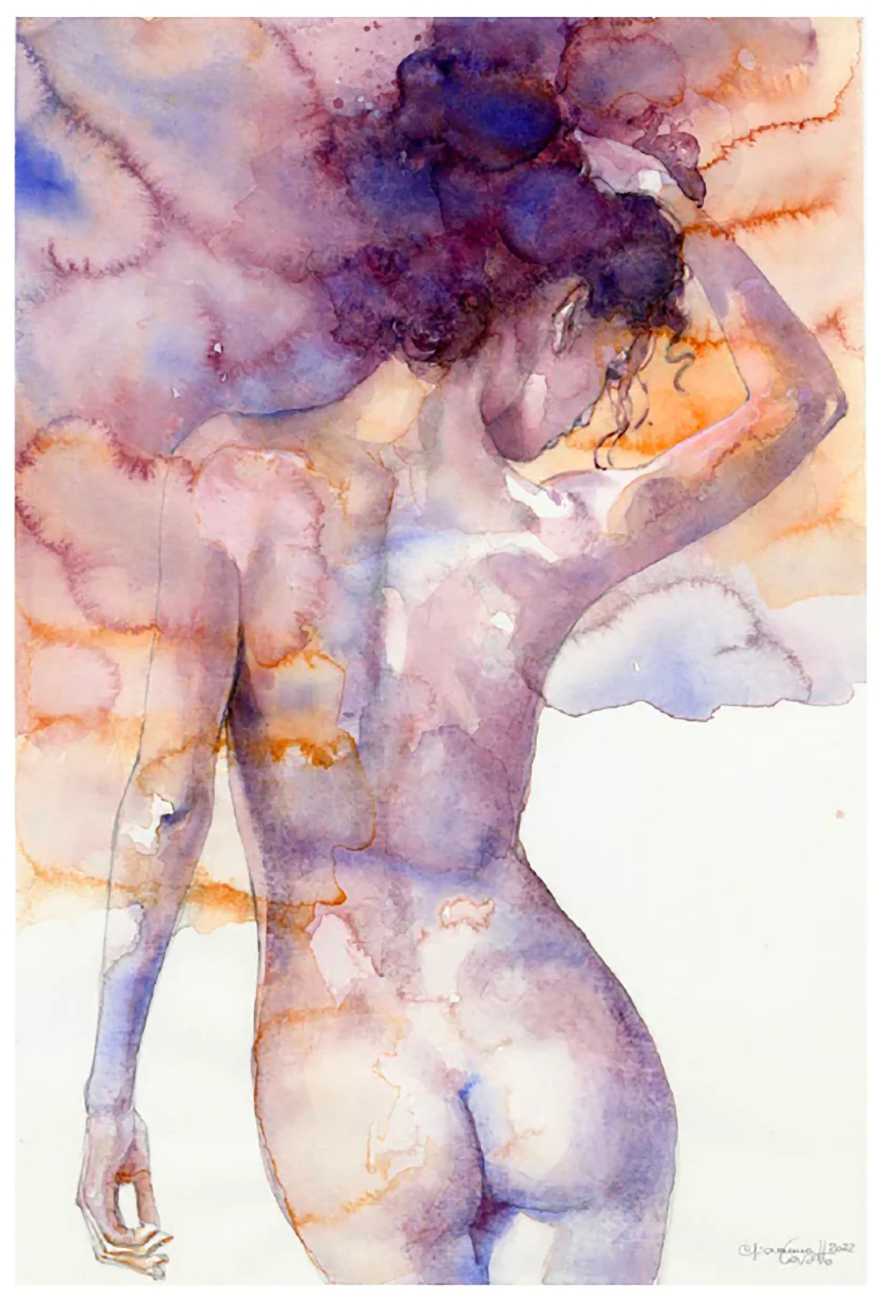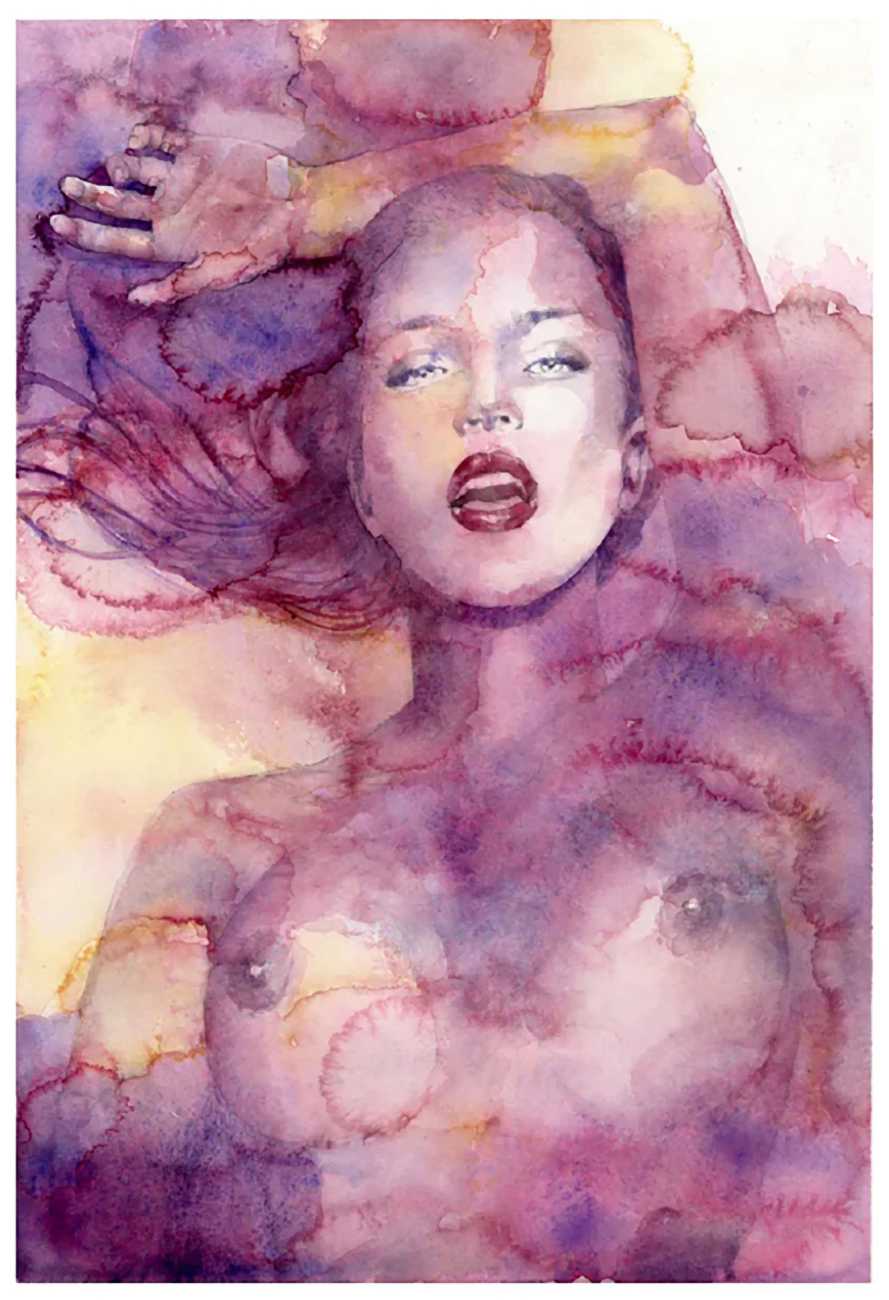 Casotto’s watercolours still feature the same conventionally beautiful, shapely young women, but demonstrate that the artist is comfortable, fluent and exploratory in her new chosen medium.