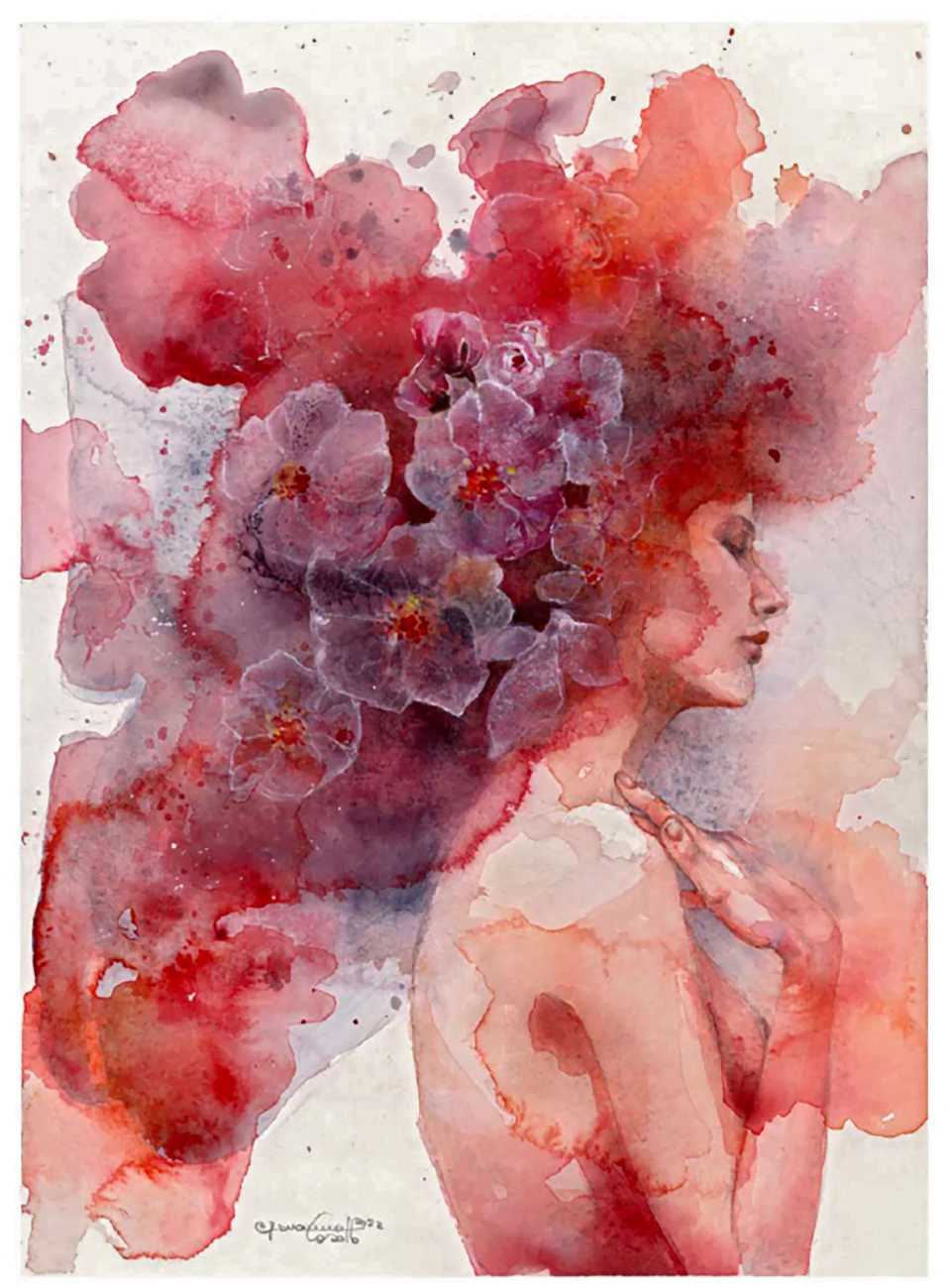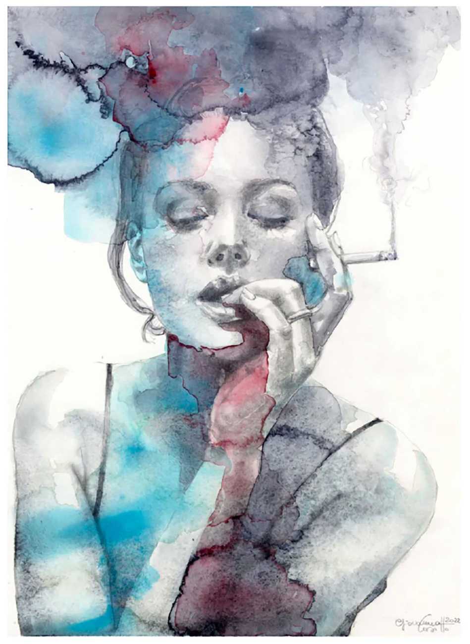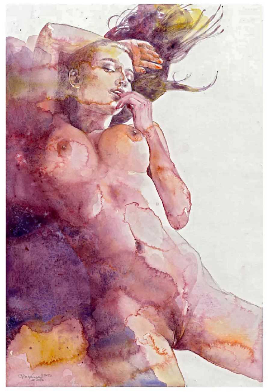 Casotto’s watercolours still feature the same conventionally beautiful, shapely young women, but demonstrate that the artist is comfortable, fluent and exploratory in her new chosen medium.