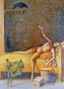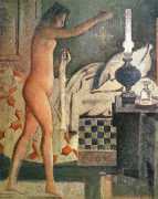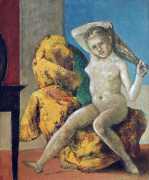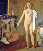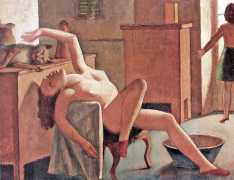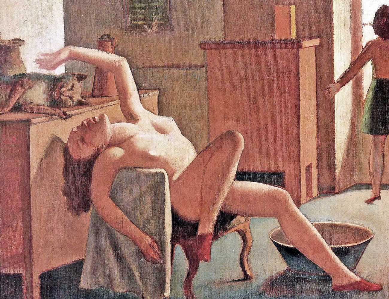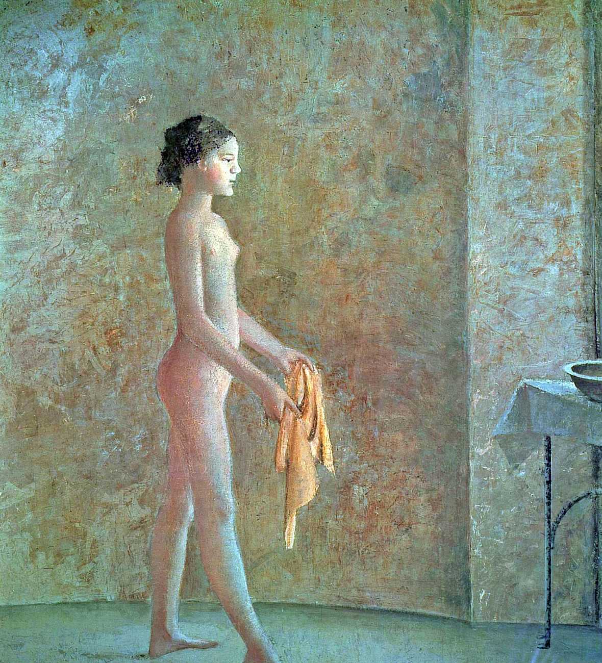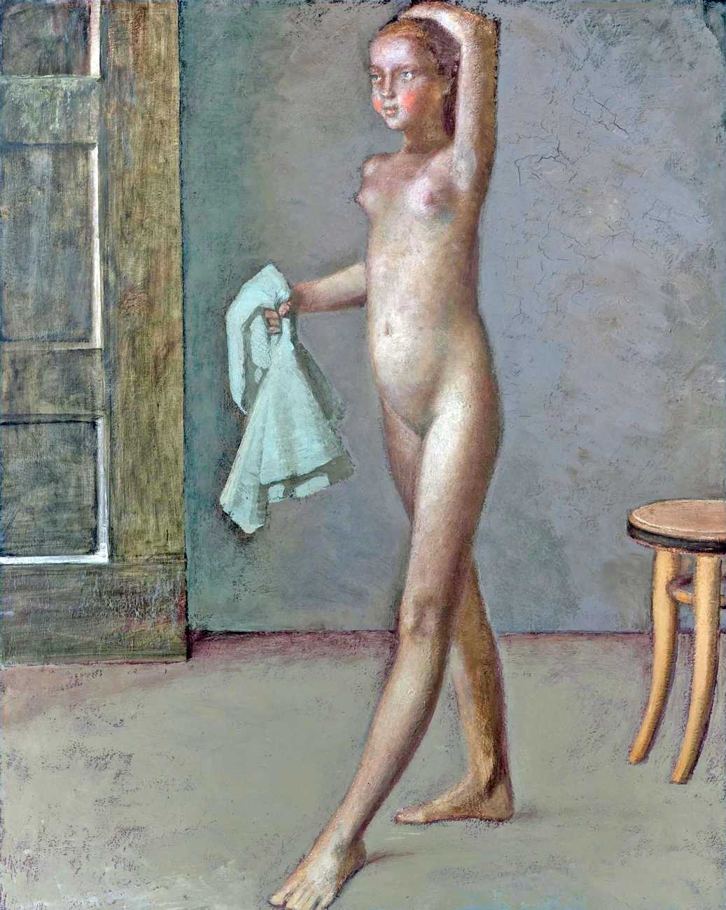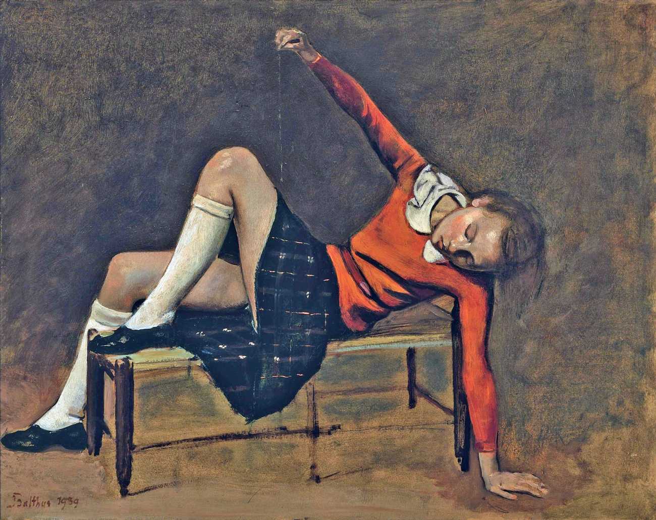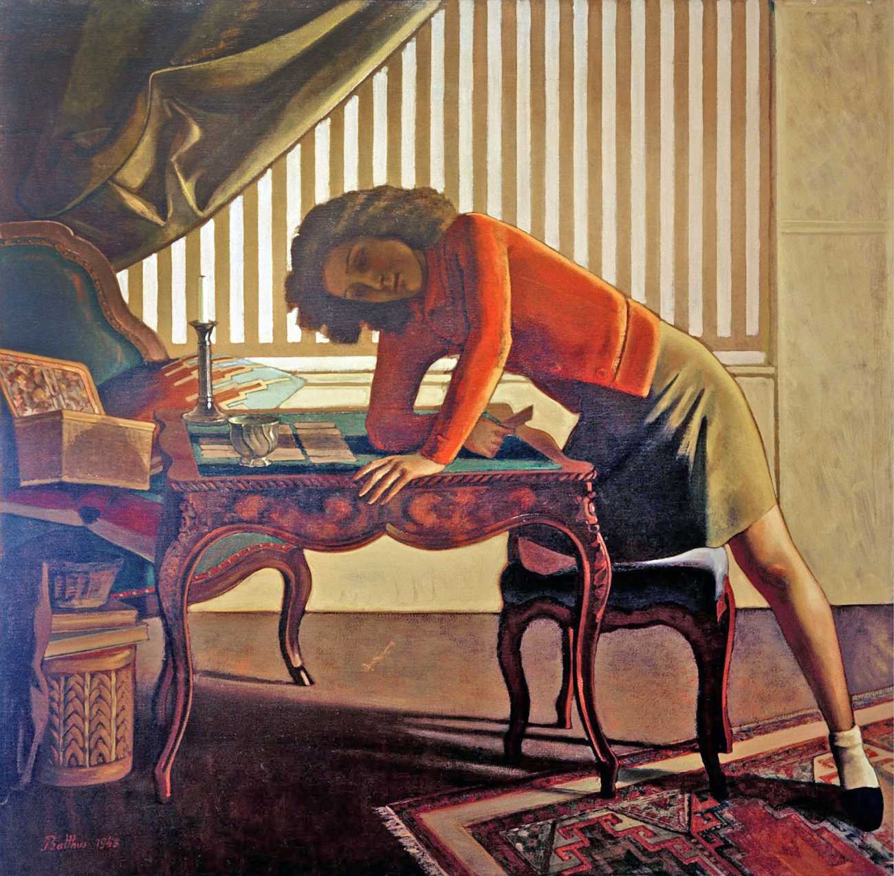Fellow artist Antonin Artaud wrote about Balthus’s paintings that ‘Balthus paints, primarily, light and form. By the light of a wall, a polished floor, a chair, or an epidermis he invites us to enter into the mystery of a human body. That body has a sex, and that sex makes itself clear to us, with all the asperities that go with it. The nude I have in mind has something harsh about it, something tough, something unyielding, and – there is no gainsaying the fact – something cruel. It is an invitation to lovemaking, but one that does not dissimulate the dangers involved.’