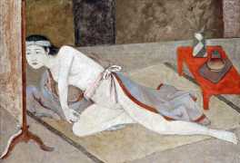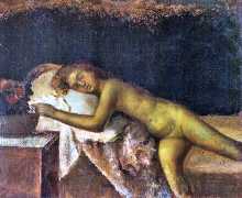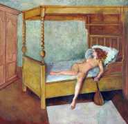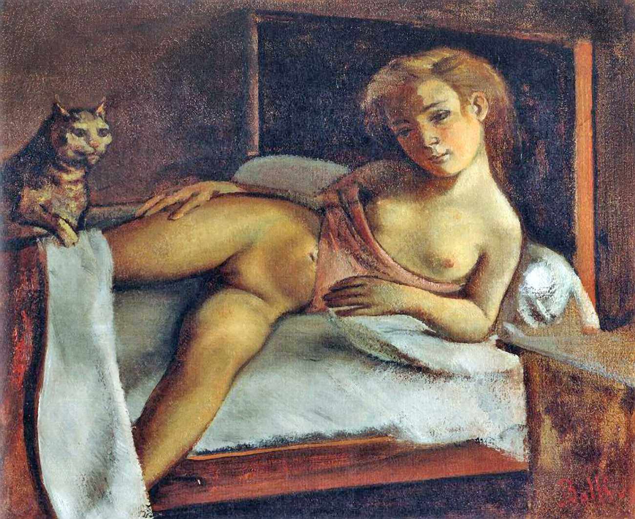 Many of Balthus’s paintings depict young girls, either naked or nearly so. Balthus always insisted that his work was not erotic, but that it recognised the discomforting facts of children’s sexuality. In 2013 Balthus’s paintings of adolescent girls were described by Roberta Smith in The New York Times as ‘both alluring and disturbing’. Balthus emphasised that his art was about innocence, and referred to the young girls he painted as ‘angelic’. In 1985 his painting Girl and Cat was used as the cover illustration for Penguin edition of Vladimir Nabokov’s novel Lolita, to which Balthus commented ‘I really don’t understand why people see my paintings of girls as Lolitas. You know why I paint little girls? Little girls are the only creatures today who can be pure and timeless. Some American journalist said he found my work pornographic. What does he mean? Most advertising with female models is more pornographic.’