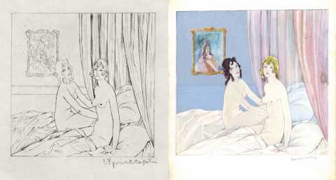 Interestingly, both the pencil sketches and the watercolour images supplied by the artist for the printer to check the colours of the printed lithographs against have survived for Le malheureux petit voyage, and a sample is shown here.
