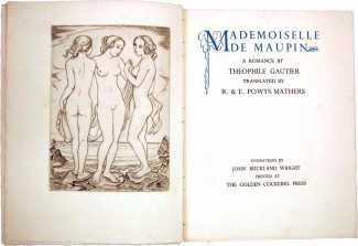 The 1938 Golden Cockerel edition of Mademoiselle de Maupin was produced in a run of 500 copies, of which 50 were in de luxe white vellum bindings. At the purchasers’ requests John later produced addition pen and ink drawings for several of the copies.