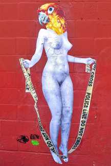 Vinz’s ideas are grounded in the realities of the social and political environment. Naked bodies of all shapes and sizes question our beliefs about freedom, the reptilian hybrids representing the repressive and often violent forces of officialdom, and the suited reptilians the businessmen and bankers who rule the world we live in.