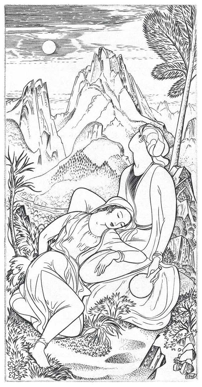 Immensely popular in the 1940s and 50s, the Rubáiyát harks back to a romantic time of peace and beauty when all that mattered were the simple things of life, subjects that John Buckland Wright was brilliant at bringing to life in his pastoral imagery.