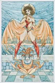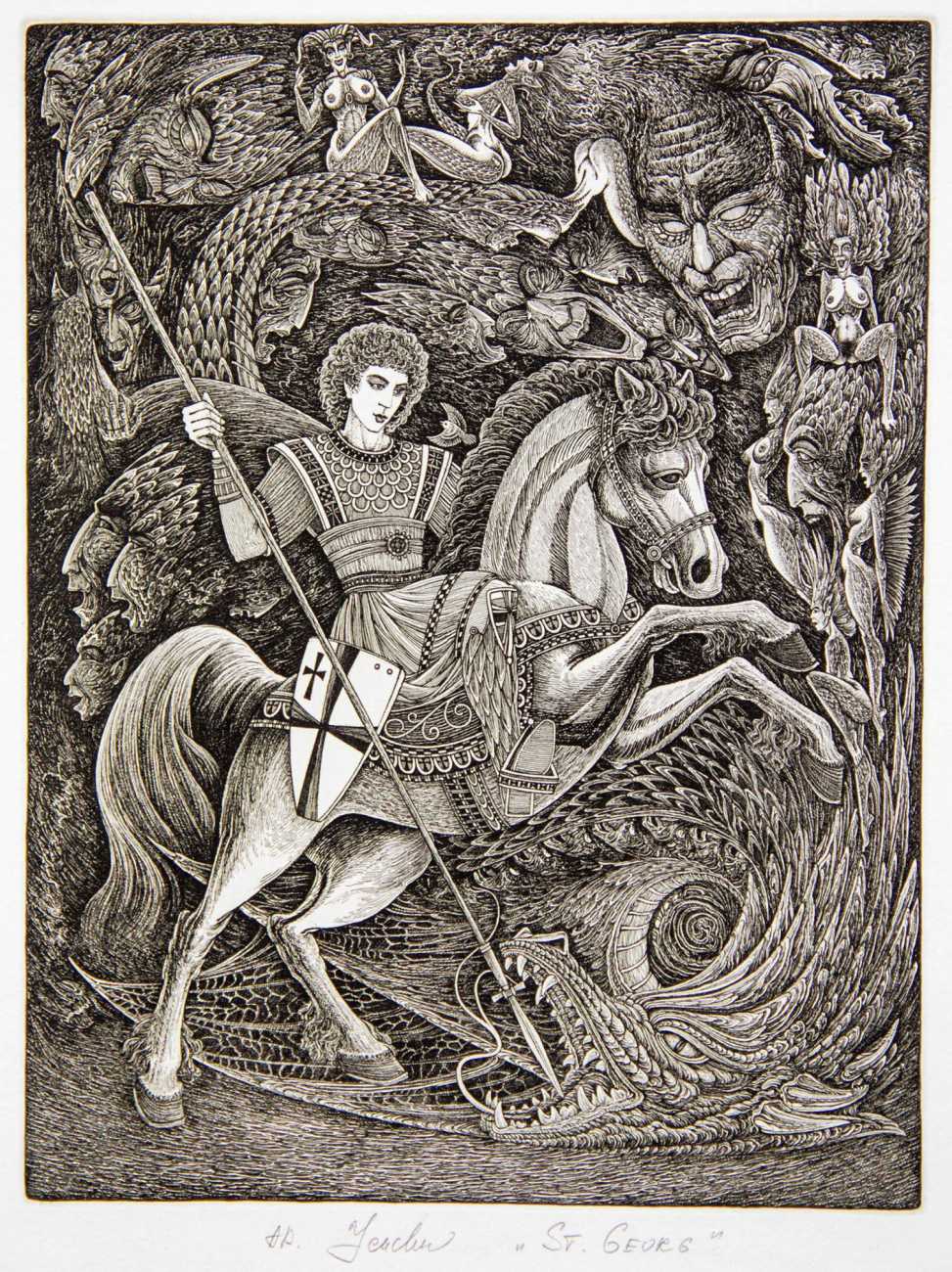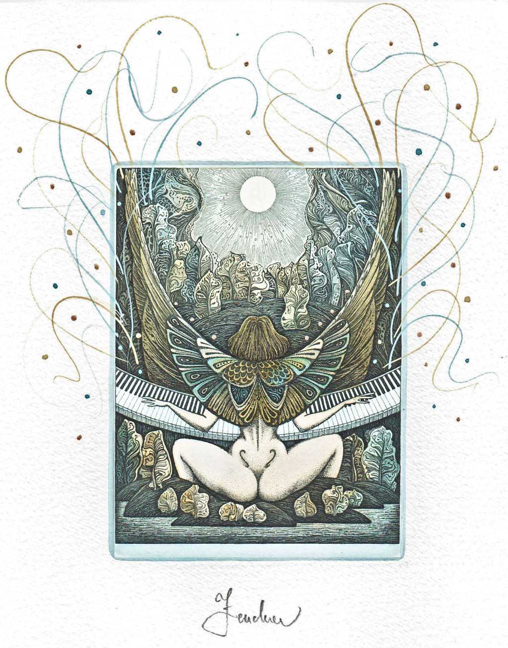 As well as engraving, Fenchak sometimes creates colourful watercolours, two of which are shown here.
