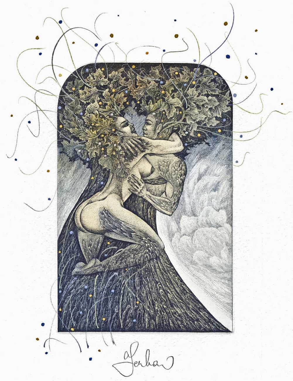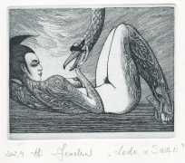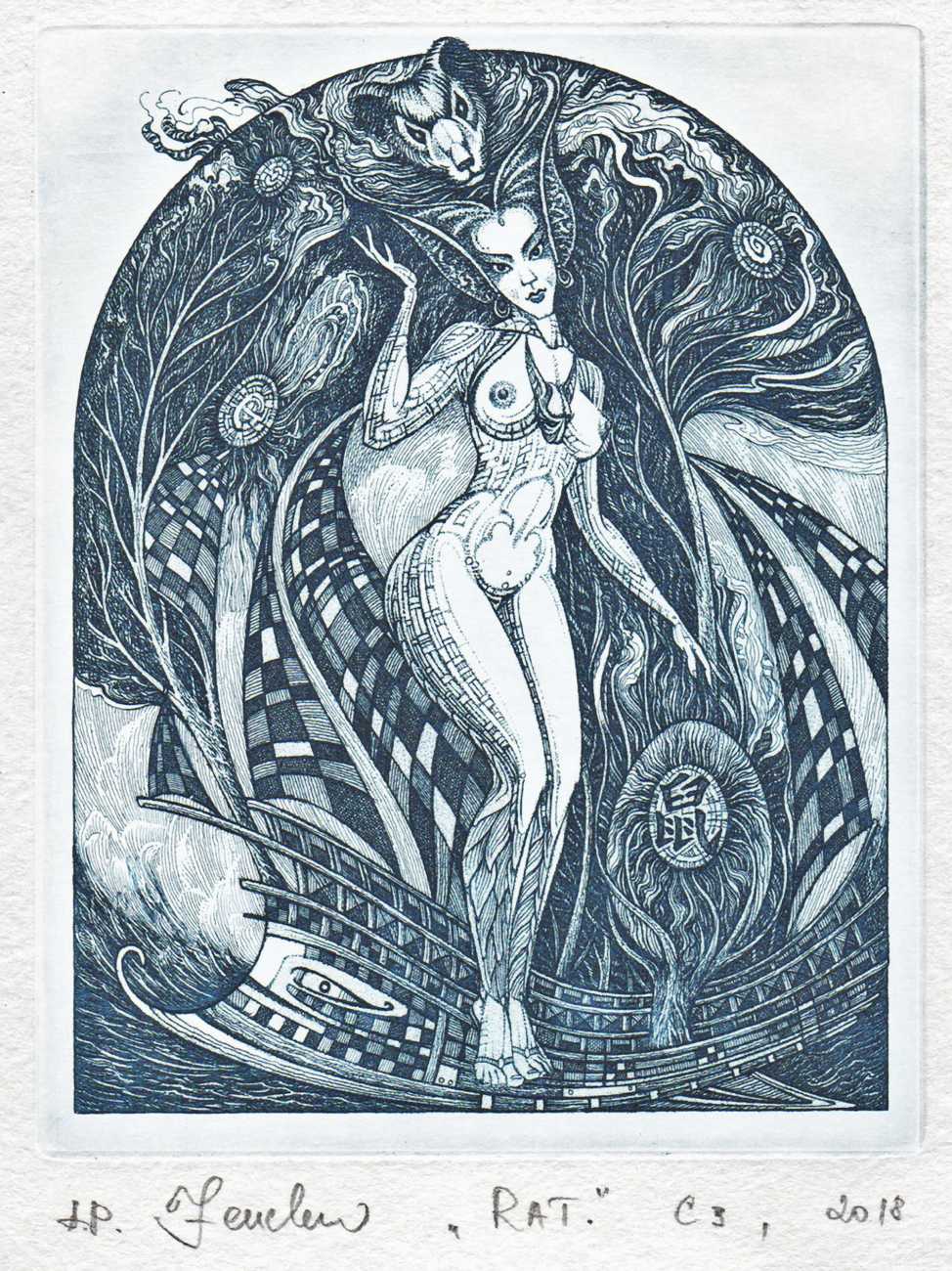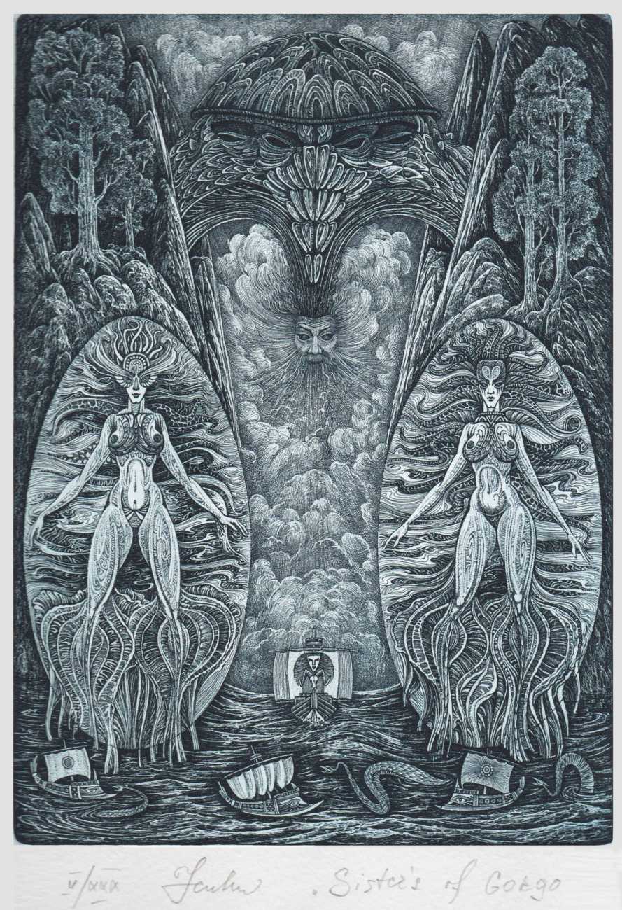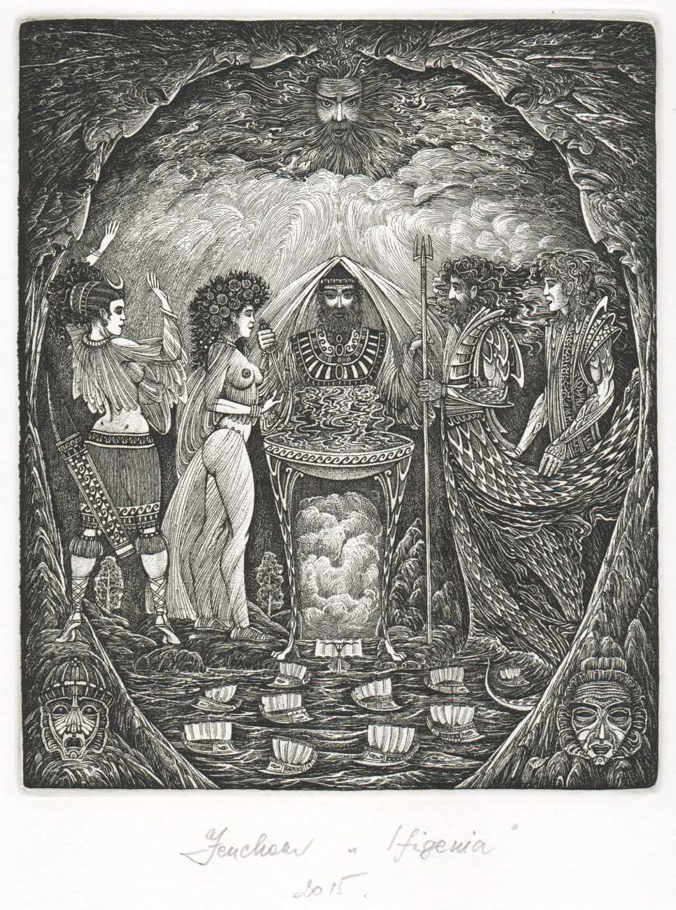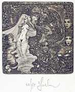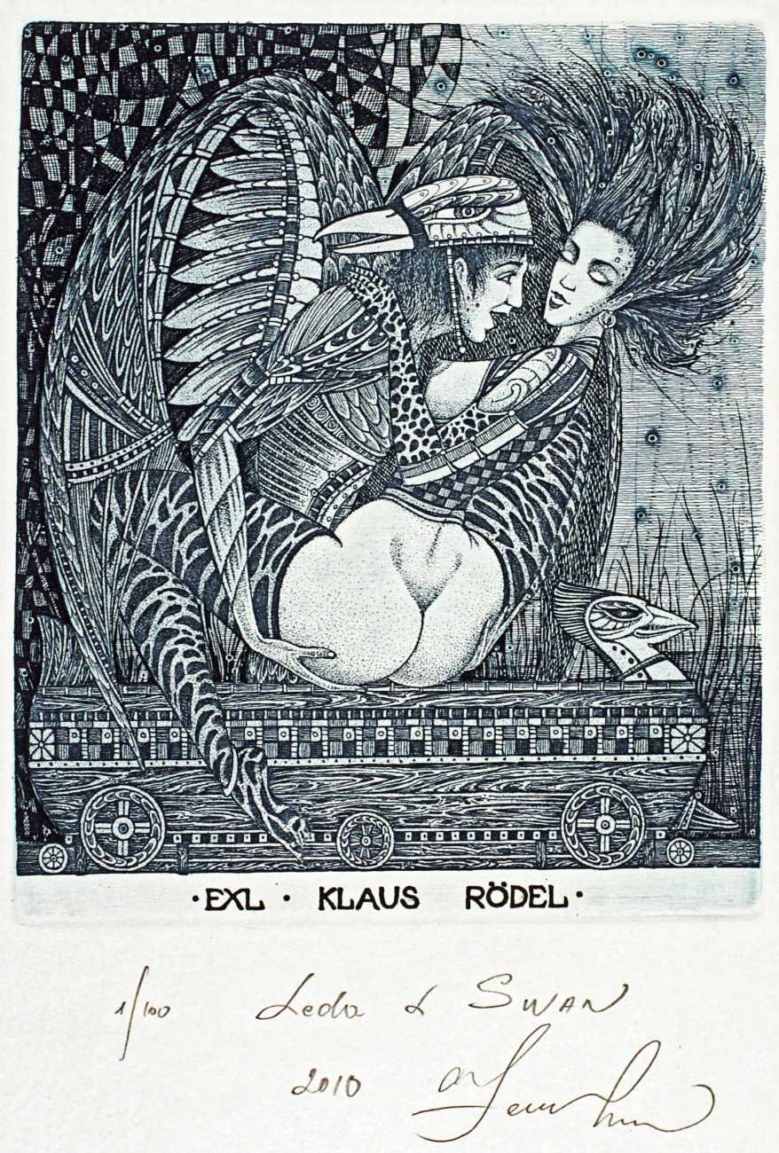 Vasyl Fenchak is widely considered to be one of the best modern engravers in a tradition for which his home country, Ukraine, is notably prominent. His detailed and carefully composed prints draw on a wide range of classical and ancient stories, combining powerful symbolism with rich background textures. Subjects with an erotic dimension – Leda and the Swan, Ariadne, Calypso, The Judgement of Paris, Susanna and the Elders – are among his favourites.