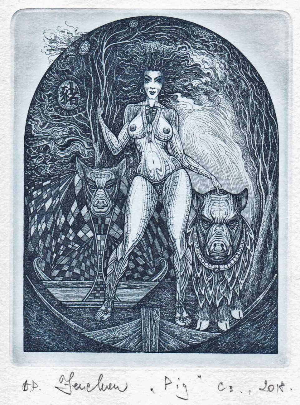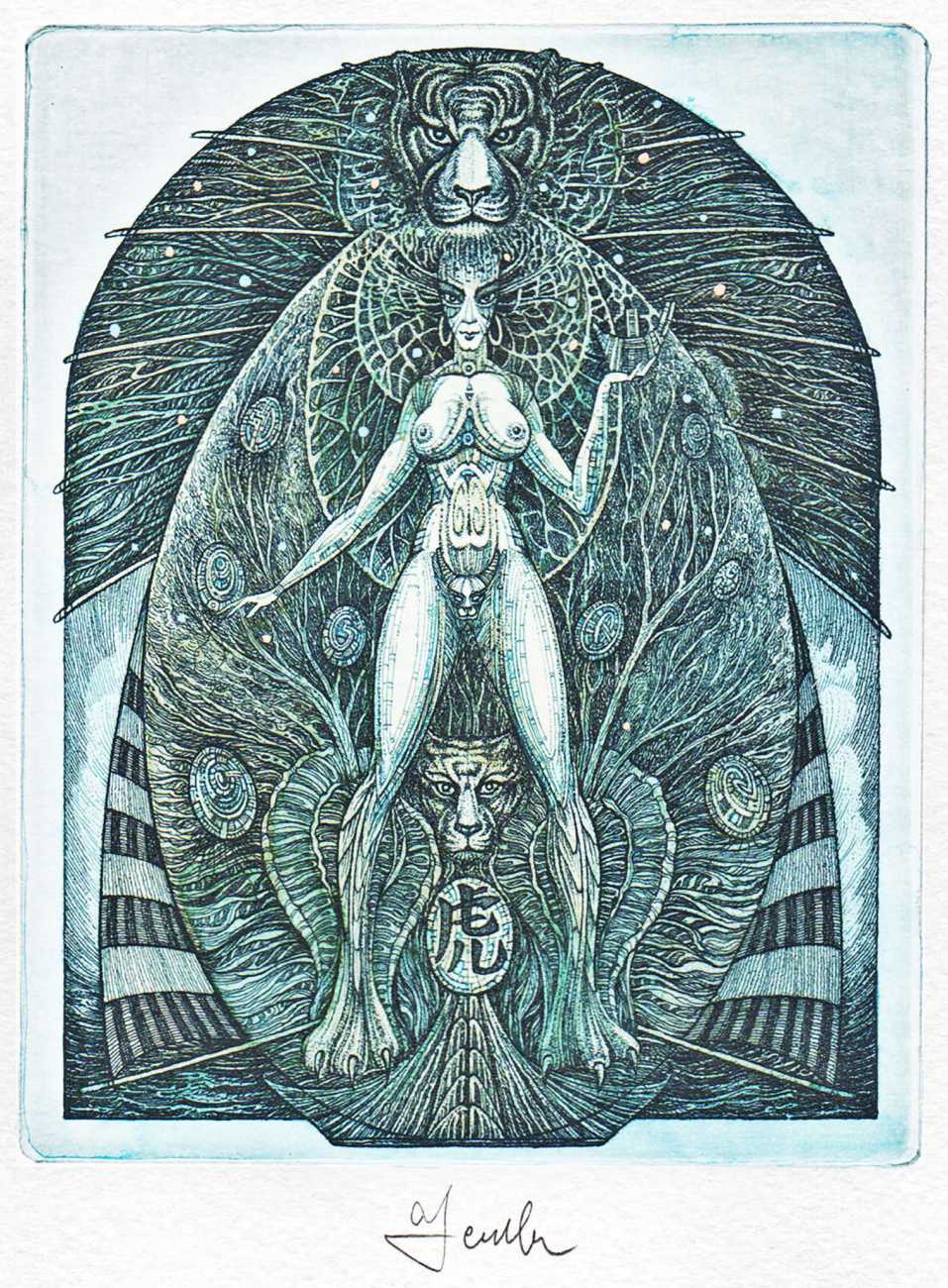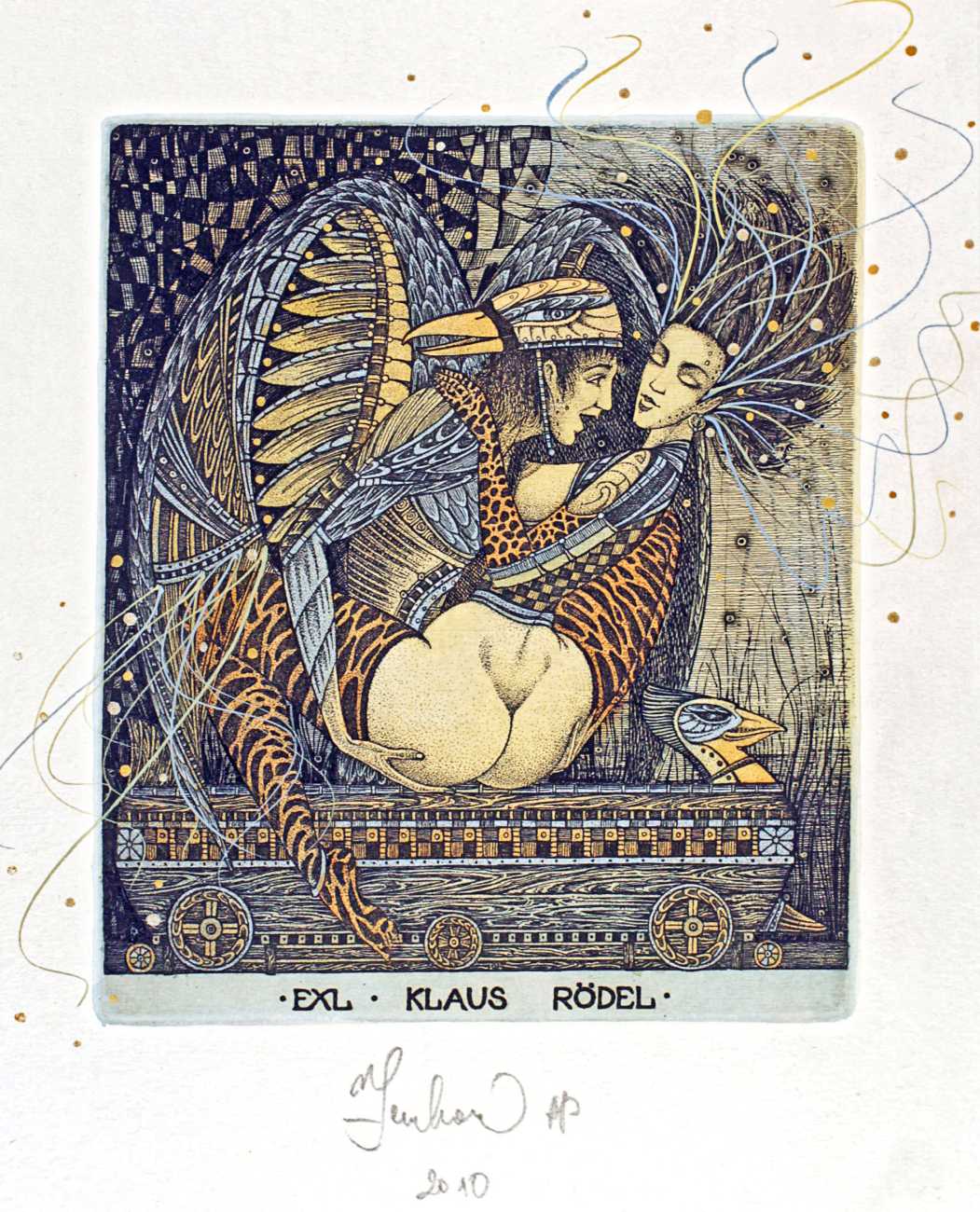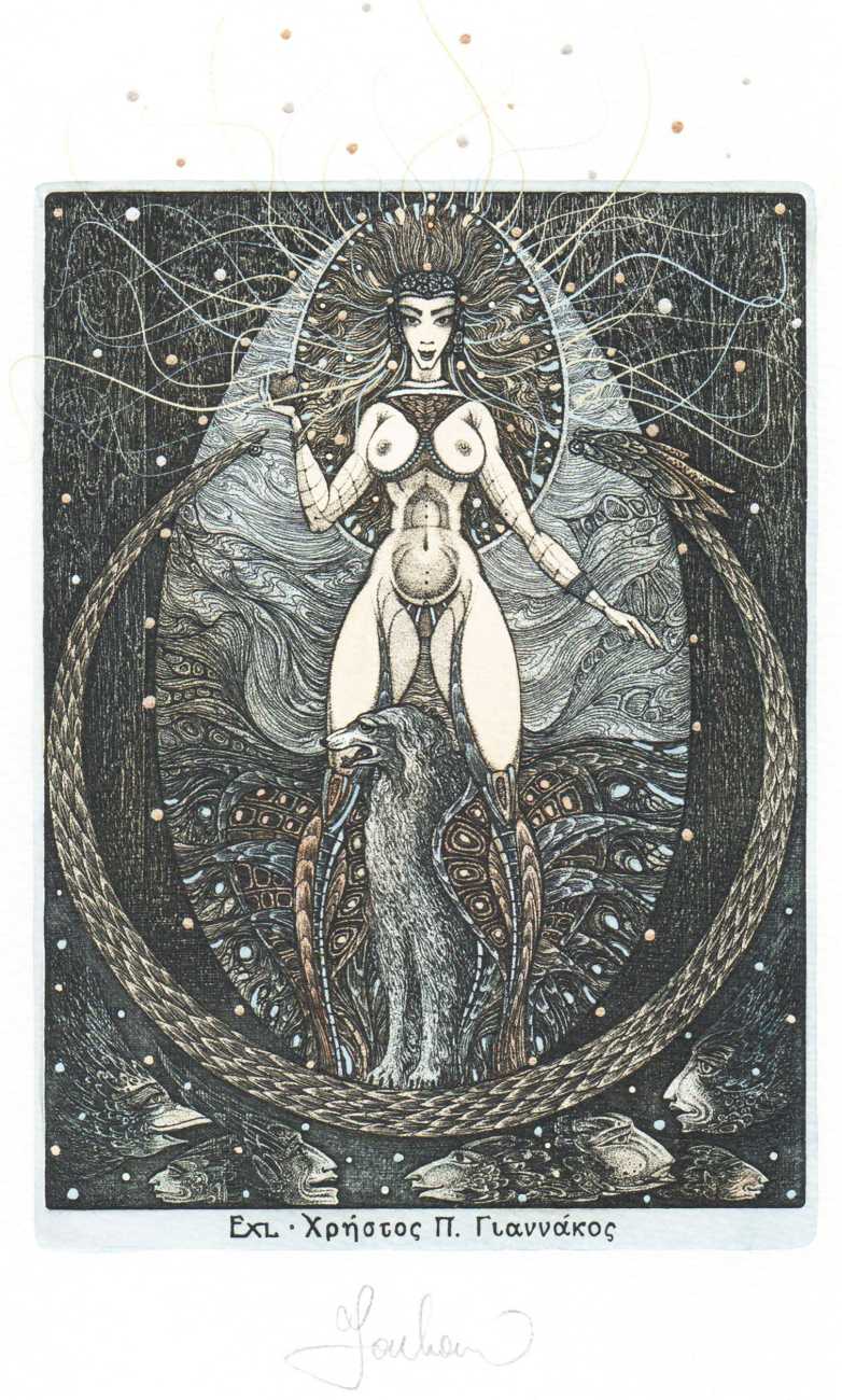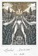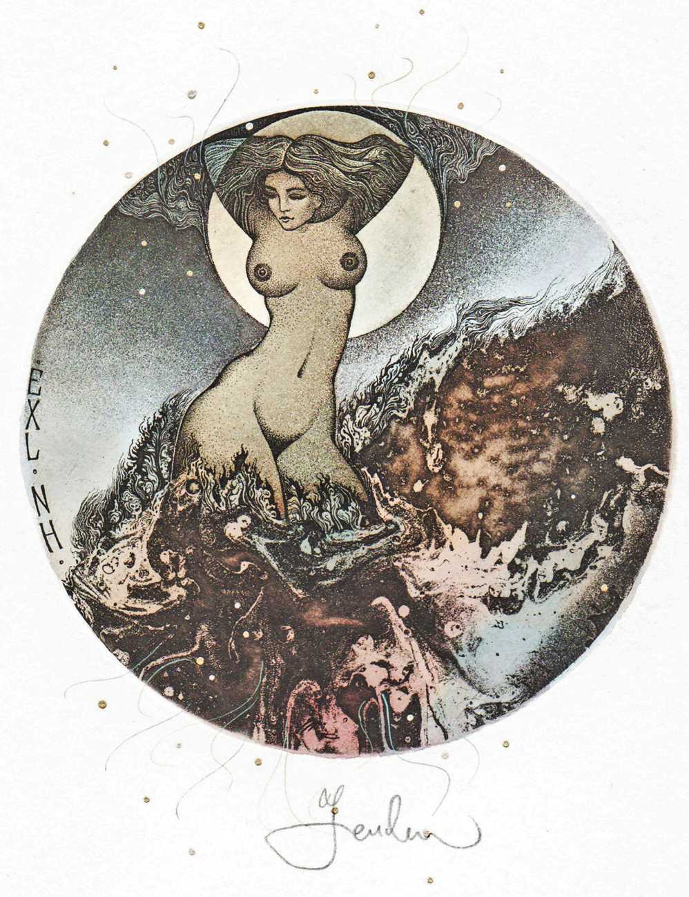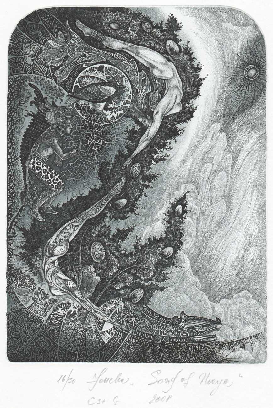 Vasyl Fenchak is widely considered to be one of the best modern engravers in a tradition for which his home country, Ukraine, is notably prominent. His detailed and carefully composed prints draw on a wide range of classical and ancient stories, combining powerful symbolism with rich background textures. Subjects with an erotic dimension – Leda and the Swan, Ariadne, Calypso, The Judgement of Paris, Susanna and the Elders – are among his favourites.
