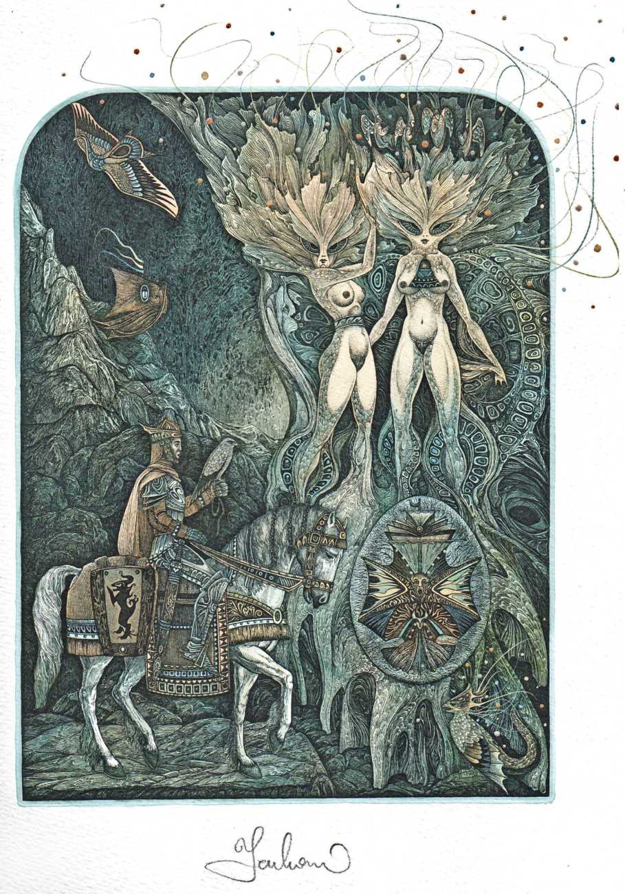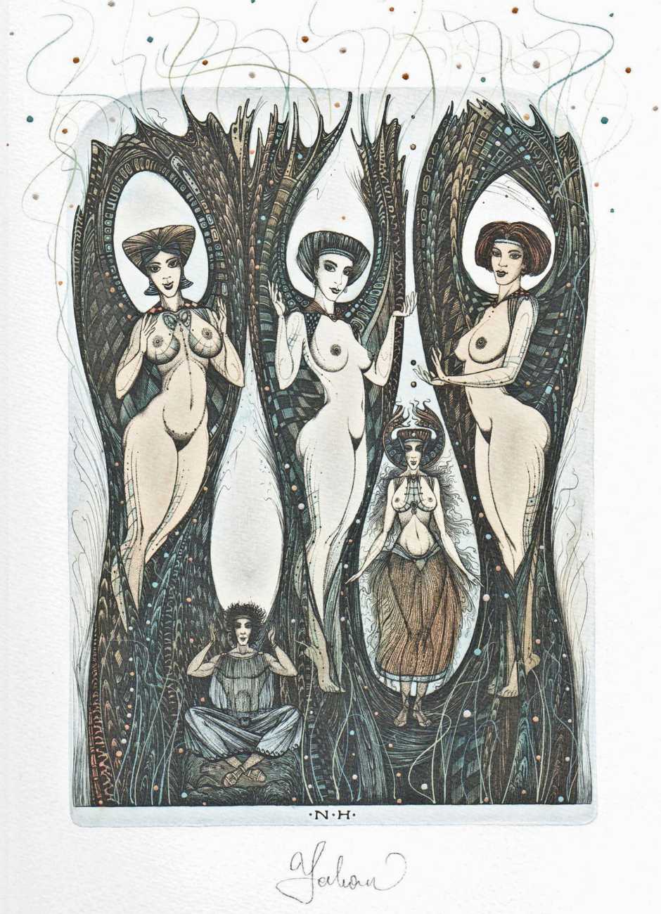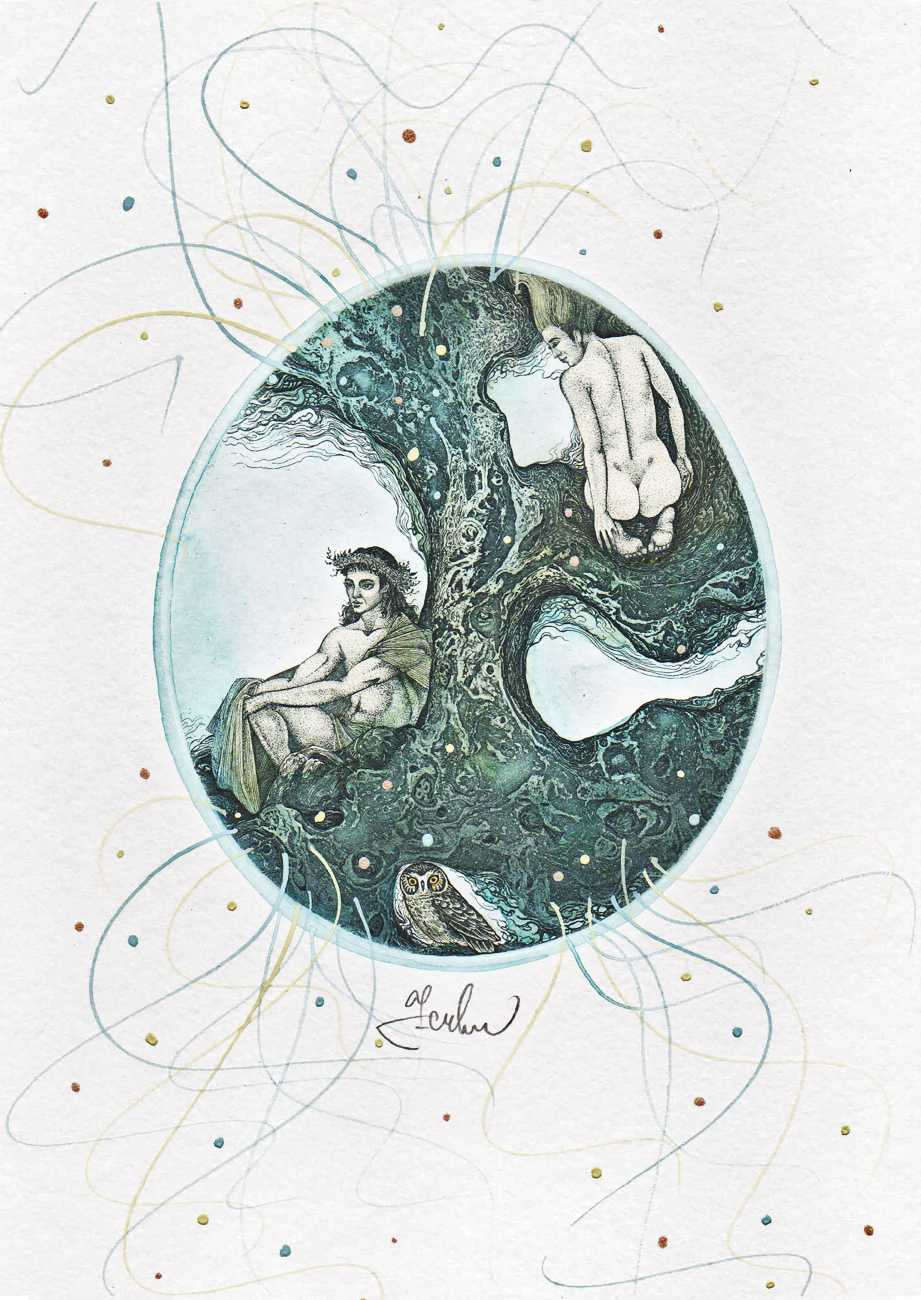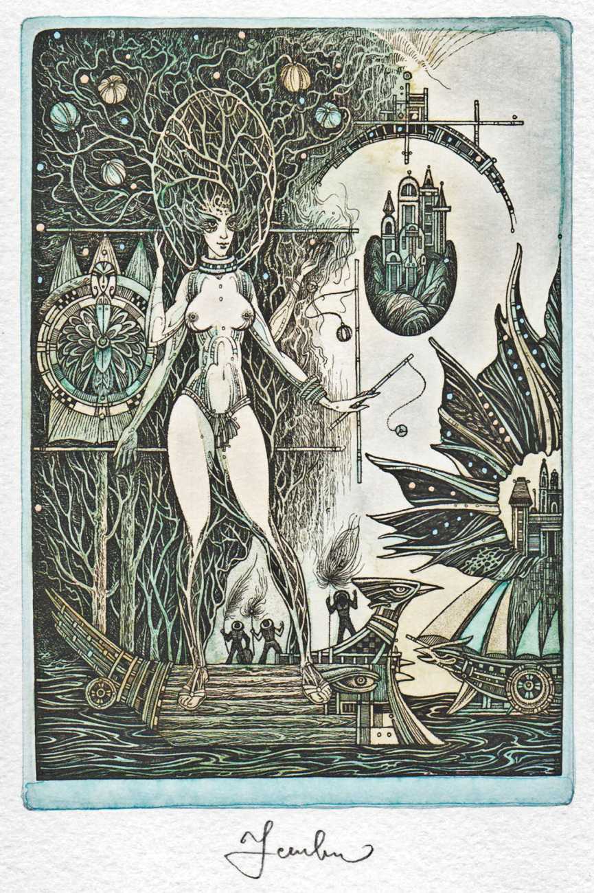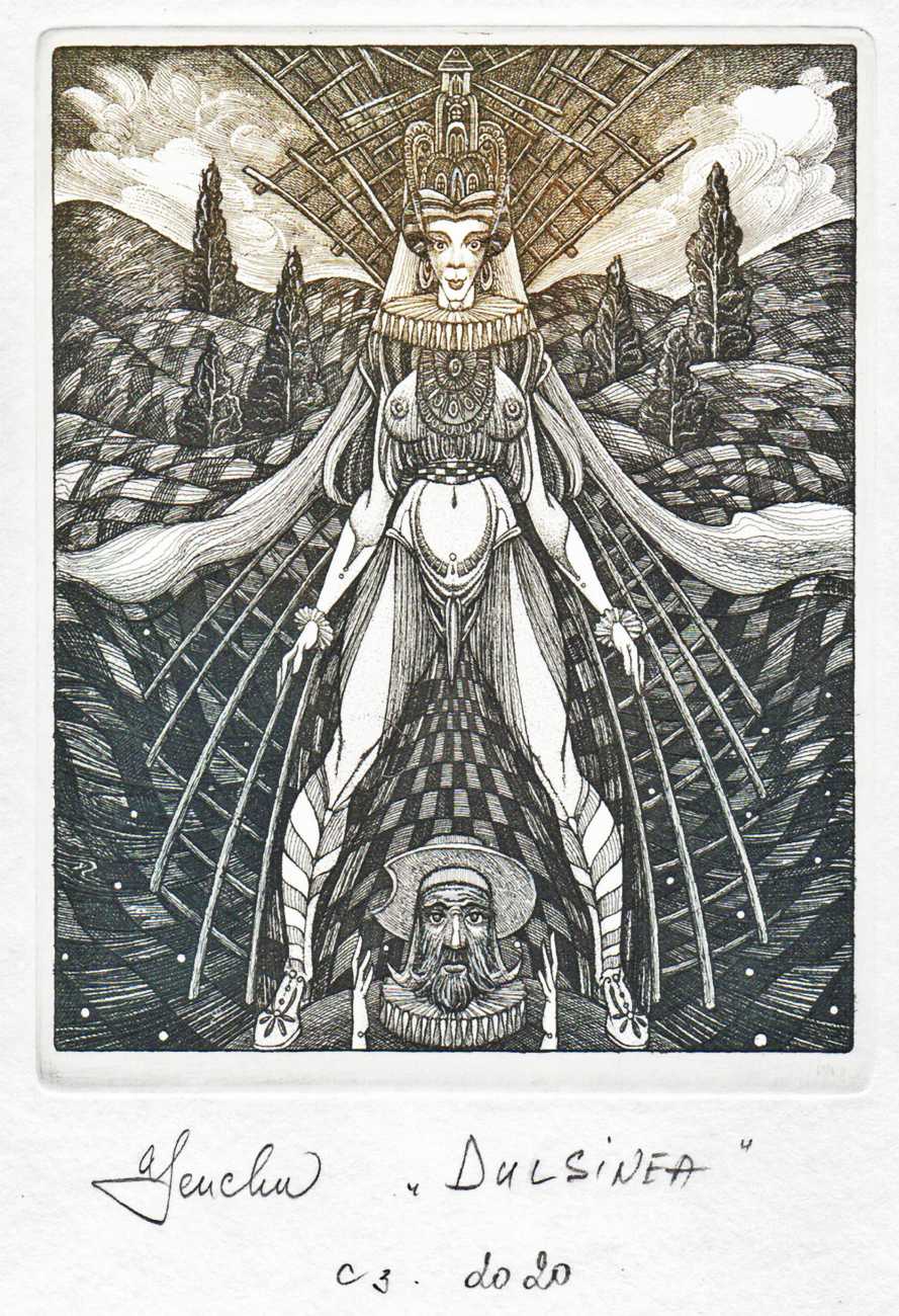 Vasyl Fenchak is widely considered to be one of the best modern engravers in a tradition for which his home country, Ukraine, is notably prominent. His detailed and carefully composed prints draw on a wide range of classical and ancient stories, combining powerful symbolism with rich background textures. Subjects with an erotic dimension – Leda and the Swan, Ariadne, Calypso, The Judgement of Paris, Susanna and the Elders – are among his favourites.