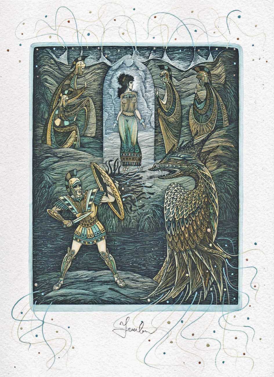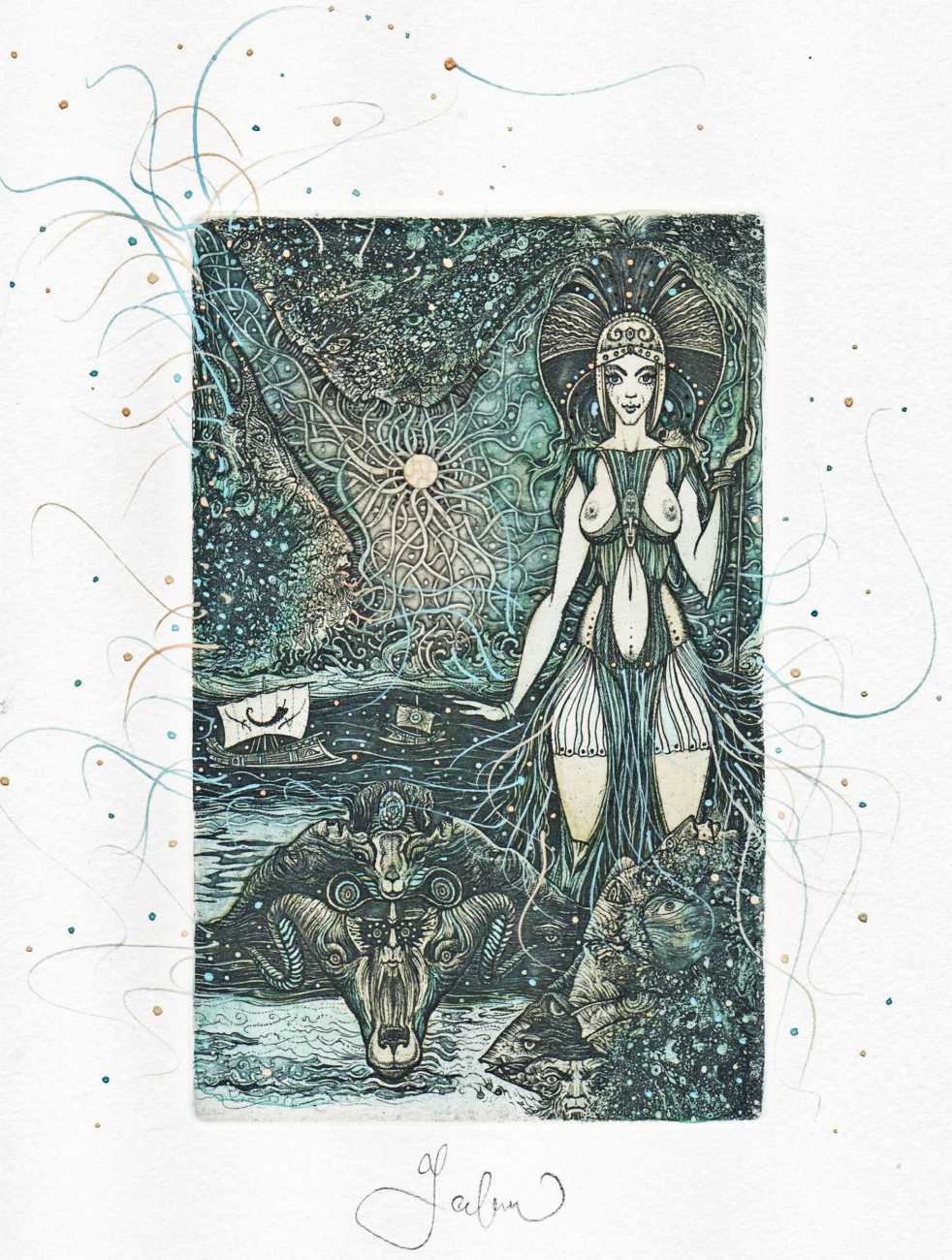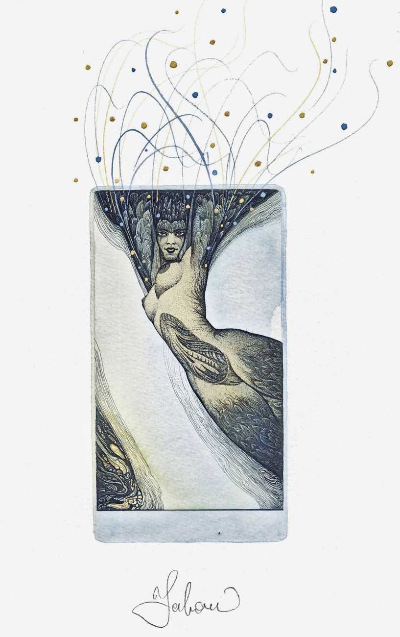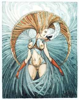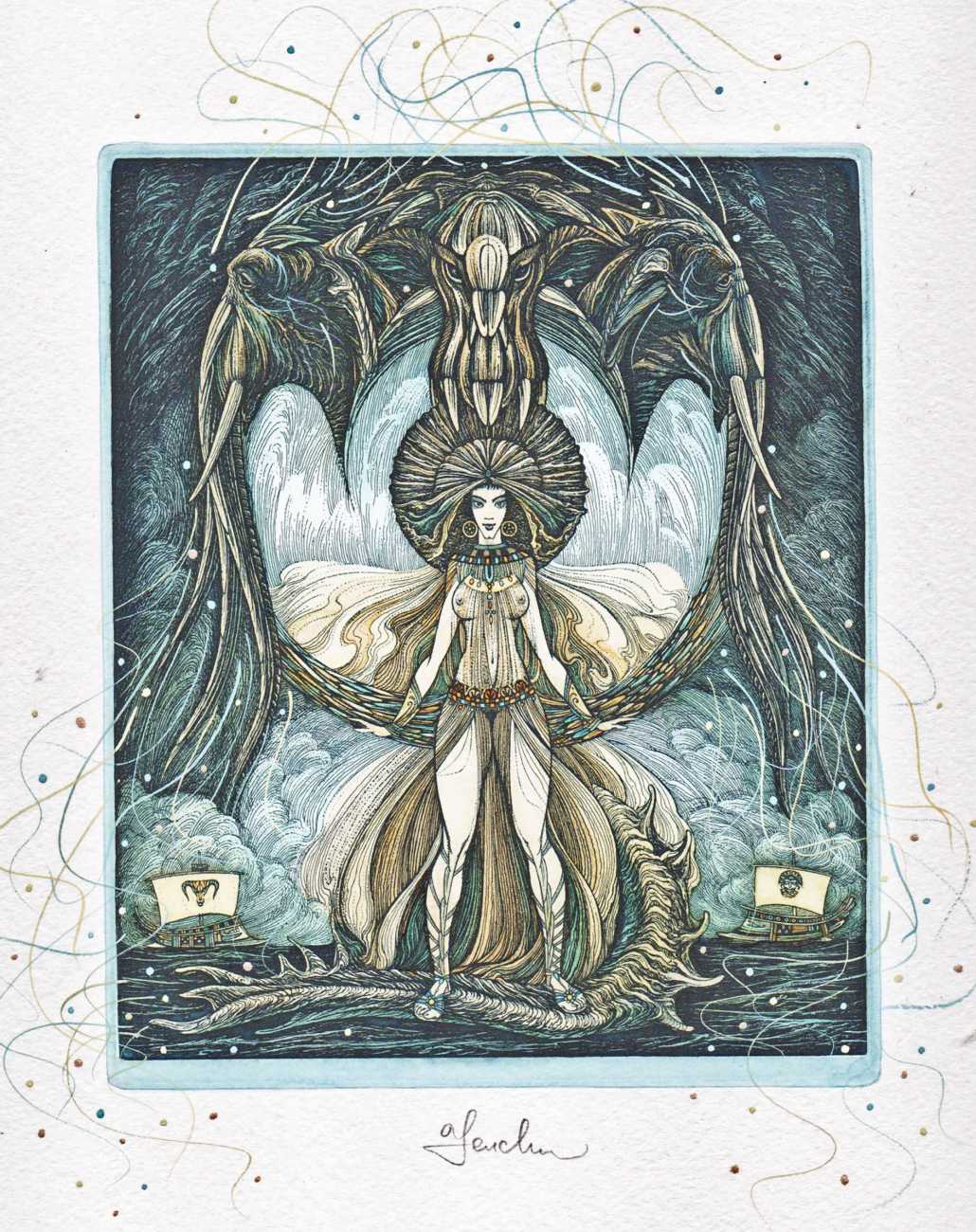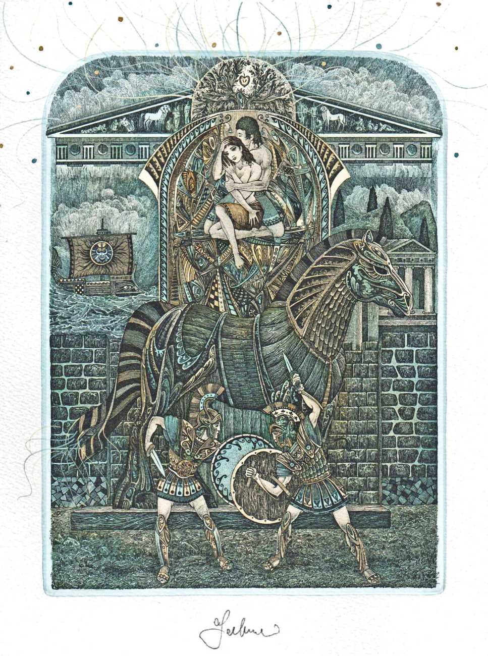Vasyl Fenchak is widely considered to be one of the best modern engravers in a tradition for which his home country, Ukraine, is notably prominent. His detailed and carefully composed prints draw on a wide range of classical and ancient stories, combining powerful symbolism with rich background textures. Subjects with an erotic dimension – Leda and the Swan, Ariadne, Calypso, The Judgement of Paris, Susanna and the Elders – are among his favourites.