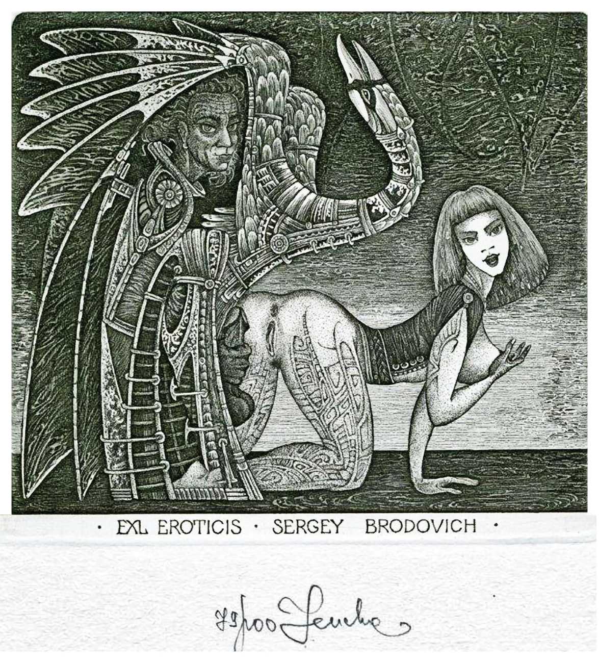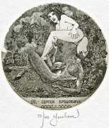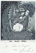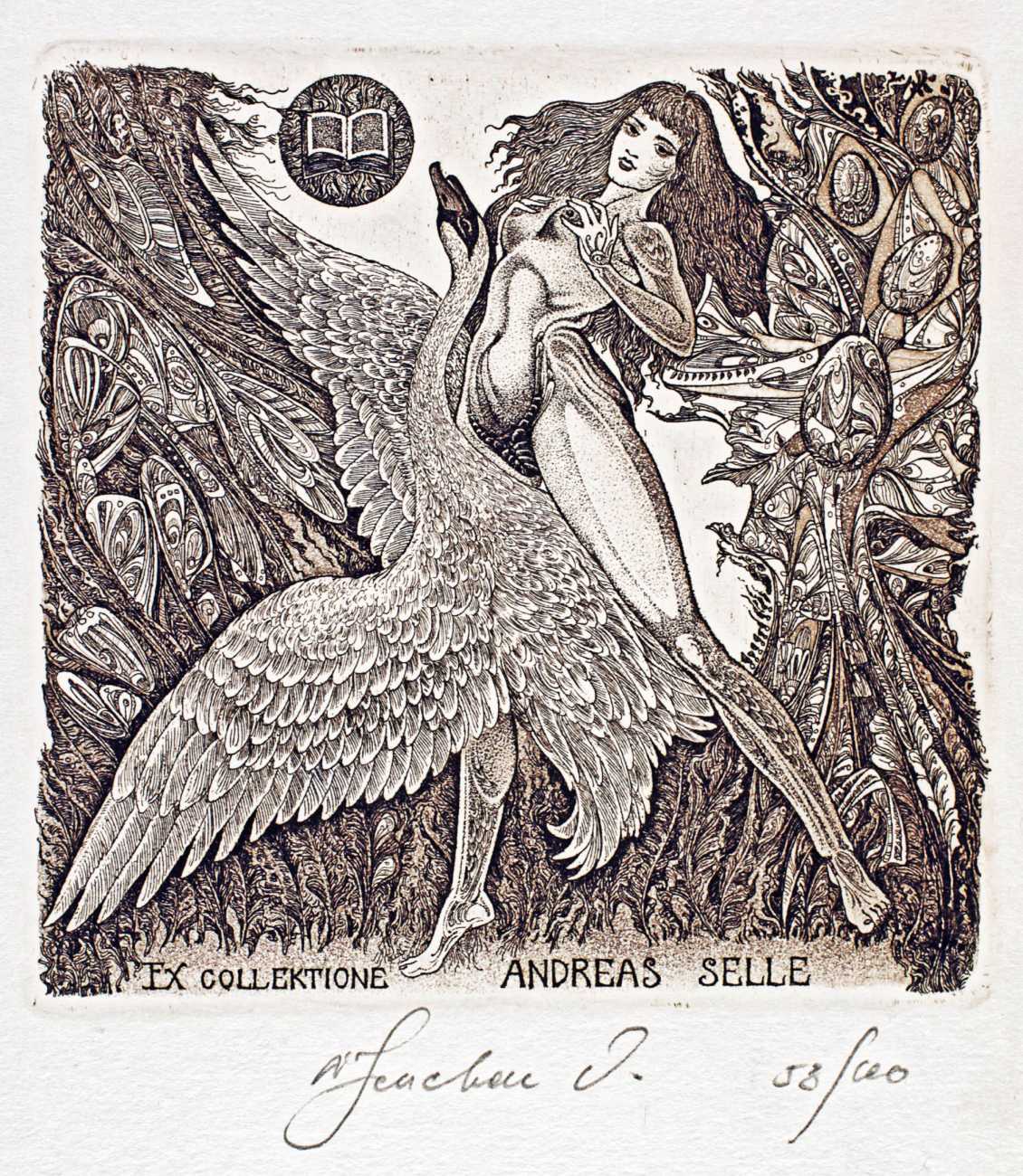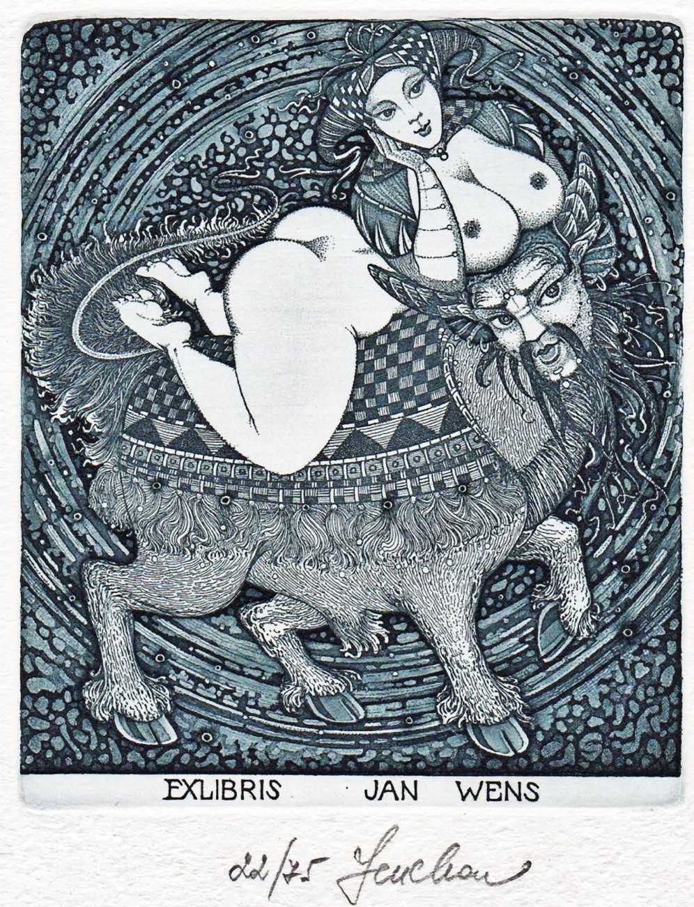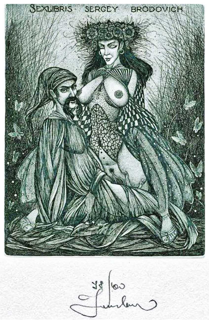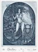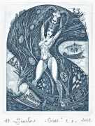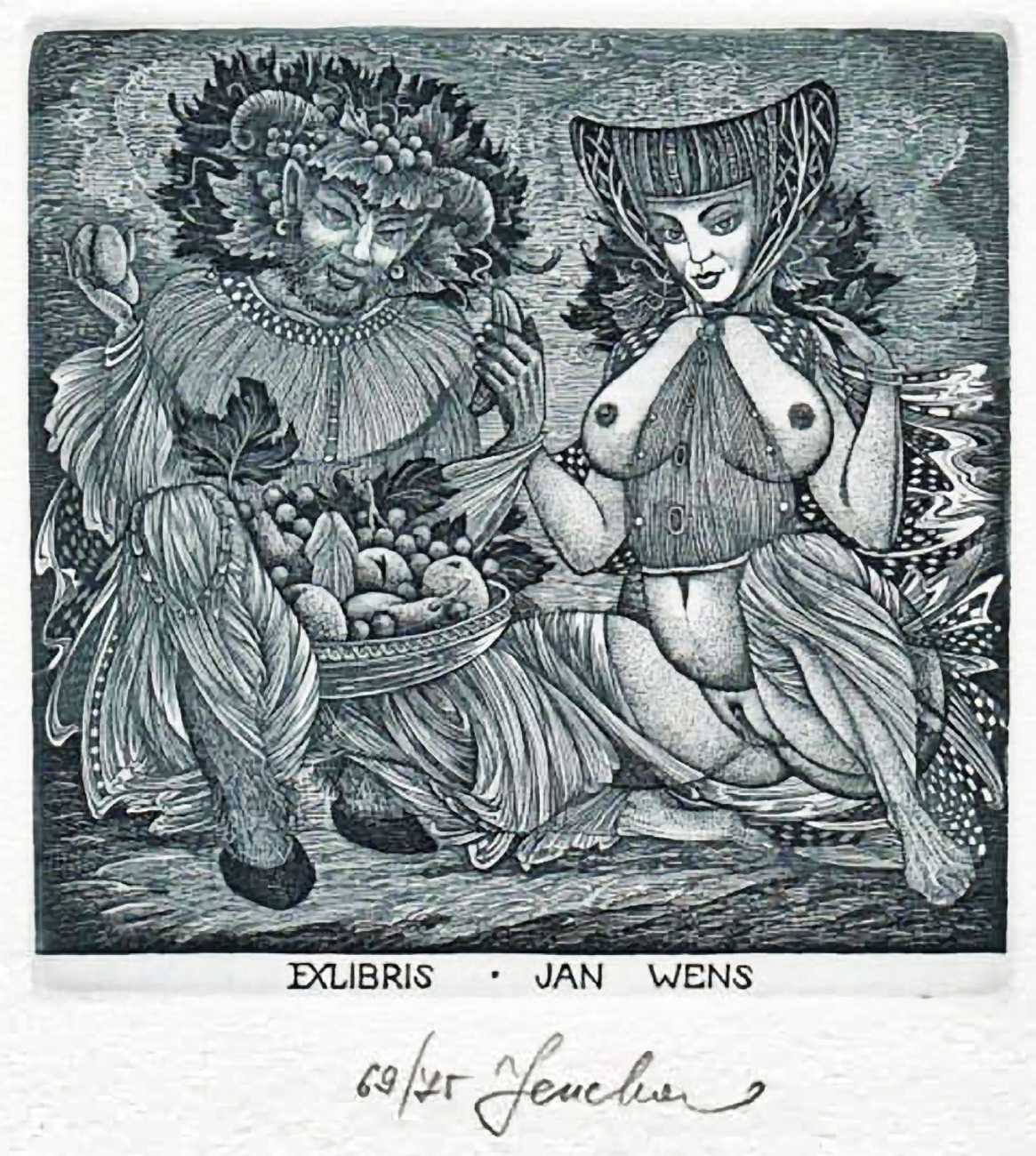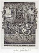 Today ex libris are once again in demand, eagerly sought by specialised collectors, and there are websites, fairs and exhibitions dedicated to the artform. Many plates are now produced as signed and numbered small format fine art prints, known as ‘free’ ex libris, never intended to be glued inside books but instead to be framed and displayed in the library of the client fortunate enough to be able to afford to commission it. In recent years there has been a definite trend towards erotic subjects for bookplates, partly a throwback to the 1920s and 30s and partly to explore the potential of engraving techniques.