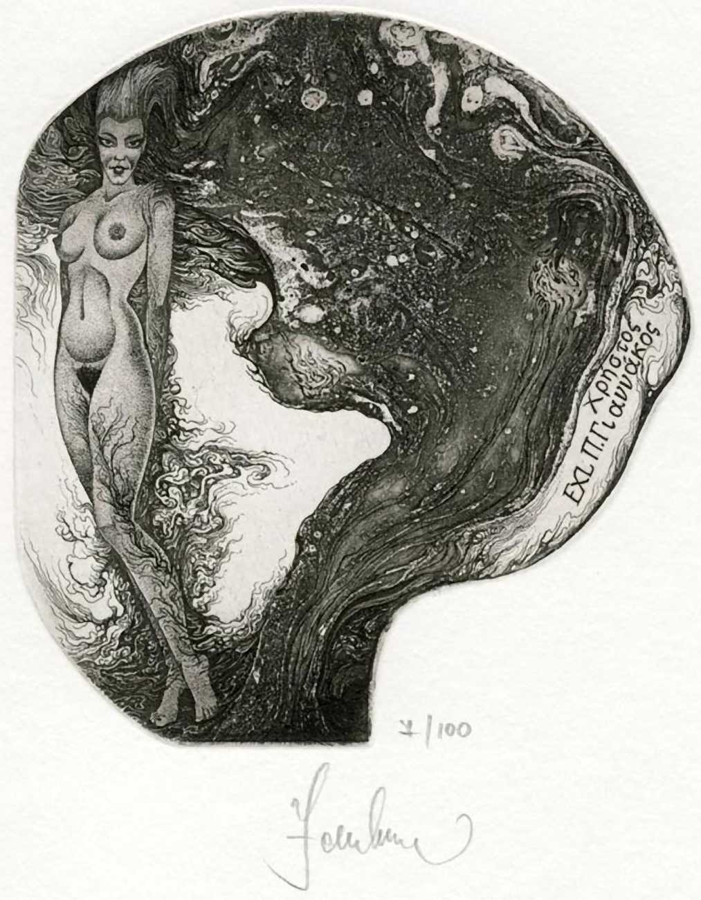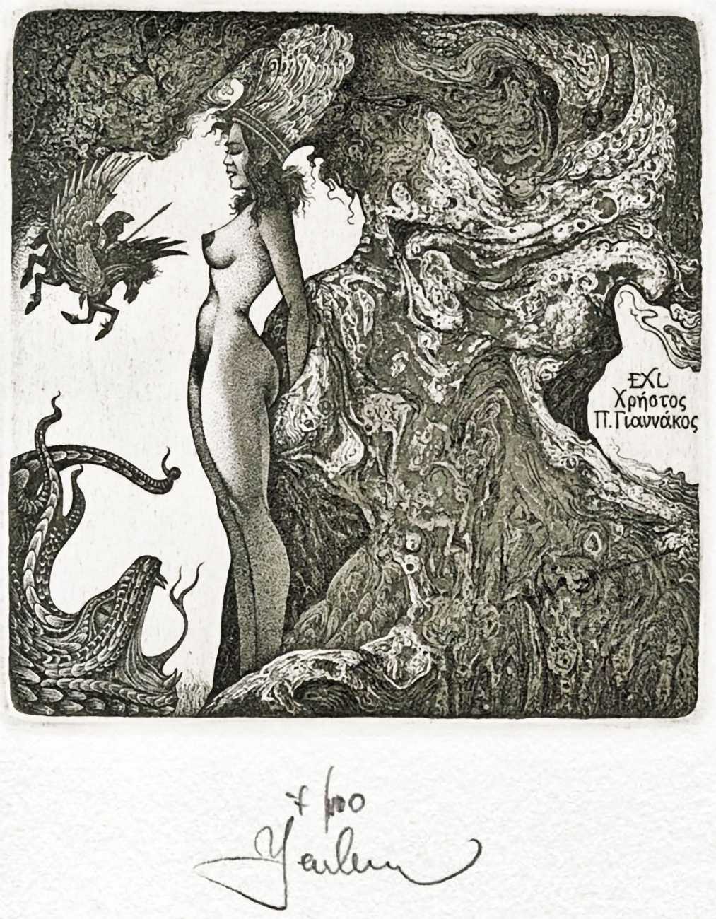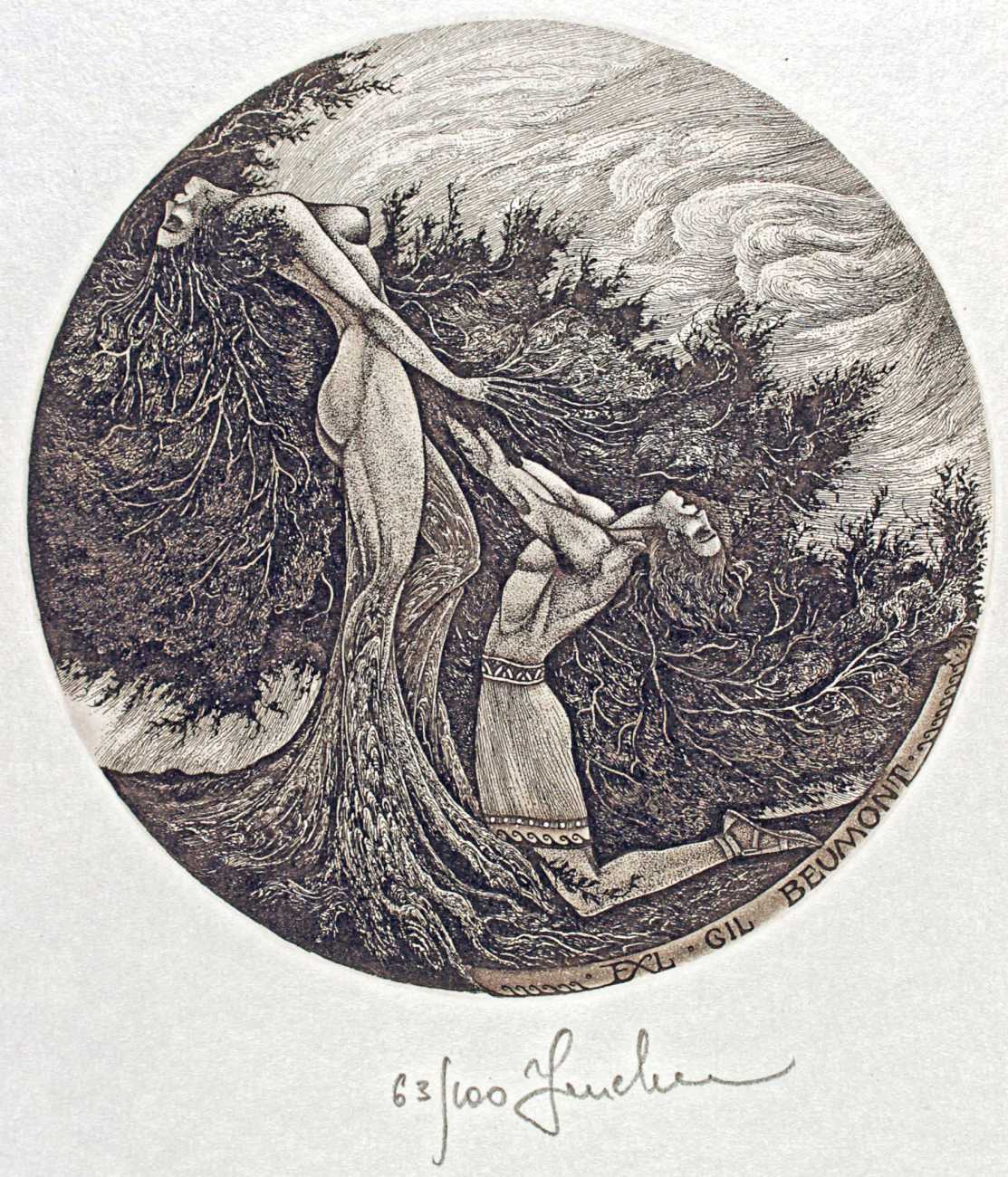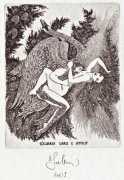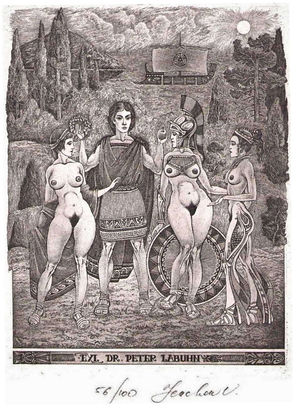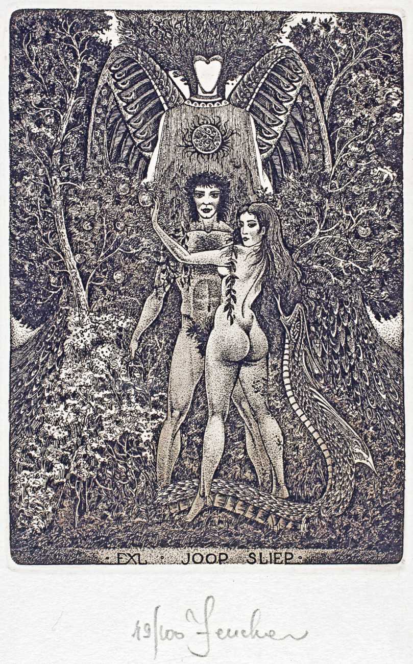 Today ex libris are once again in demand, eagerly sought by specialised collectors, and there are websites, fairs and exhibitions dedicated to the artform. Many plates are now produced as signed and numbered small format fine art prints, known as ‘free’ ex libris, never intended to be glued inside books but instead to be framed and displayed in the library of the client fortunate enough to be able to afford to commission it. In recent years there has been a definite trend towards erotic subjects for bookplates, partly a throwback to the 1920s and 30s and partly to explore the potential of engraving techniques.