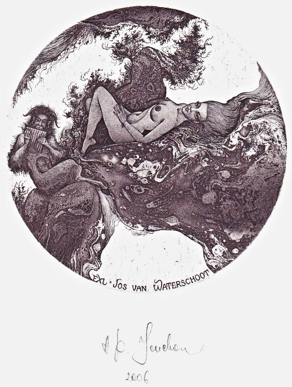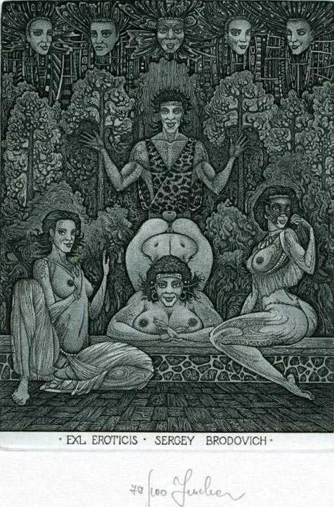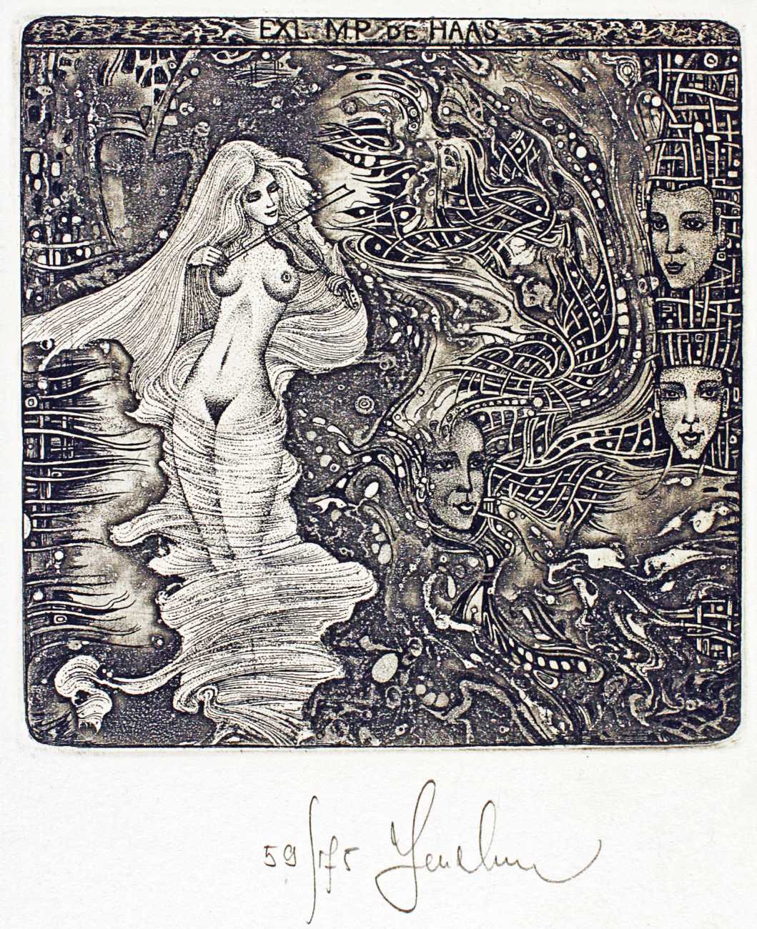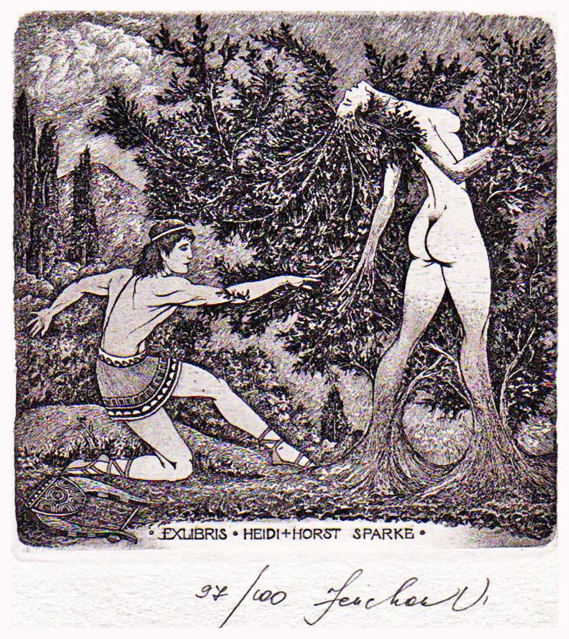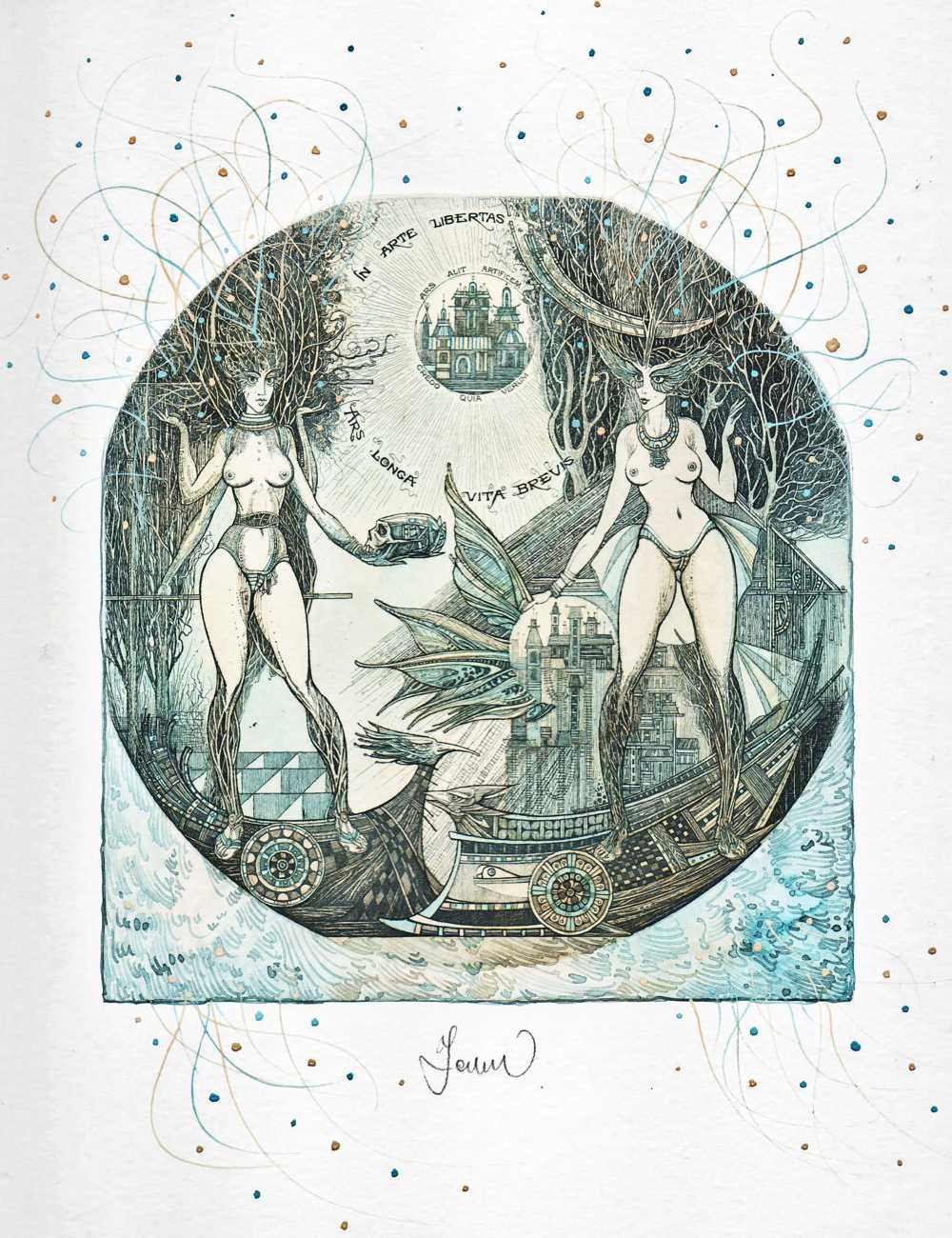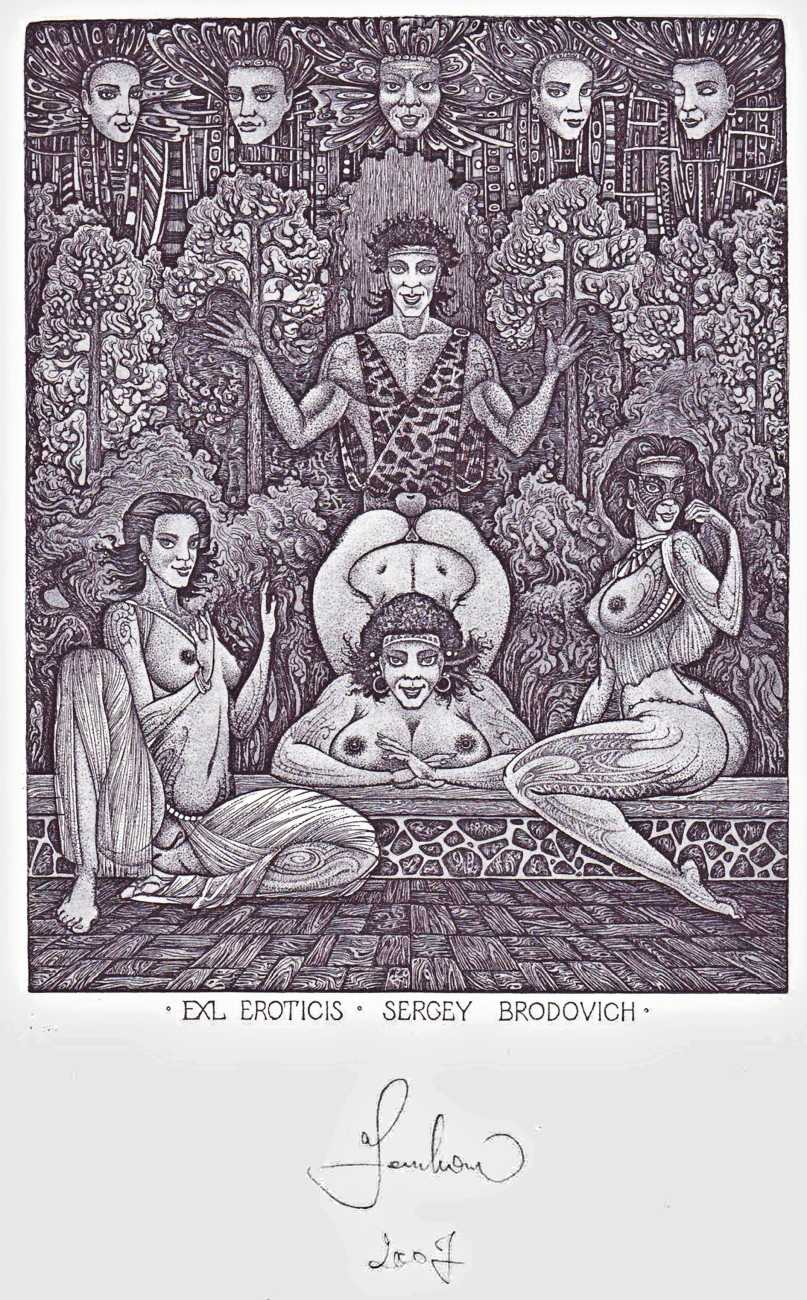 Today ex libris are once again in demand, eagerly sought by specialised collectors, and there are websites, fairs and exhibitions dedicated to the artform. Many plates are now produced as signed and numbered small format fine art prints, known as ‘free’ ex libris, never intended to be glued inside books but instead to be framed and displayed in the library of the client fortunate enough to be able to afford to commission it. In recent years there has been a definite trend towards erotic subjects for bookplates, partly a throwback to the 1920s and 30s and partly to explore the potential of engraving techniques.