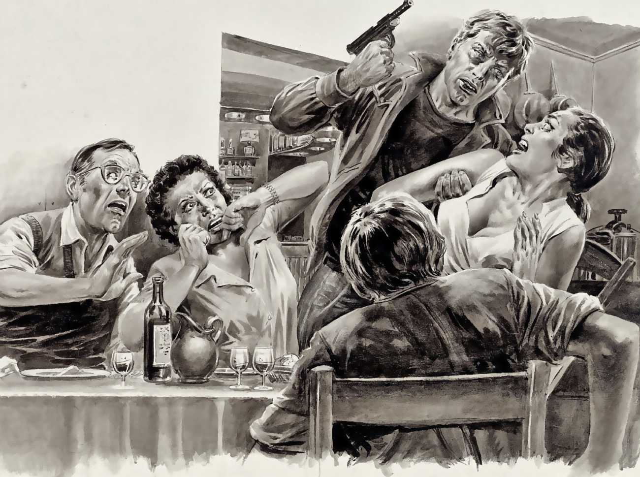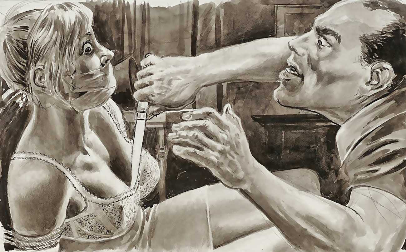 I always try to illustrate the suspense, the instant of shooting, robbing or stabbing. The intensity of the victim’s feelings, posture and expression is much stronger than the pain itself. In my drawings the victim knows exactly what’s happening to them, and that’s what’s so horrible. And it’s also much more interesting when I’m drawing the attacker, to show the way they have been taken over by their rage.