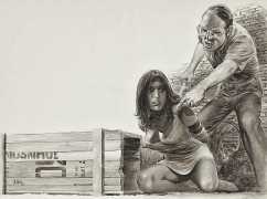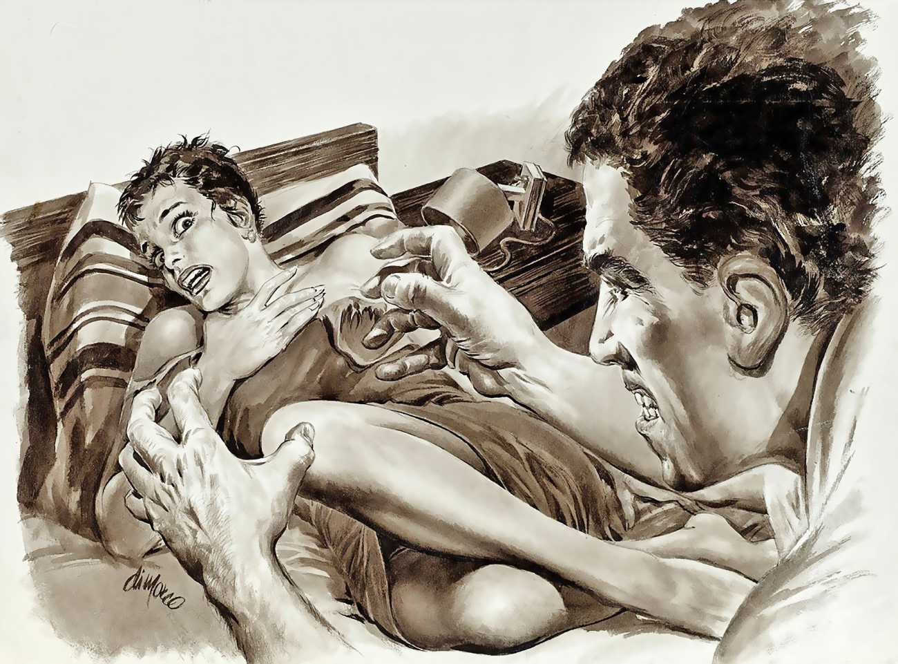 Angelo di Marco is best known for taking bizarre and extreme human-interest stories and creating images of them as horrific masterpieces of draftsmanship. For nearly five decades his drawings appeared in pretty much every French newspaper, as well as on billboards and in countless magazines, illustrating accidents, murders, muggings and shootings, often with a sexual element.