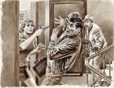 It depends. If I think the victim is the interesting person, I place myself in an angle that faces him or her. For example, if the person is attacked from behind and strangled, then I draw the face of the victim. And if we don’t know the killer’s face yet, then I draw it at an angle so we can see his hands on the victim’s neck. I recently drew something like that. It was a woman who won the lottery. She had been divorced just before winning a fortune, and then she’d been killed, strangled from behind. I drew a bit of the guy’s face, one of his eyes and his forehead. The cops had actually suspected the ex-husband for a while, but they didn’t have any proof so they let him go.