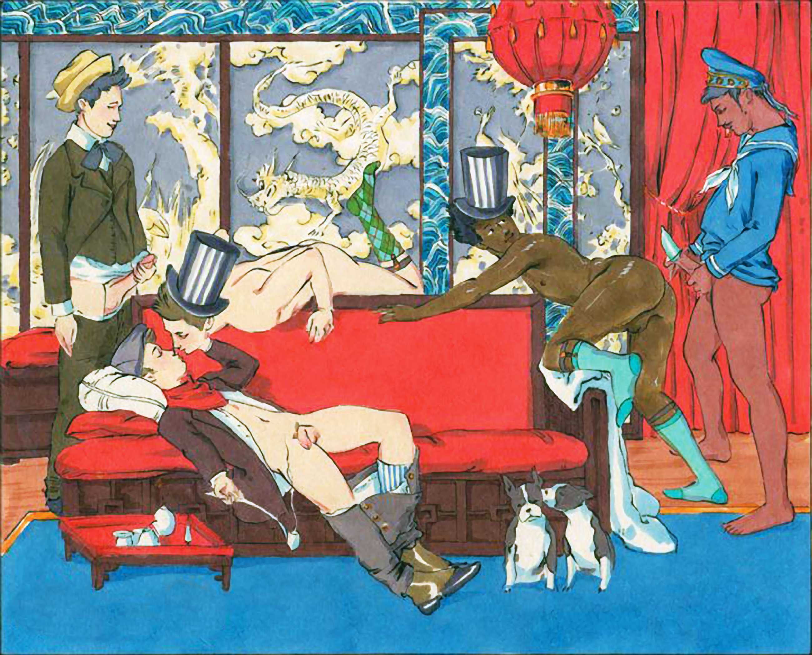 Possibly more than any other aspect of Félix d’Eon’s prodigious output, it is his talent and ability to produce artwork in any and every period style that is the most impressive feature. Whether eighteenth century gallantry, Victorian flamboyance, Edwardian intricacy or mid-century schoolbook illustration, Félix can produce illustrations with every feature of the original style but with his own unique queer twist.