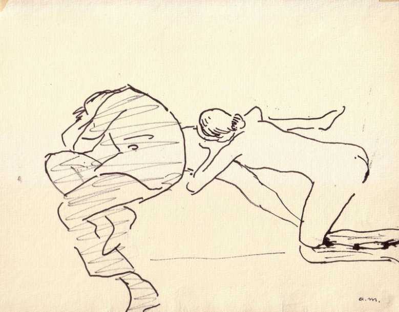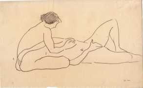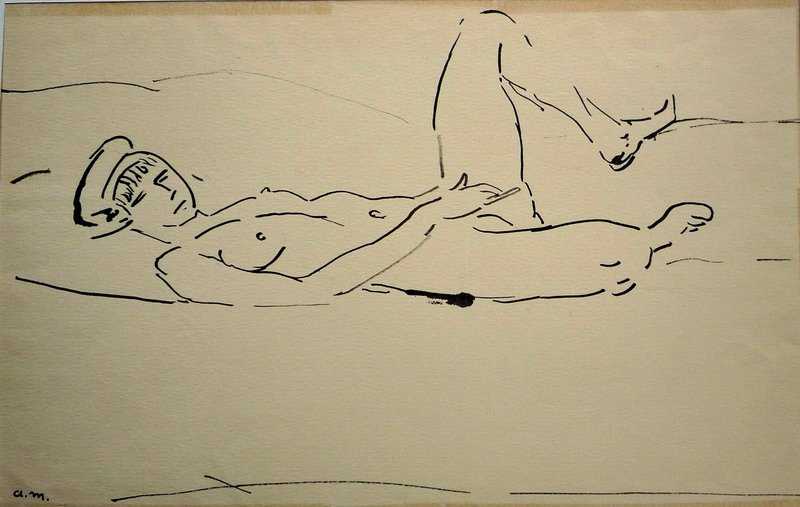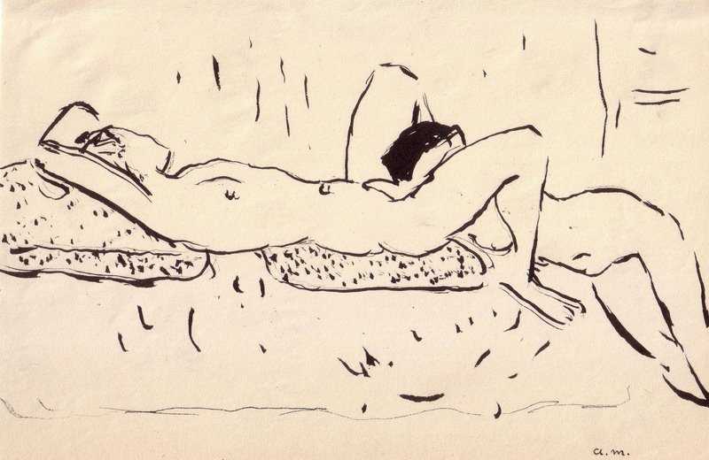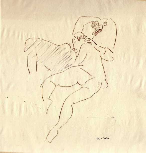 The drawings in this portfolio were all included in the auction sale of Albert Marquet’s work held in Paris in 2010. They display a wonderful freedom of expression, bodies represented by a few telling lines and the minimum of background, and must surely emanate from the sense of openness and liberation that Albert experienced during his early years with his intelligent, attractive young wife Marcelle.
