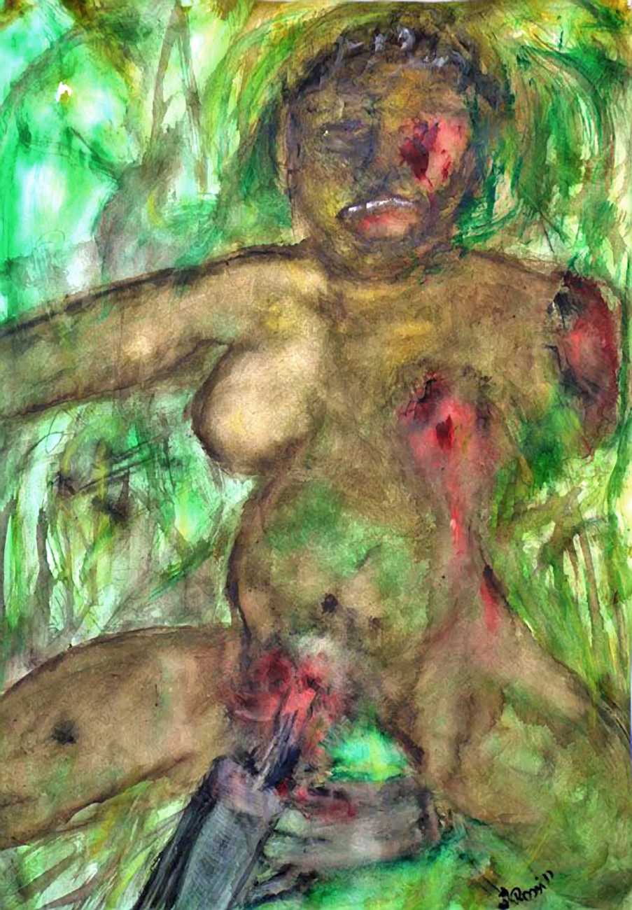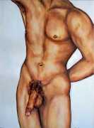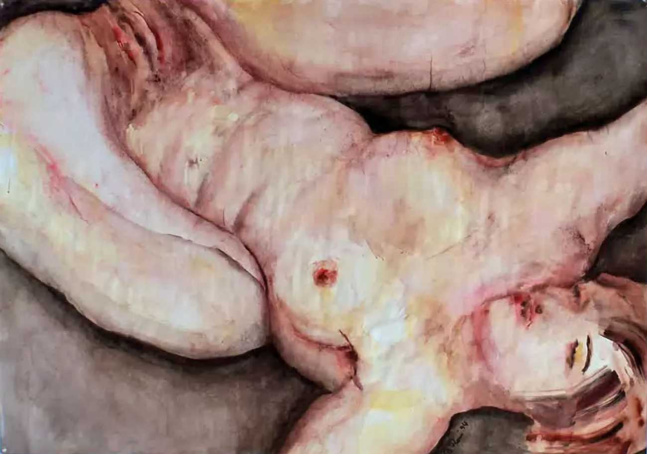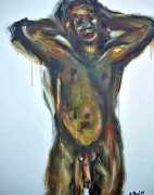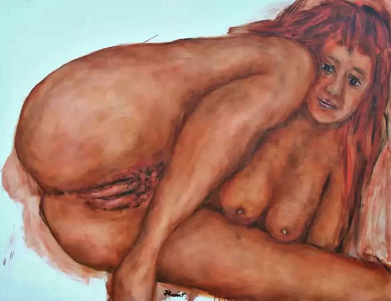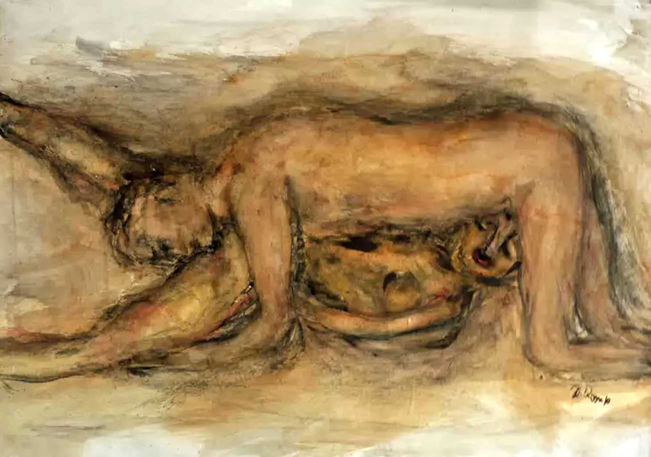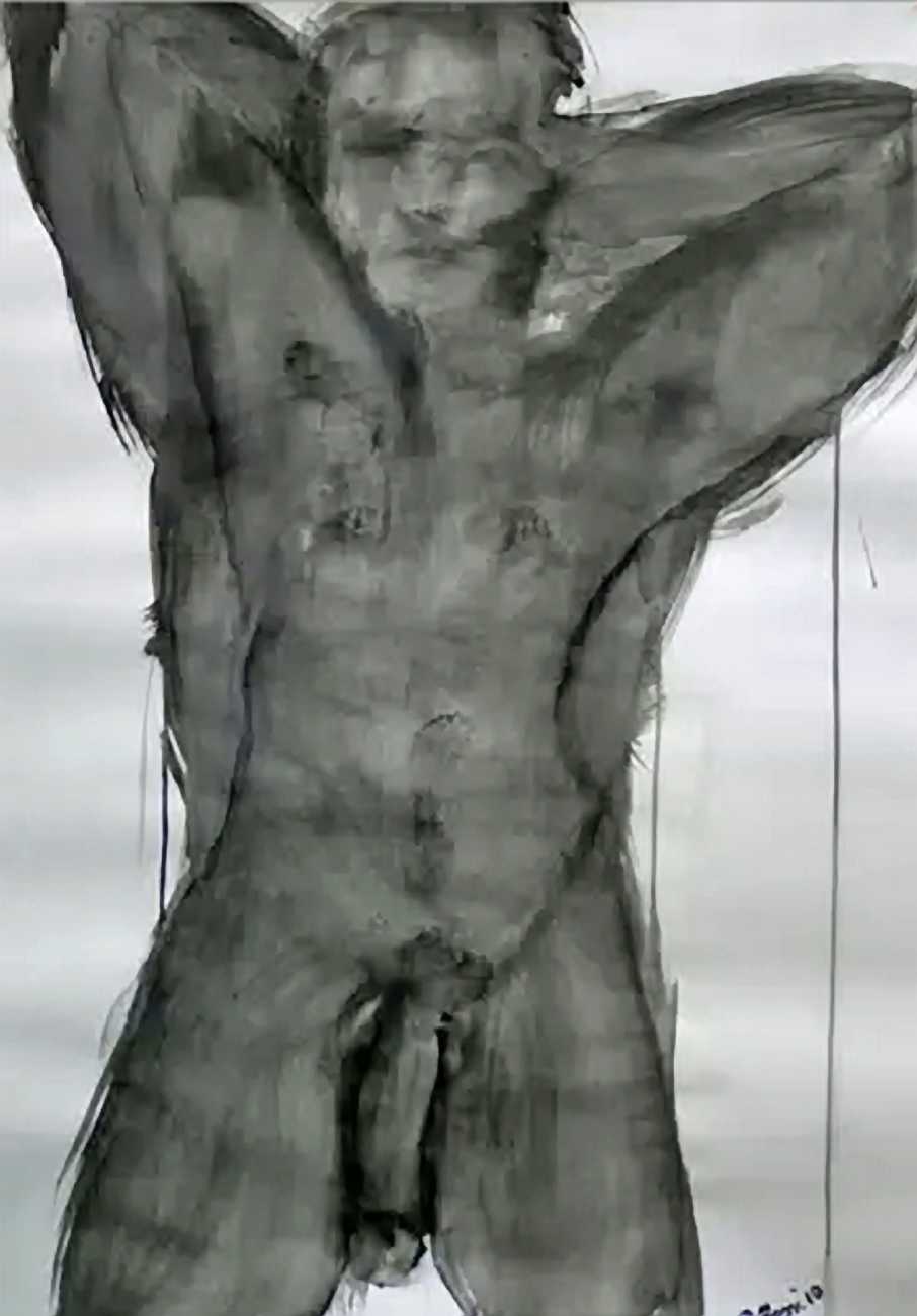 Possibly half of Rossi’s paintings are of naked human bodies, portrayed boldly, colourfully, and often displaying their sex for all to see. He explores the whole gamut of raw human experience, from warmth and pleasure to bondage and humiliation. Human sexuality for Rossi cannot be separated from our animal physicality; it has little to do with conventional beauty, but his very directness offers a certain quality of corporeal reality – tender, exposed, complex, chaotic – with which anyone who has experienced true sexual passion can identify.