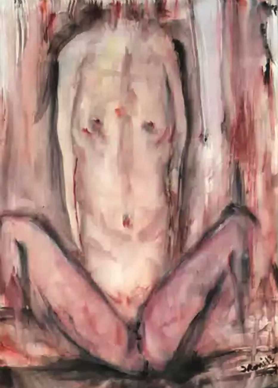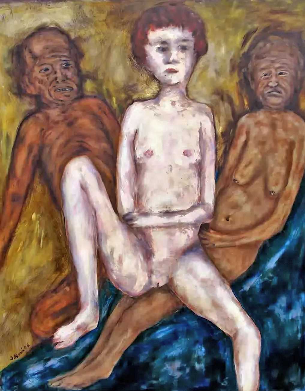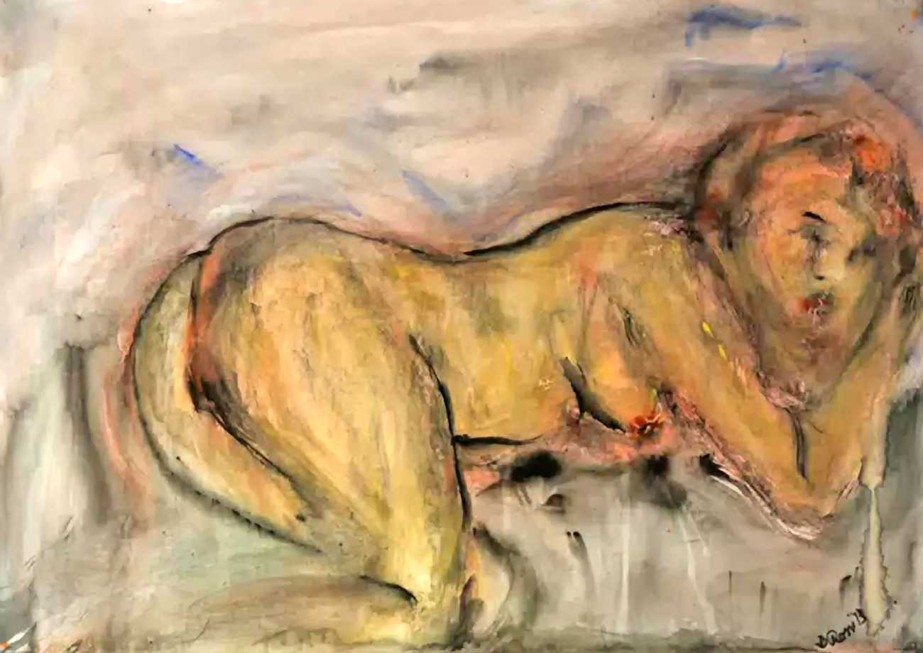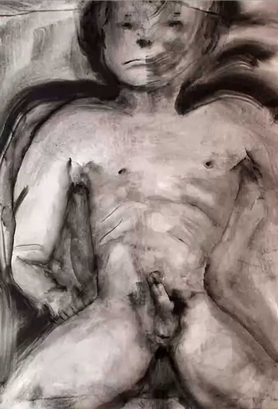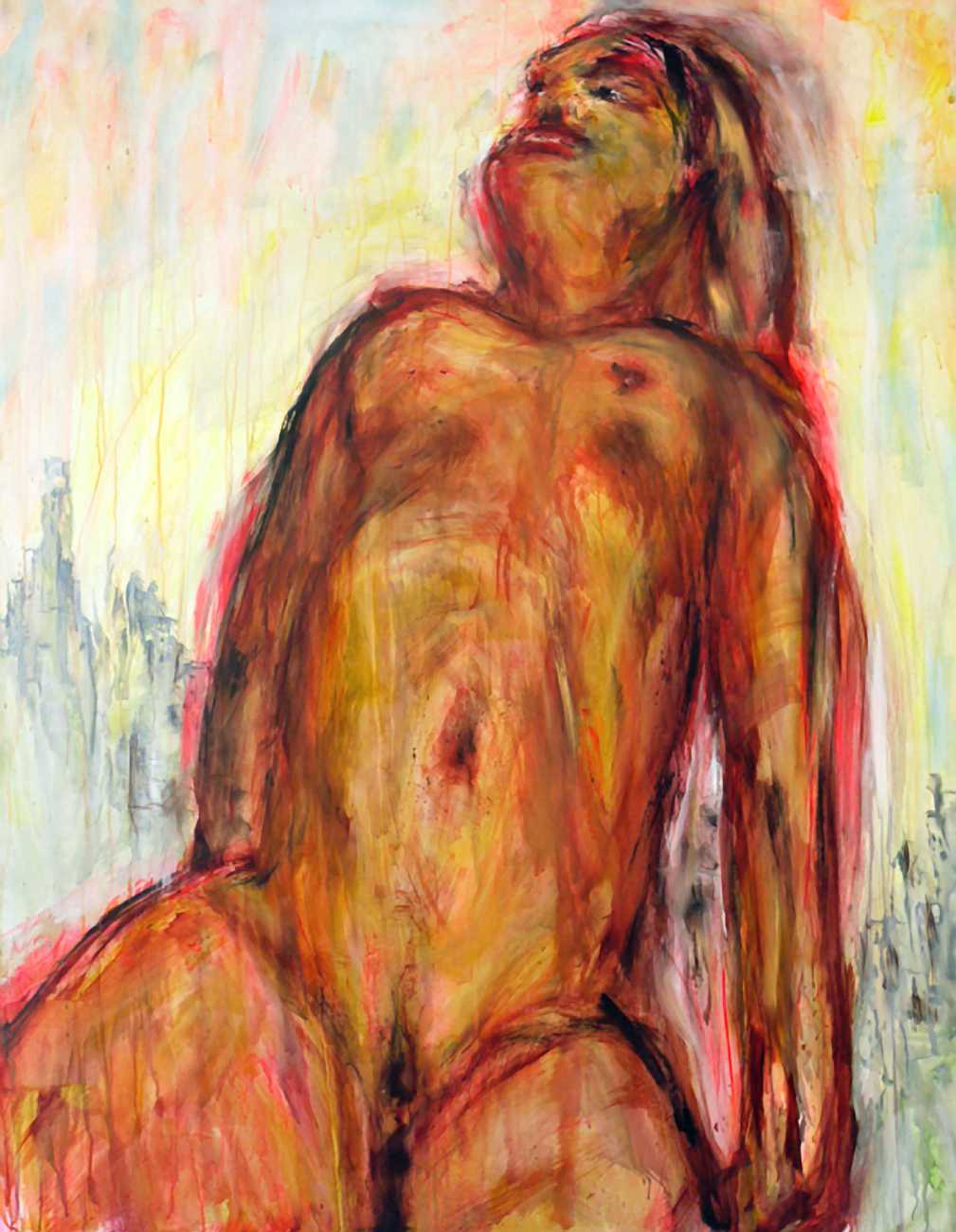 Possibly half of Rossi’s paintings are of naked human bodies, portrayed boldly, colourfully, and often displaying their sex for all to see. He explores the whole gamut of raw human experience, from warmth and pleasure to bondage and humiliation. Human sexuality for Rossi cannot be separated from our animal physicality; it has little to do with conventional beauty, but his very directness offers a certain quality of corporeal reality – tender, exposed, complex, chaotic – with which anyone who has experienced true sexual passion can identify.