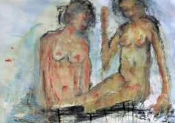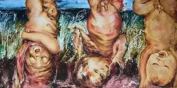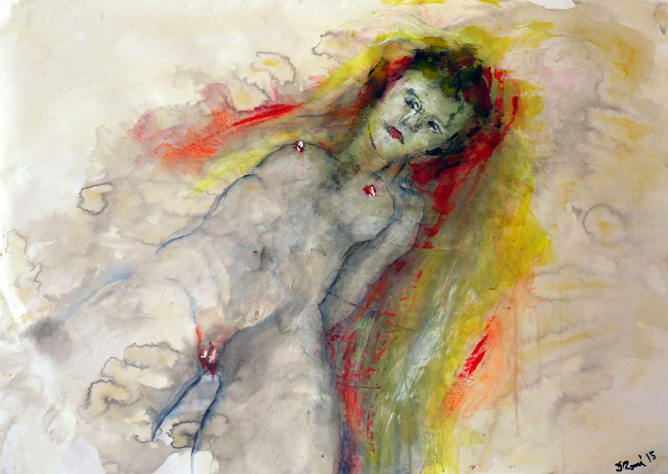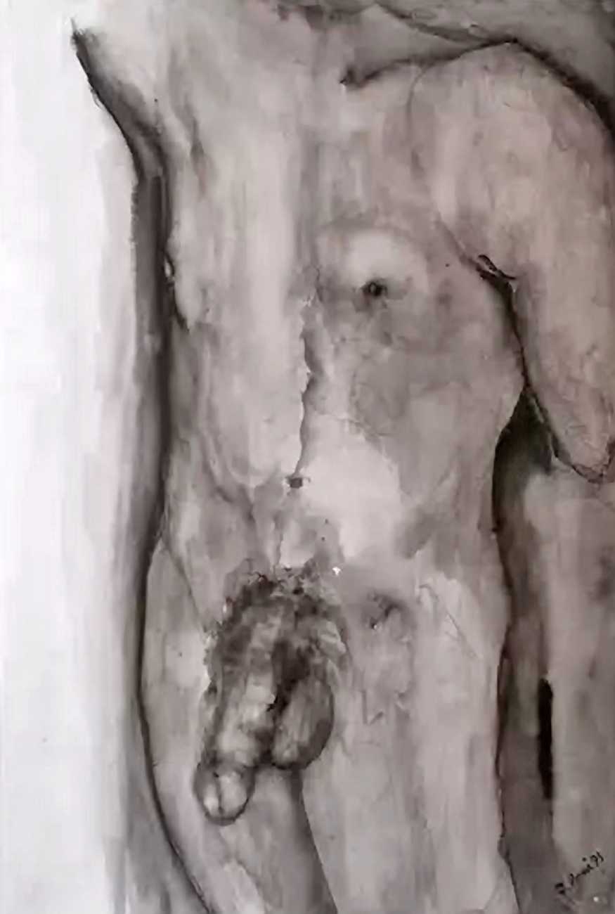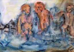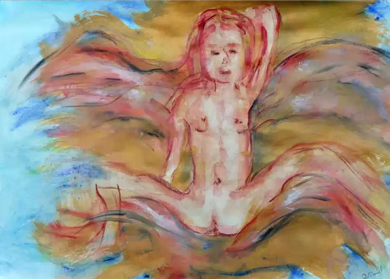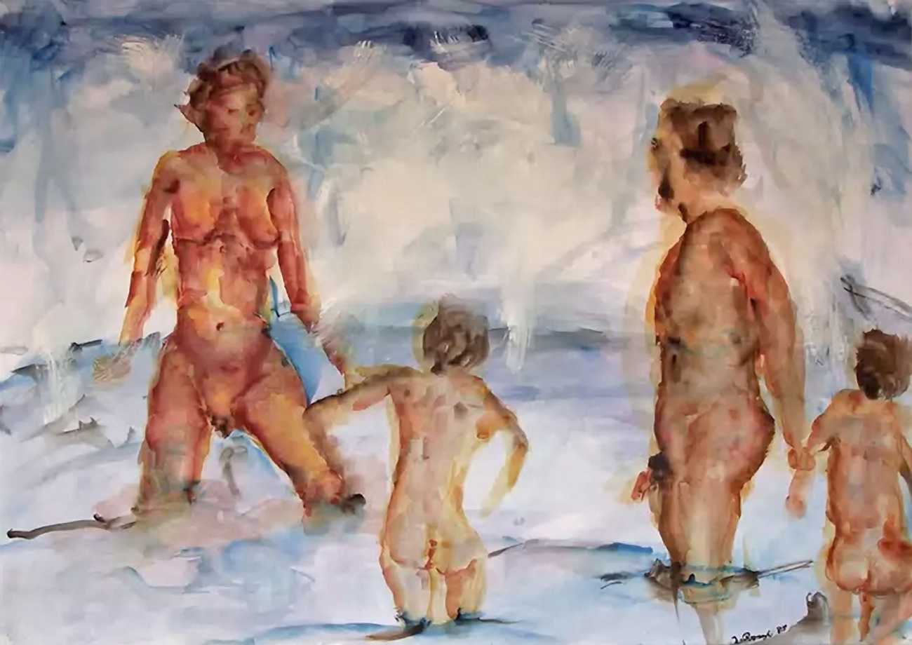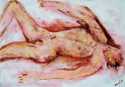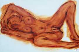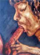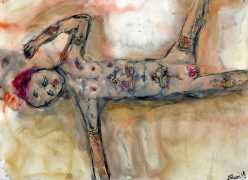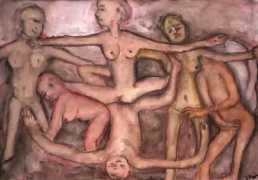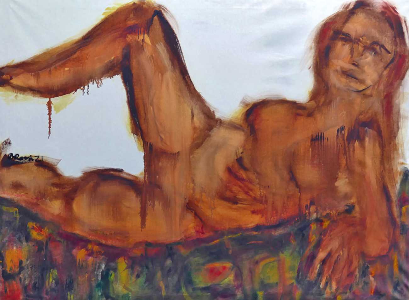 Possibly half of Rossi’s paintings are of naked human bodies, portrayed boldly, colourfully, and often displaying their sex for all to see. He explores the whole gamut of raw human experience, from warmth and pleasure to bondage and humiliation. Human sexuality for Rossi cannot be separated from our animal physicality; it has little to do with conventional beauty, but his very directness offers a certain quality of corporeal reality – tender, exposed, complex, chaotic – with which anyone who has experienced true sexual passion can identify.