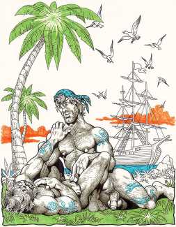 From 1993 to 2004 the publisher Winston Leyland produced 31 editions of the substantial gay magazine Meatmen, under his Gay Sunshine Press/Leyland Publications imprint. The final anthology, Meatmen Volume 26, was a special SM edition, which included the ten-frame sequence Bawdy Buccaneers, by ‘Mike’, Kuchar’s most extensive themed sequence.