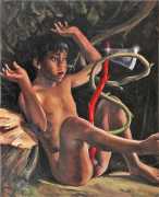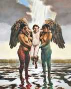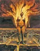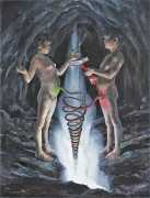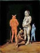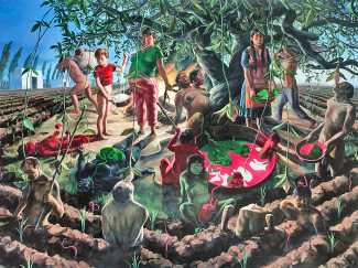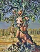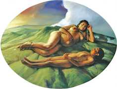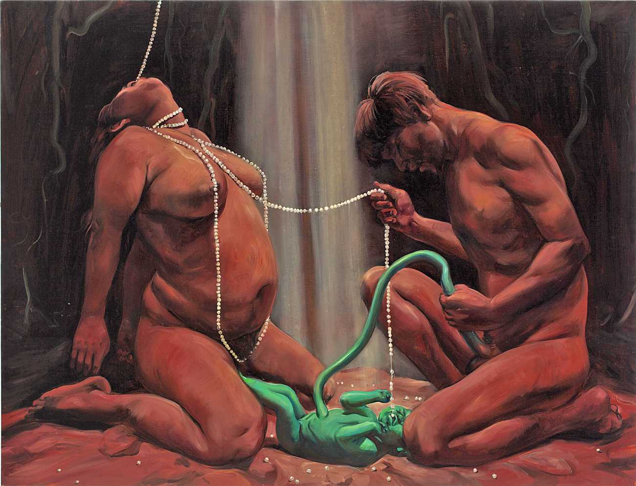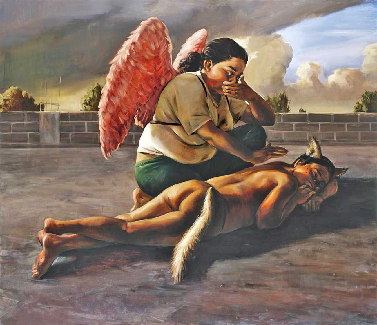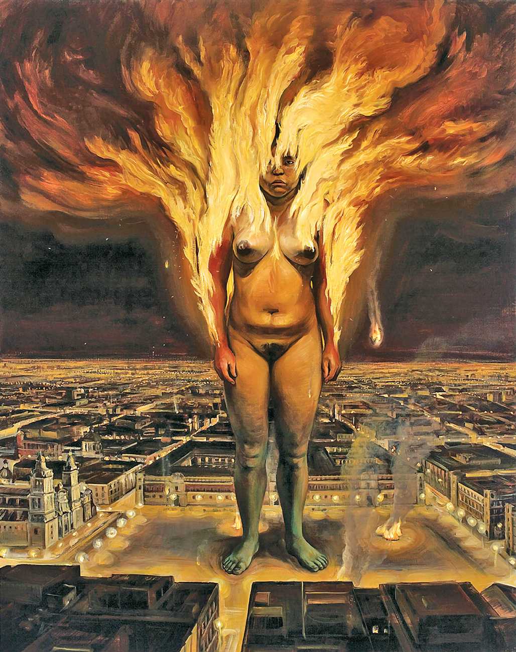 In a 2014 review of a Lezama exhibition, Ricardo Pohlenz wrote ‘Somewhere between allegory and eschatology there is a leap into the void that can only be averted by turning to myth. In the evolution of Lezama’s work, his allegories – the fictions that he represents on the canvas – have been reinvented again and again, and have at the end devoured themselves, like the ouroboros of the alchemists, in order to stop being a reflection of pictorial themes and instead become an eschatology. Lezama revisits pre-Hispanic myths in many of his paintings, and updates them to translate them into symbols that define contemporary reality.’