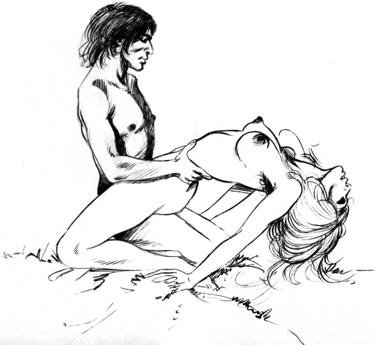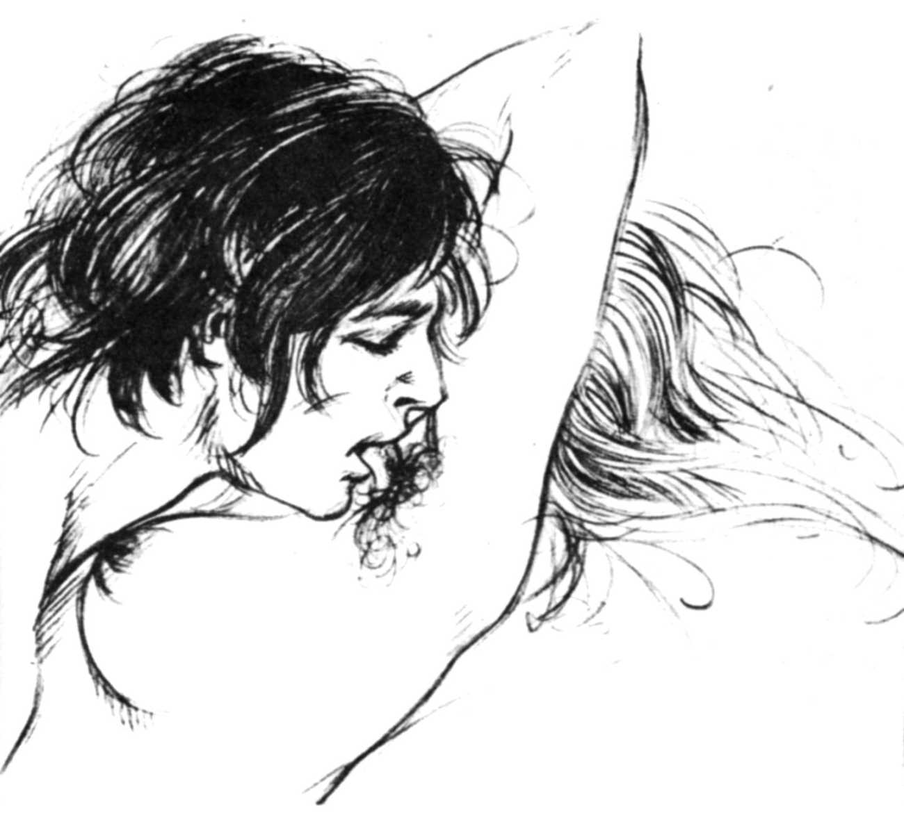 But it is the illustrations for which many would have bought Les joies, more than fifty of them created by ‘James’, who may quite probably be the artist, designer and magician James Hodges (1928–2019), who also illustrated magic and dance publications. Working under the semi-pseudonym is probably a blessing, since apart from their pioneering depiction of sexual activity, including full frontal genitals, they are not of the highest artistic quality. The print quality does them little justice, the double-page spreads disappearing into the binding, sometimes cutting off vital portions of anatomy.