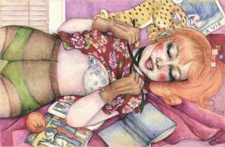 The Tiny Girls are gea*’s ongoing exploration of young women in often disturbing and explicit settings, juxtaposing sweetness and repulsion presented in a colourful, dreamlike pop surrealism. Like most real-world young women – and no doubt many men too – gea* delves deep into the nether regions of her personal, and our collective, psyche.