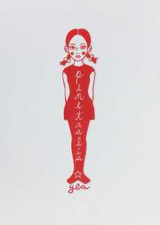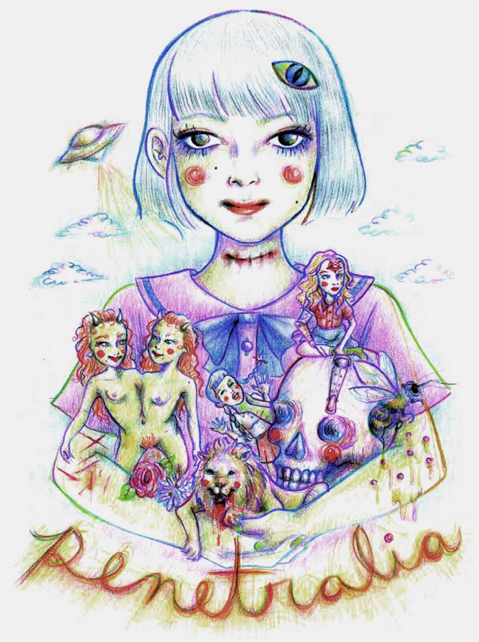 In his introduction to Penetralia, Australian musician James George (J.G.) Thirlwell writes, ‘If you think that by looking at gea*’s art that she must have a wicked psyche then you’d be right. Like her work she can be charming, seductive, but with an underscore of menace, an angel in devil’s boots. To write about her work, you may as well be talking about her – gorgeous and brittle, disturbed and sensuous. Incredibly, she is a self-taught artist and synthesises a lot of her influences into her own vision. Her many obsessions always peek through, and like all good obsessives and her meticulous attention to detail serve her well. I first saw her artworks in ink and was impressed by the confidence of her lines. That’s not easy to do. They were simple, small and whimsical, with the emphasis on sick, and were sometimes computer-coloured. Cuteness and erotica stood side by side with the morbid and grotesque, although she managed to imbue even the darkest subject matter with a coy allure.’