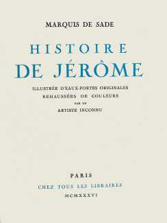 Histoire de Jérôme was privately published in Paris ‘Chez tous les Libraires’ (‘at all bookshops’, which was certainly not the case), in a limited numbered edition of 325 copies.