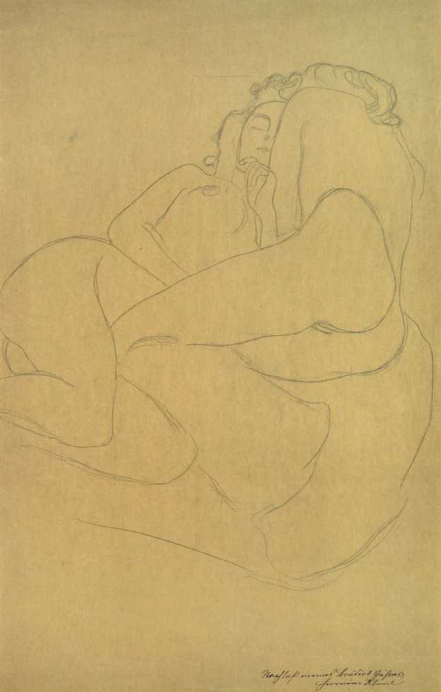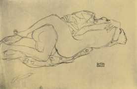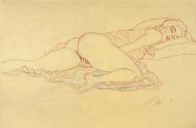 Klimt produced thousands of drawings and sketches during his productive years, every painting being preceded by dozens of preliminary sketches – to understand the importance of preliminary drawings to his masterworks it is well worth reading artist Chris Oatley’s blog posting, ‘The Gustav Klimt Drawings: Inside the Mind of a Master Draftsman’. As many as half of Klimt’s drawings were of naked women, mostly single but after around 1905 also in lesbian couplings and groups. The drawings shown here represent a tiny proportion of his output, and have been selected to show both the variety of poses that intrigued him and the skill with which these quick drawings were executed.