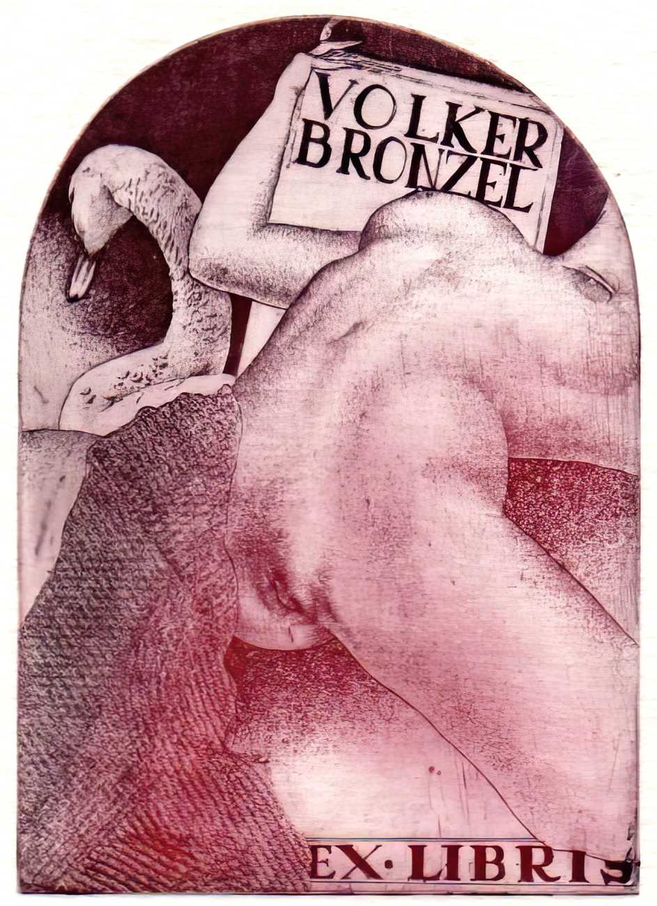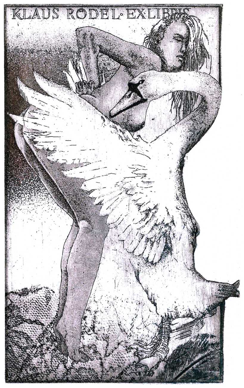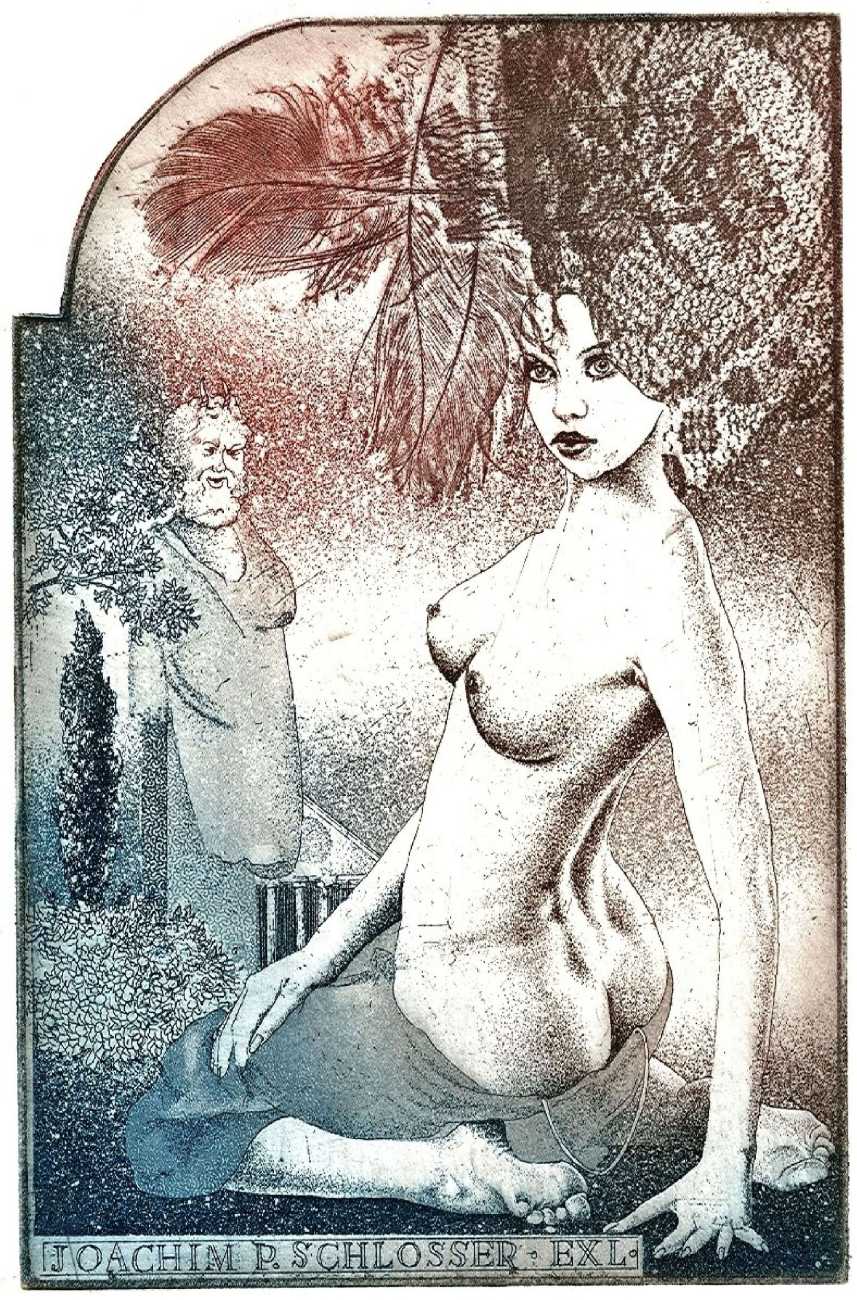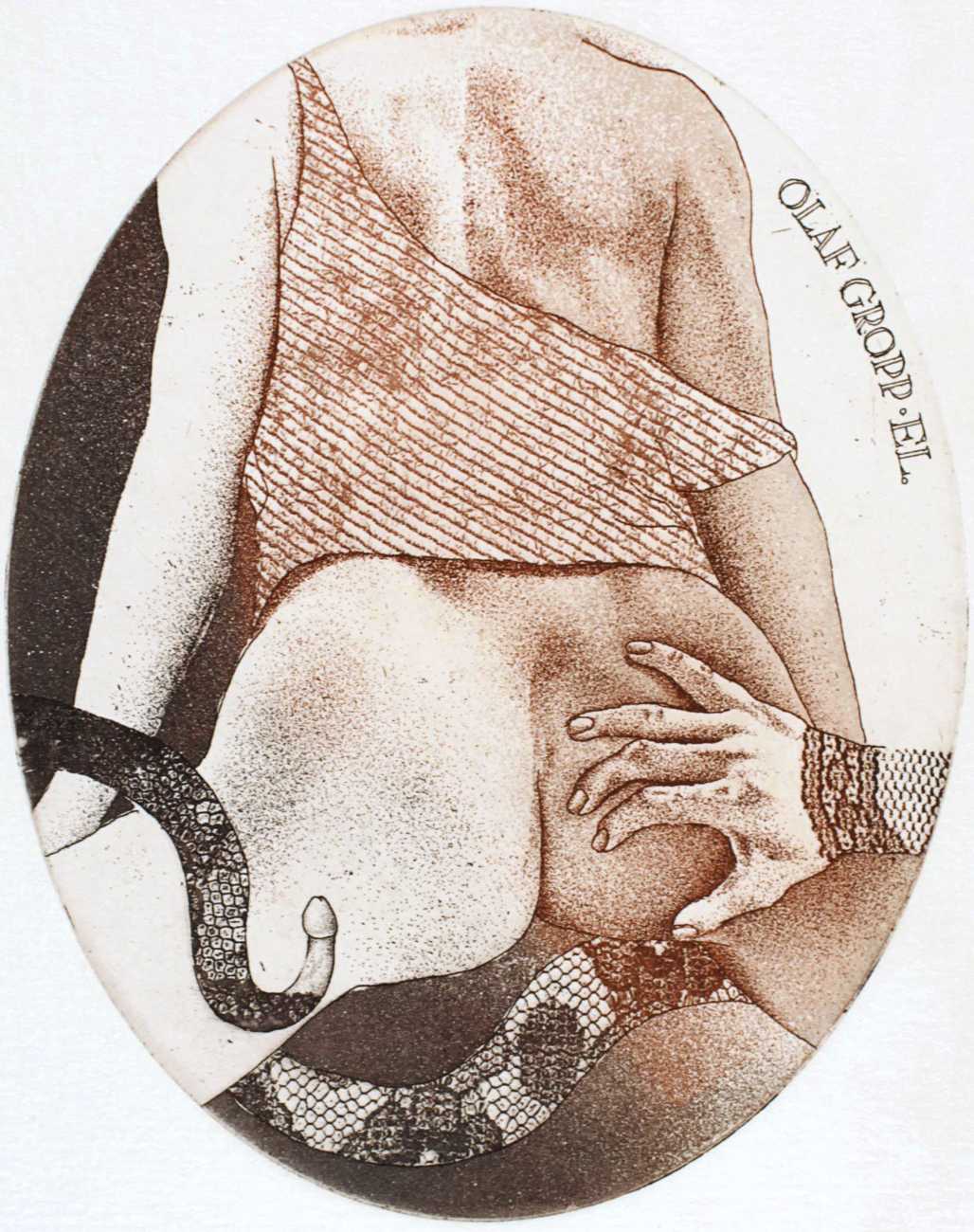 Olaf Gropp is one of a growing band of late twentieth century artists who rediscovered and experimented with the small, detailed genre of engraving which comes under the heading of ex libris or bookplates, though in most cases these small works were never commissioned nor designed to reside in actual books.